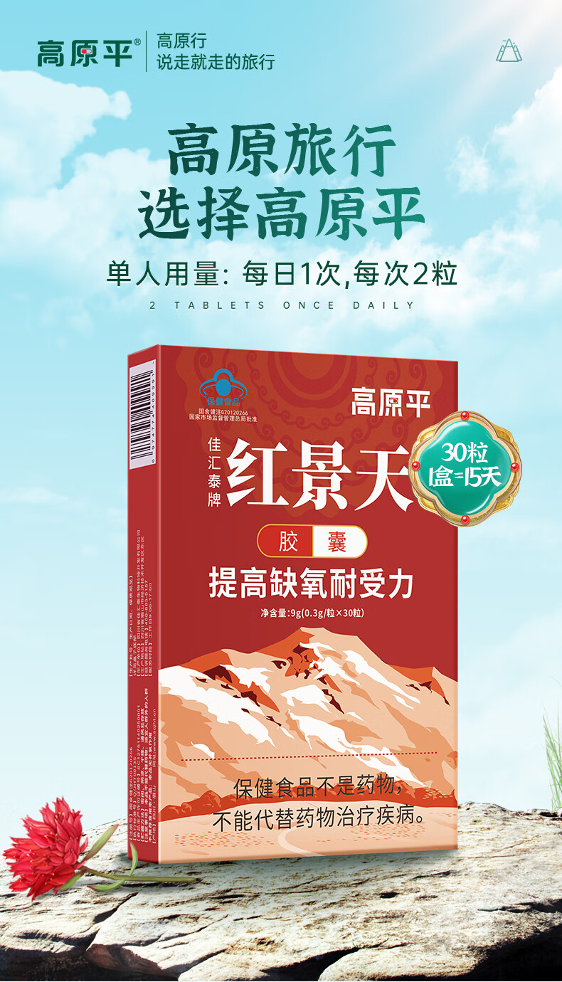 高原平红景天胶囊30粒抵抗西藏旅游高原反应药房同款可搭葡萄糖口服液