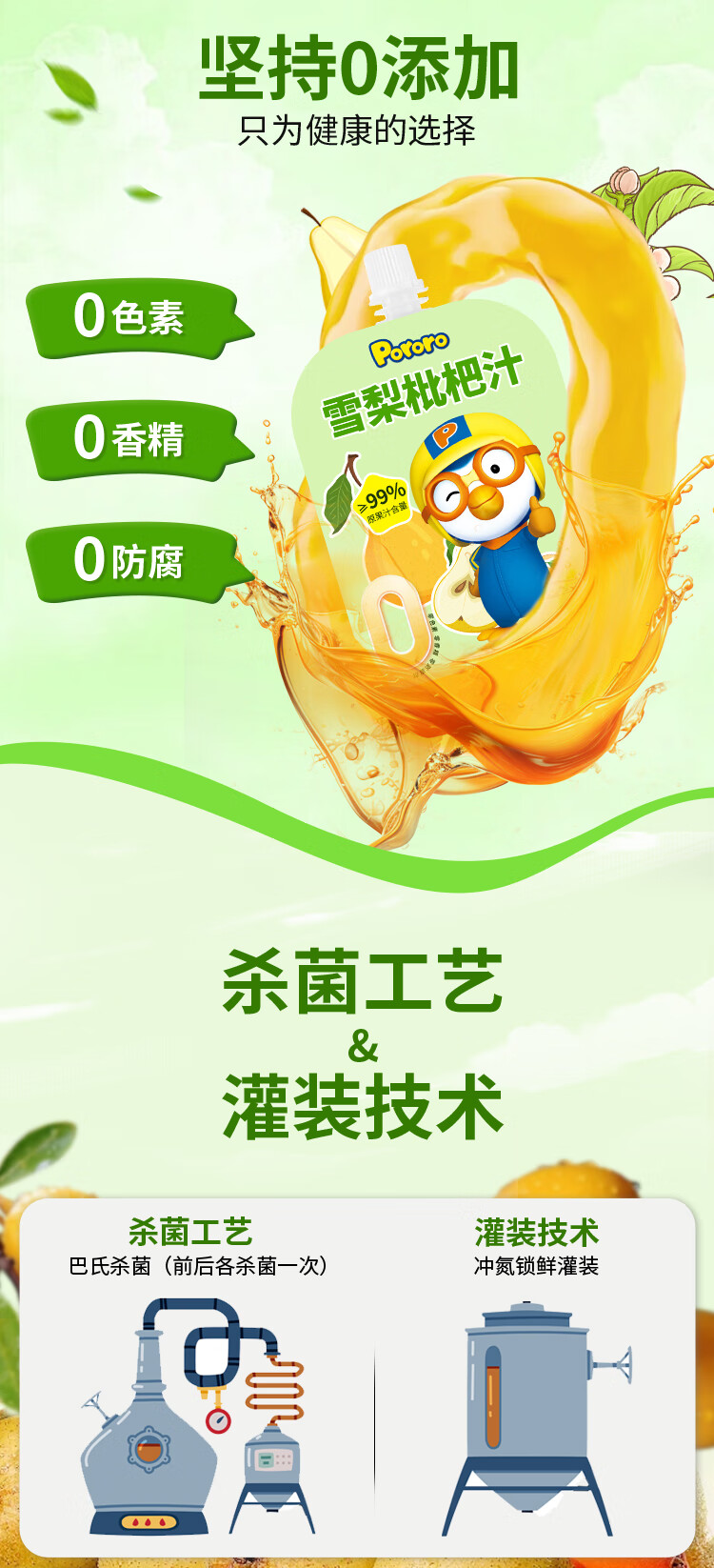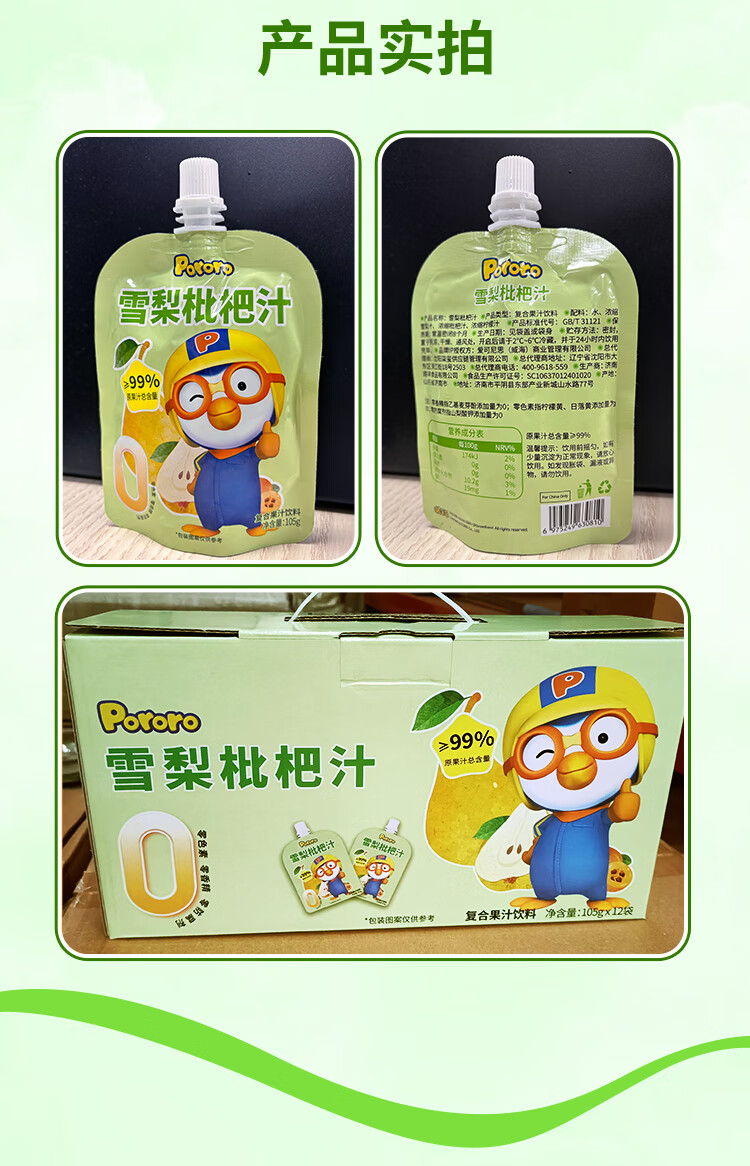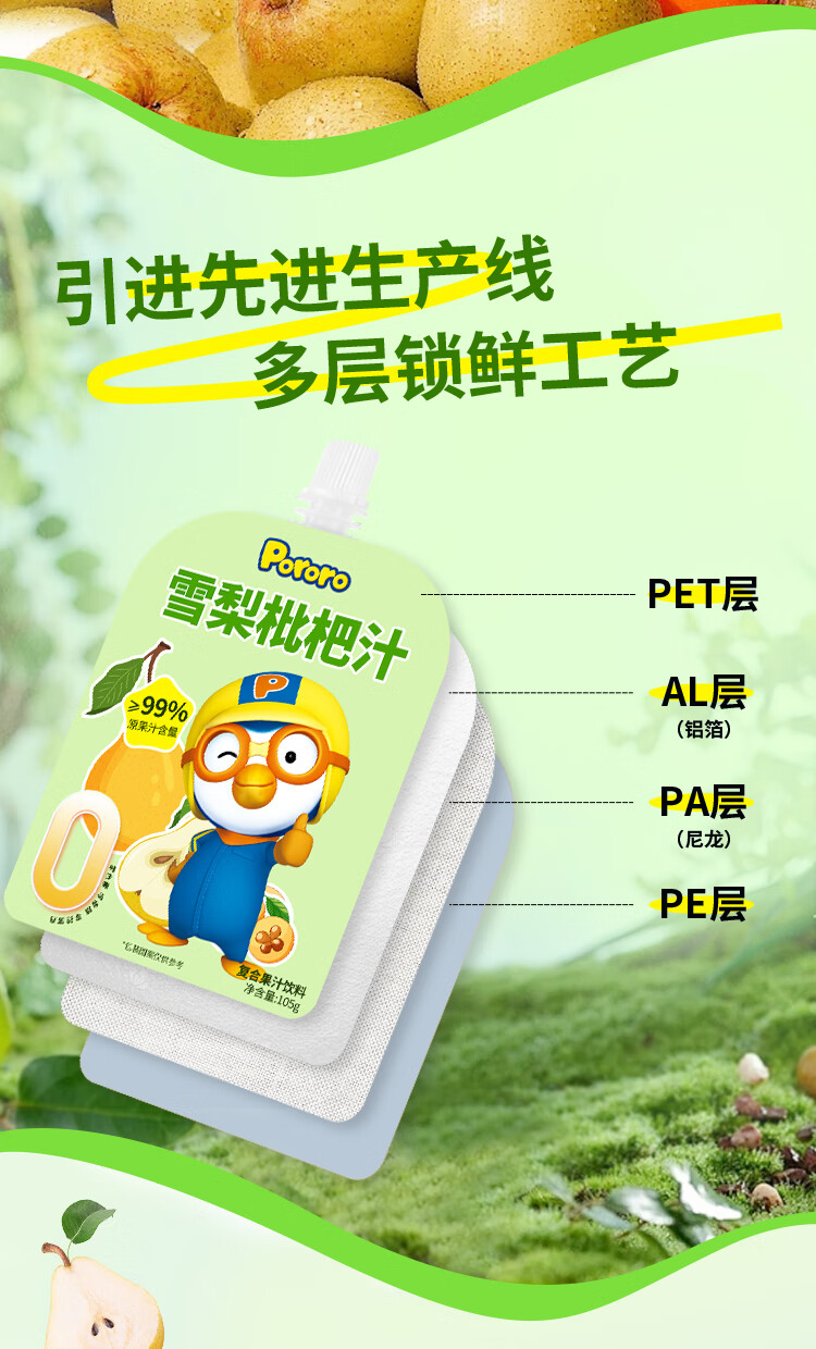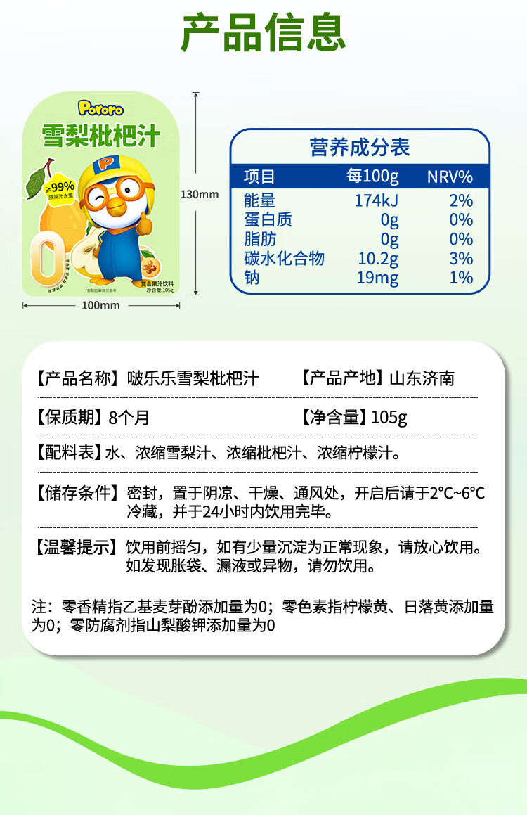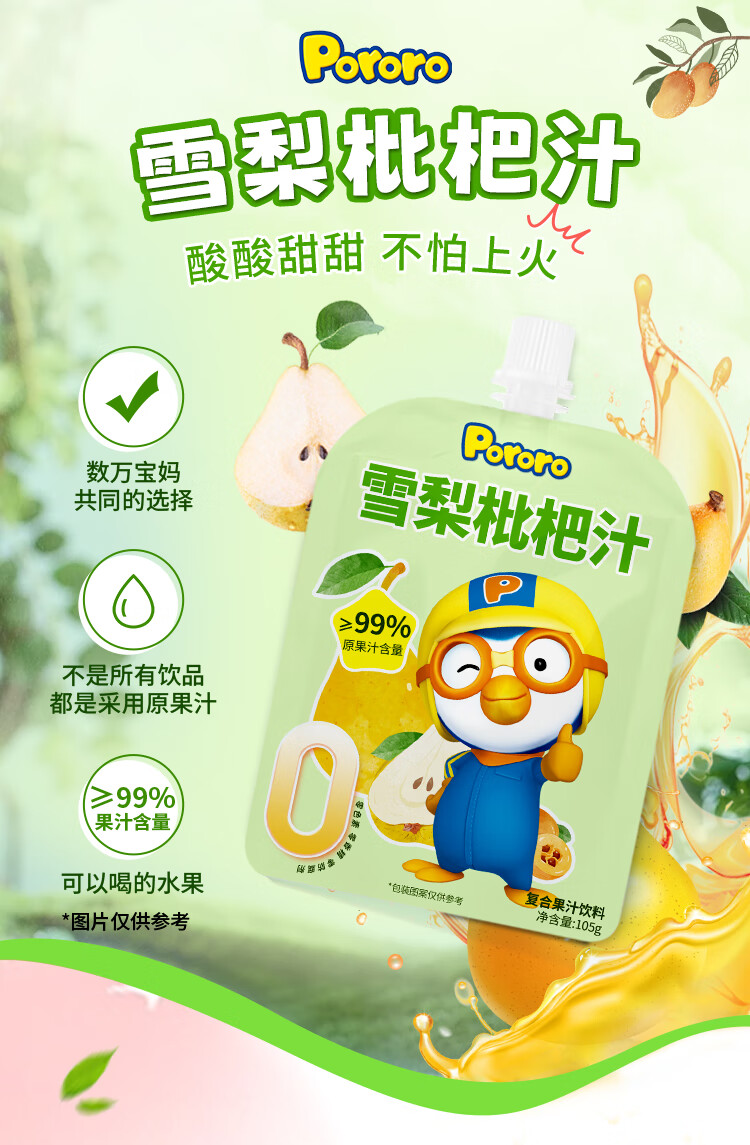 啵乐乐(Pororo)雪梨枇杷汁原果汁含量大于99%儿童饮料便携单袋装105ml*1