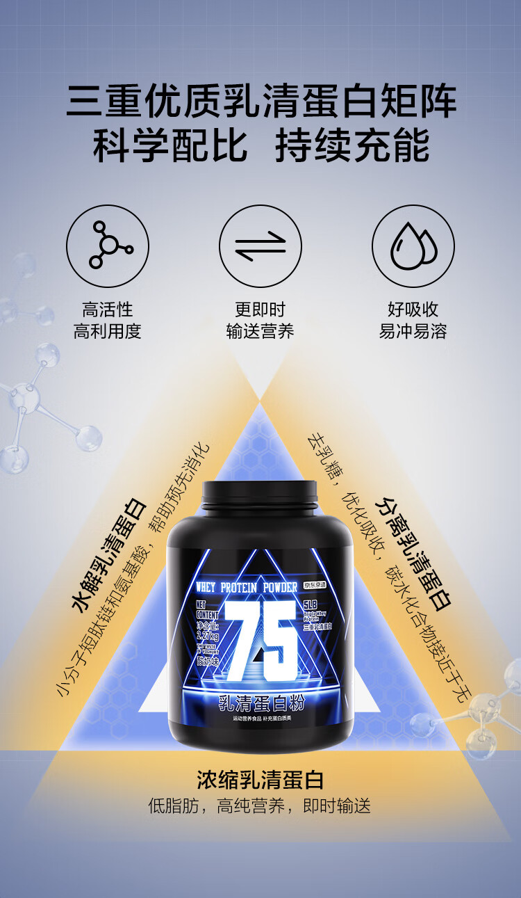 京东京造乳清蛋白粉增肌酸奶味5磅2.27kg 分离乳清三重蛋白75%健身训练