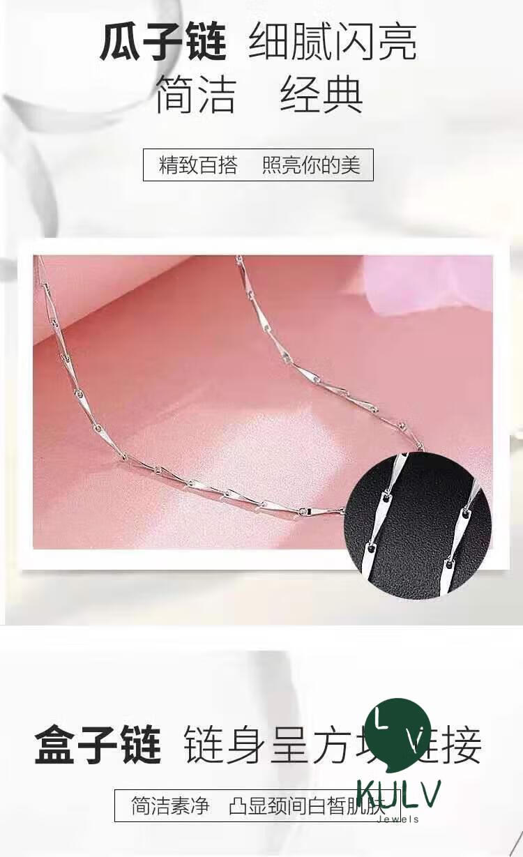 白金素链pt950项链女满天星颈链锁骨链盒子链搭配 元宝链45cm
