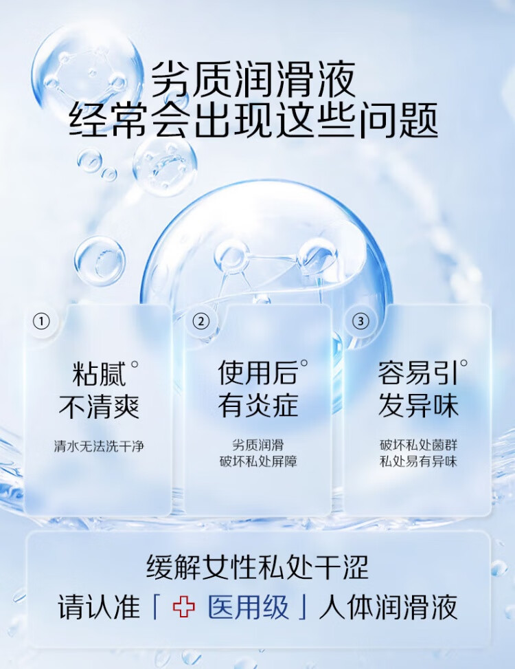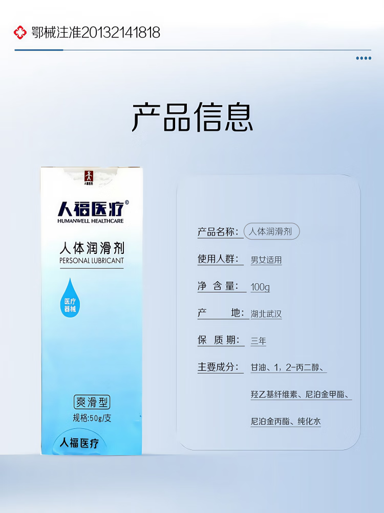 艾妮润人福医疗艾妮润人体润滑剂新款医用级爽滑可舔免洗无色透明无异味 人体润滑剂3盒 50g/支/盒