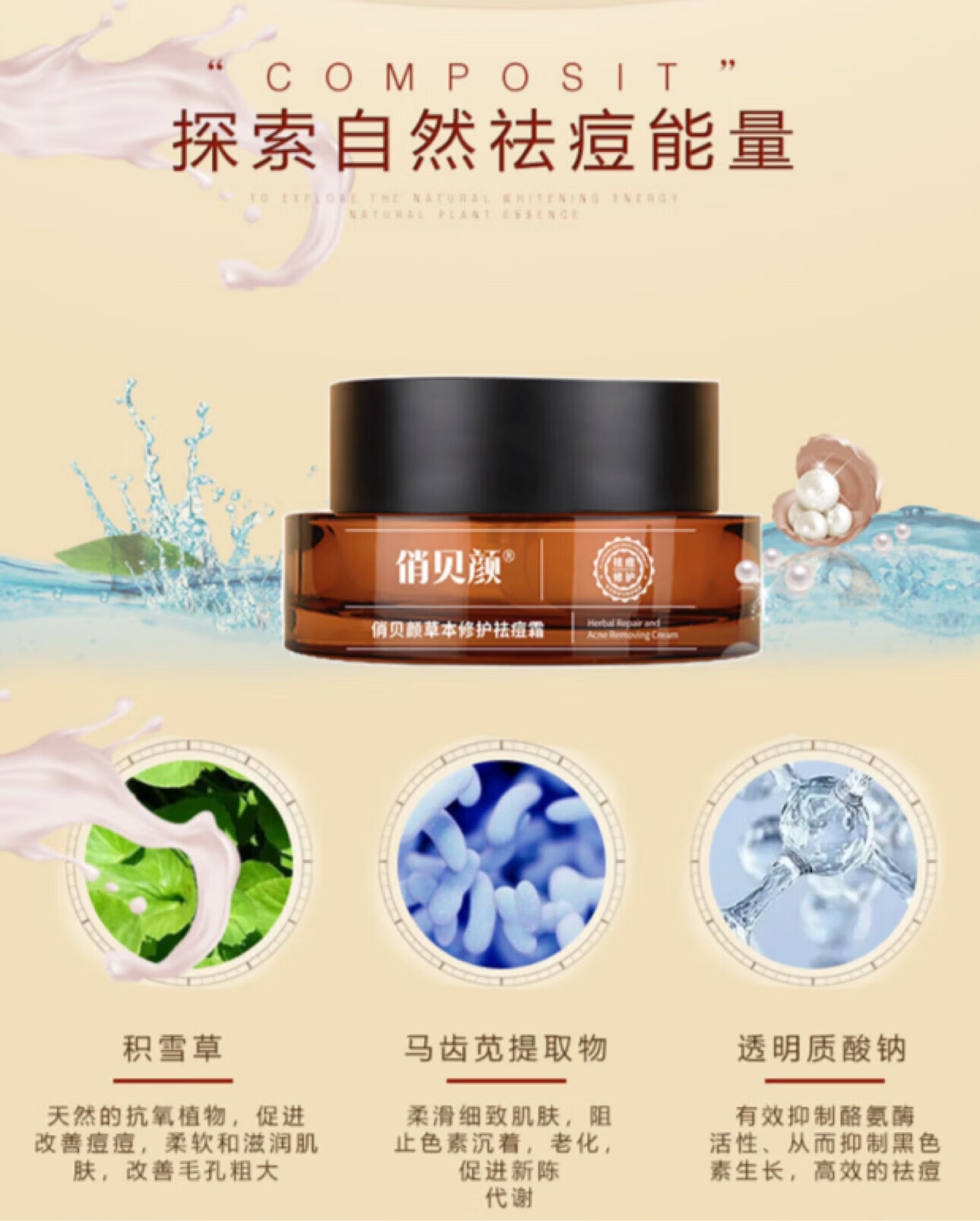 俏贝颜草本祛痘霜草本祛痘膏青春痘护肤淡化痘印痘坑修护面部 祛痘膏*1