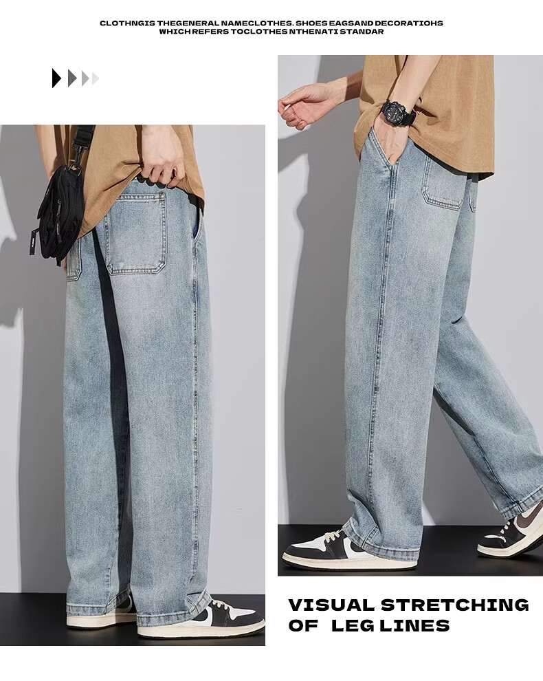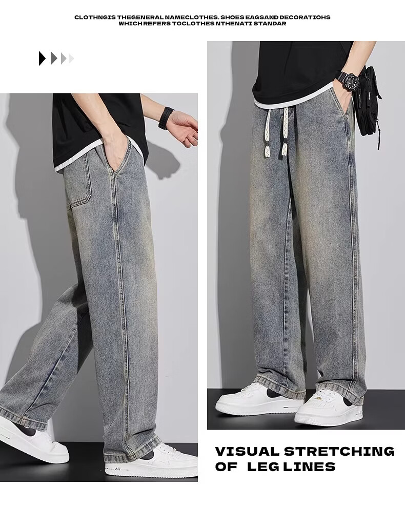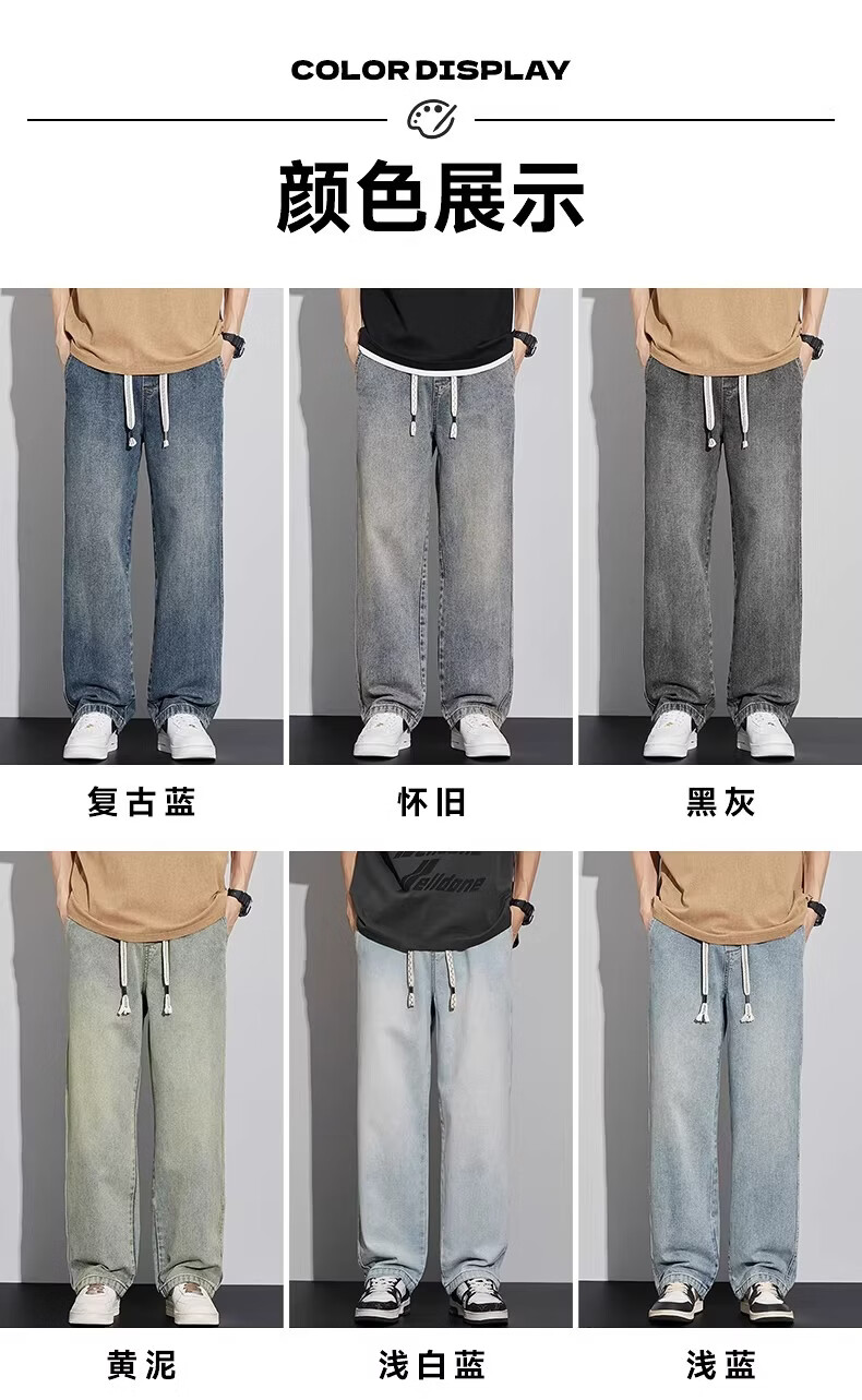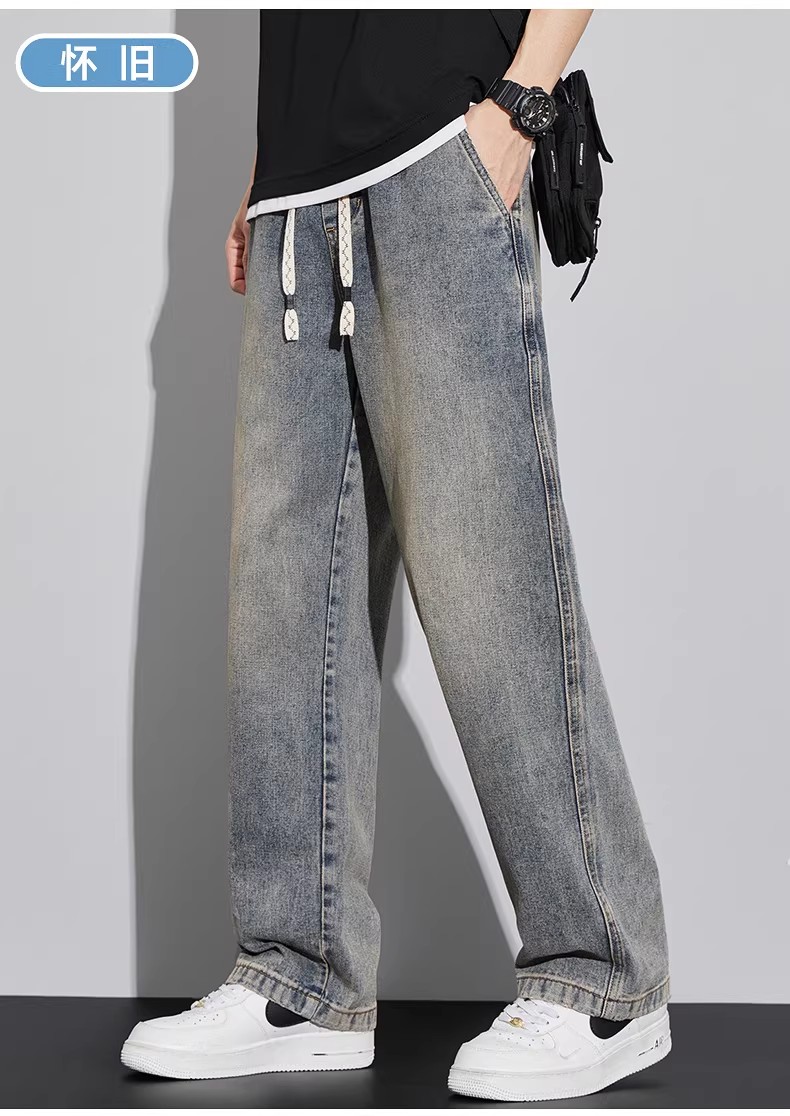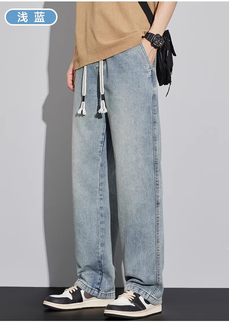 真维斯(Jeanswest)2026新款春季阔腿男士牛仔裤松紧腰直筒宽松潮流垂感休闲长裤子男 复古蓝 M