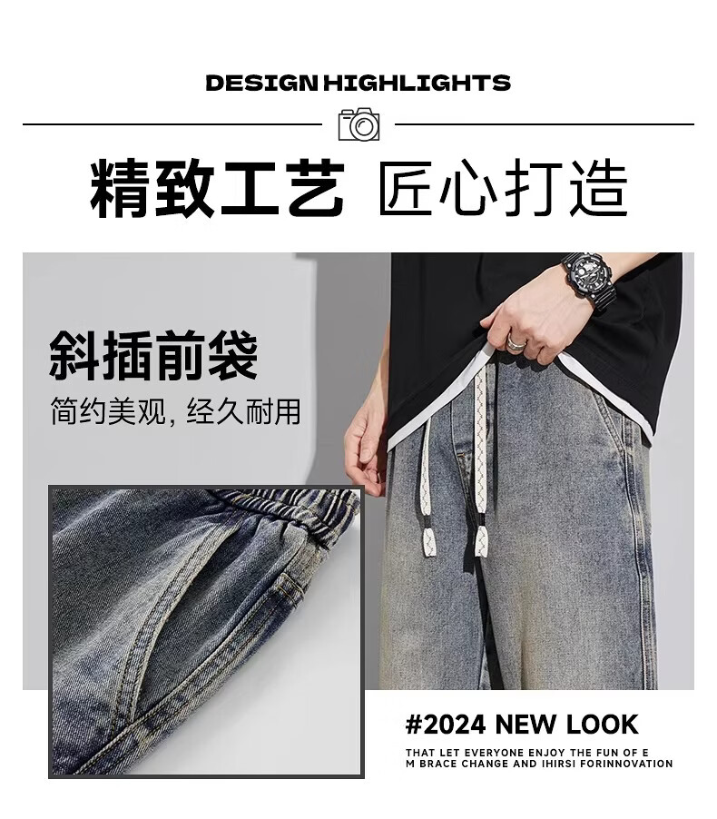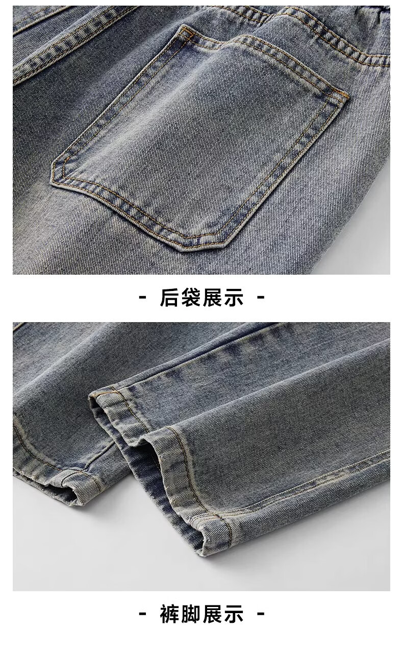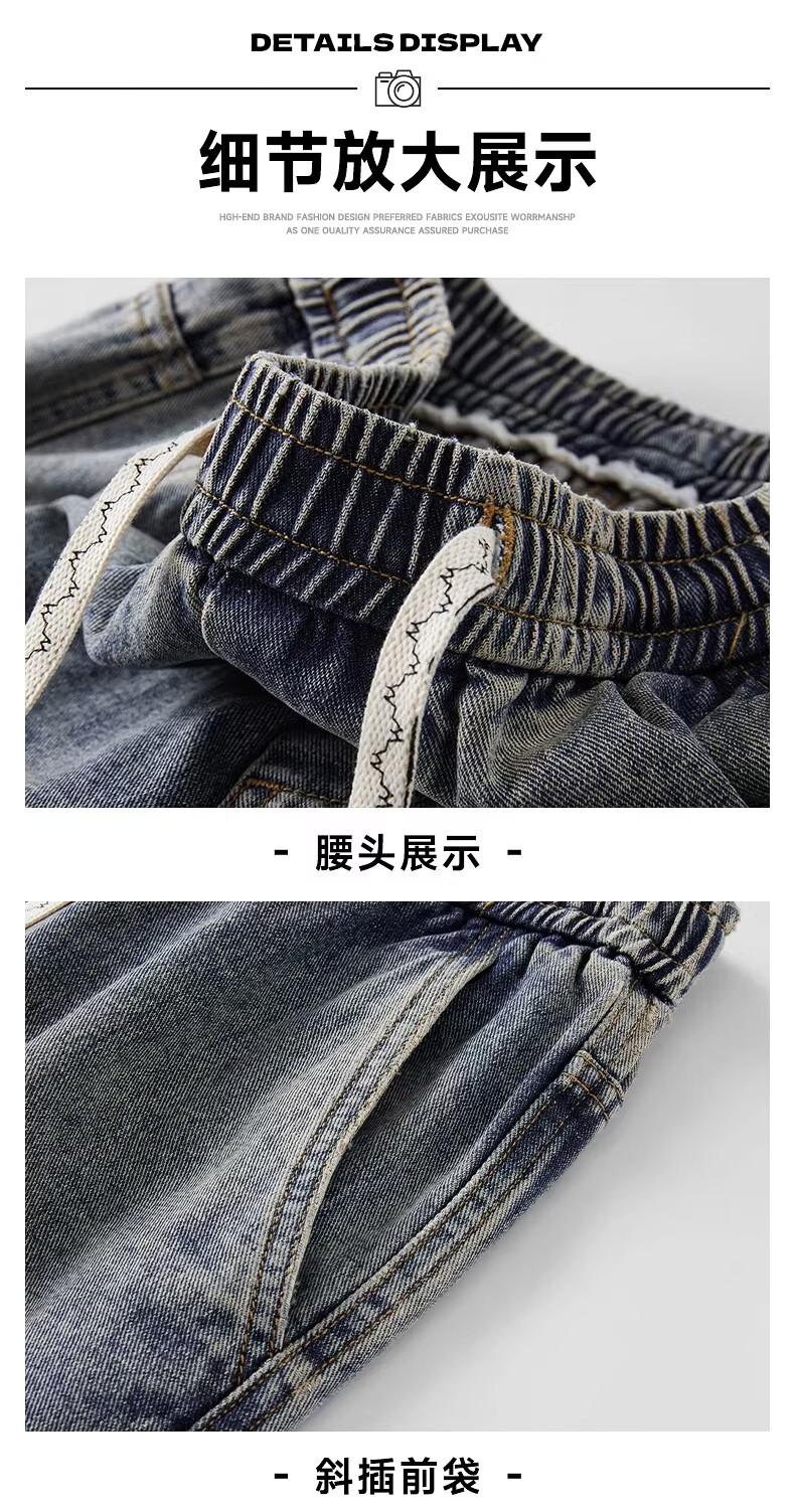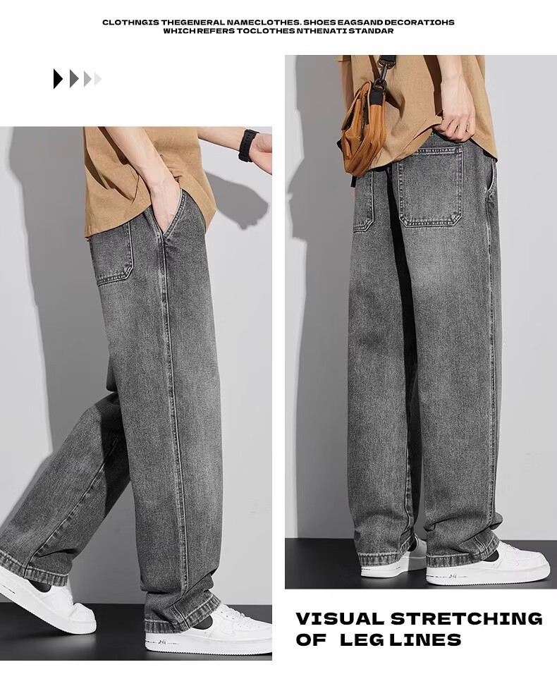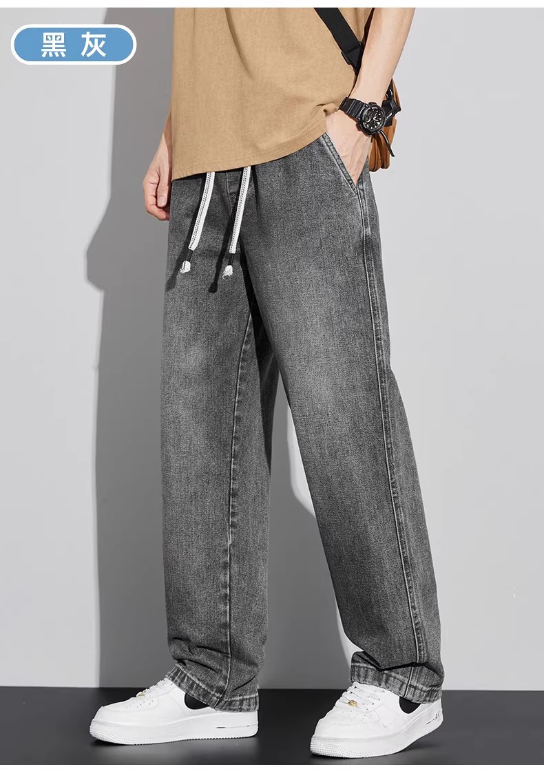 真维斯(Jeanswest)2026新款春季阔腿男士牛仔裤松紧腰直筒宽松潮流垂感休闲长裤子男 复古蓝 M