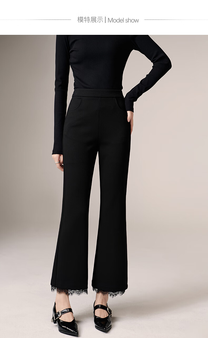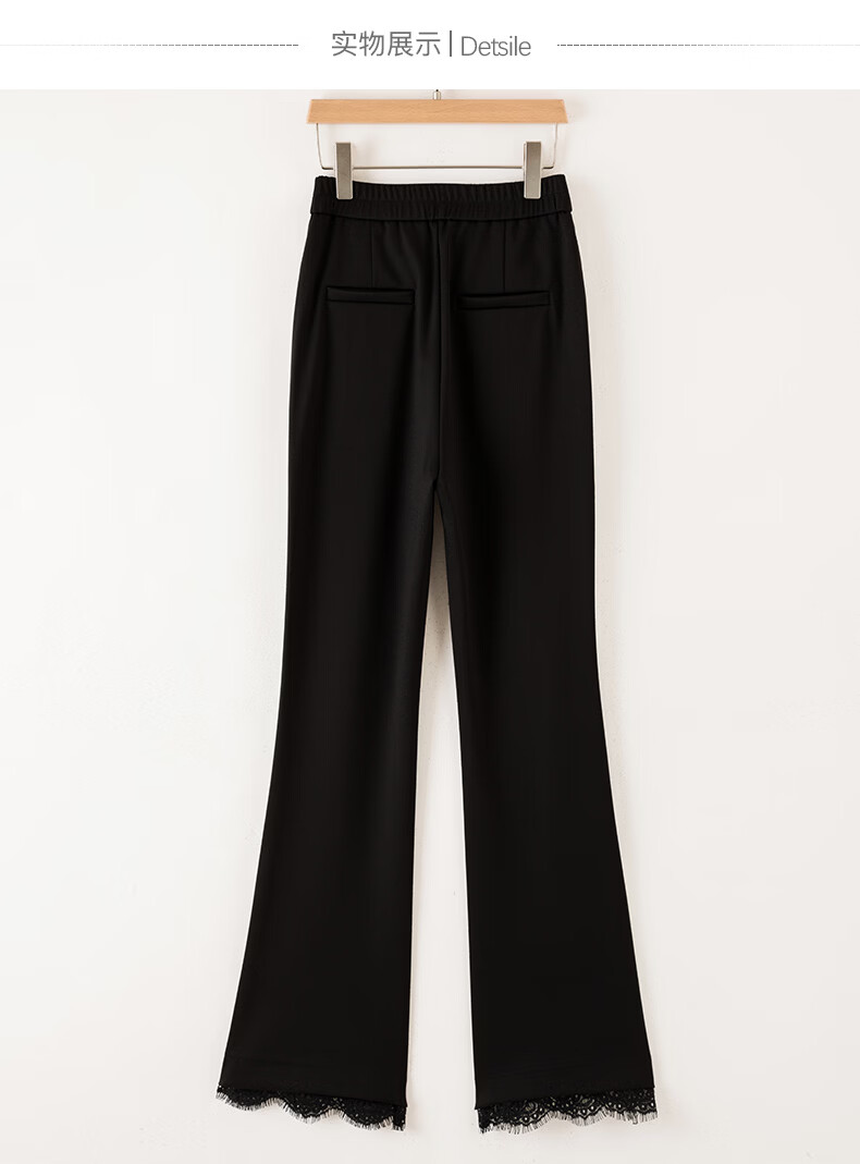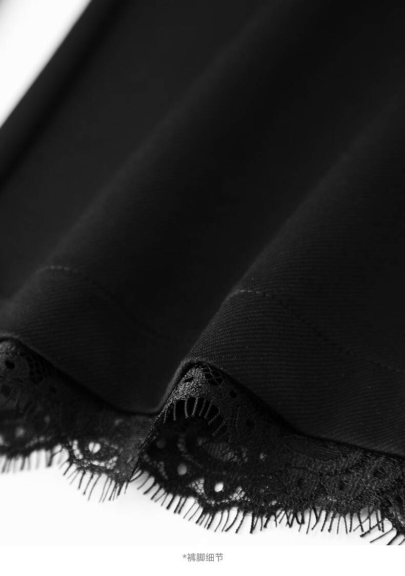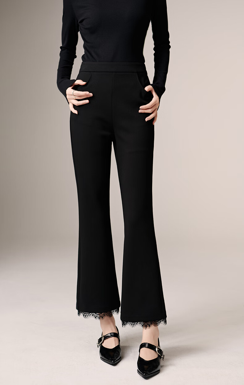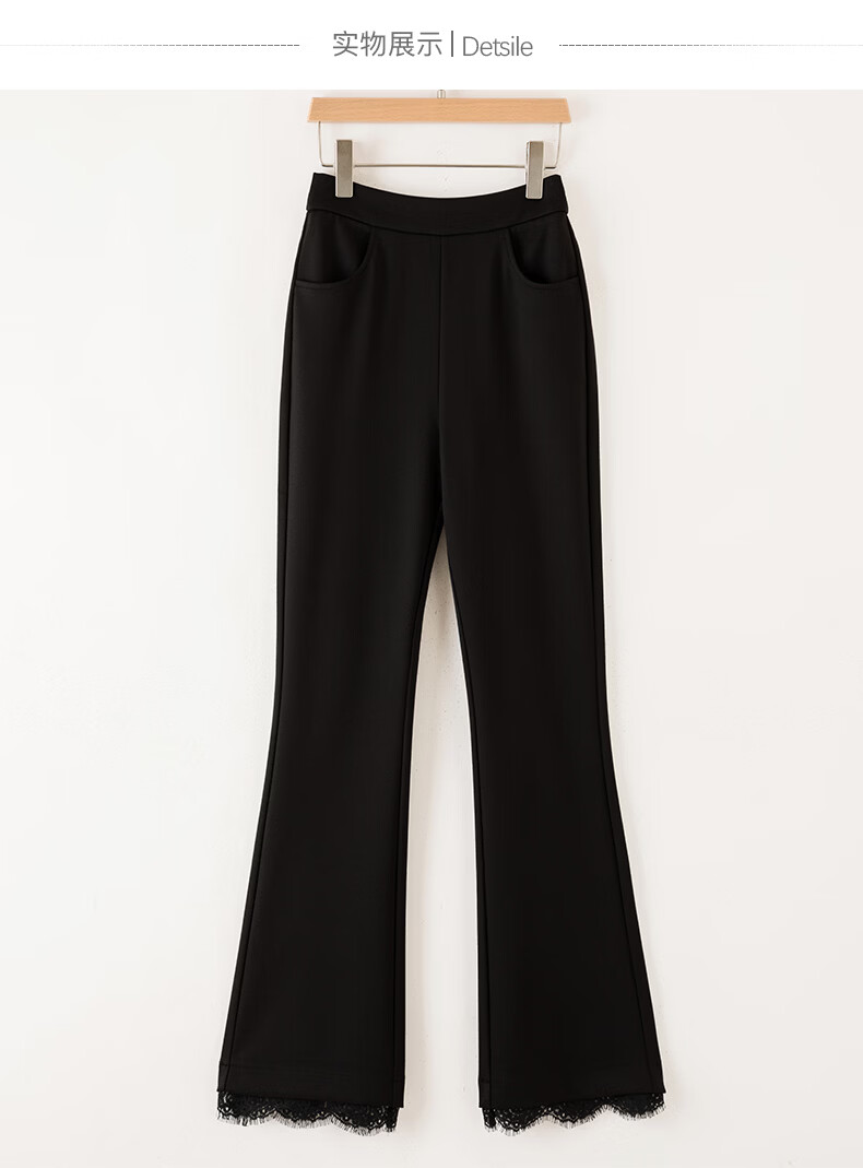 晚白【修饰腿型超显瘦】气质微喇裤2026春款高腰蕾丝边裤子时尚休闲裤 黑色 27
