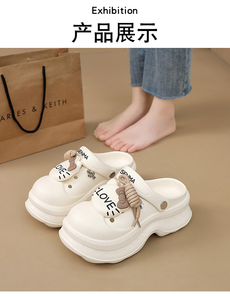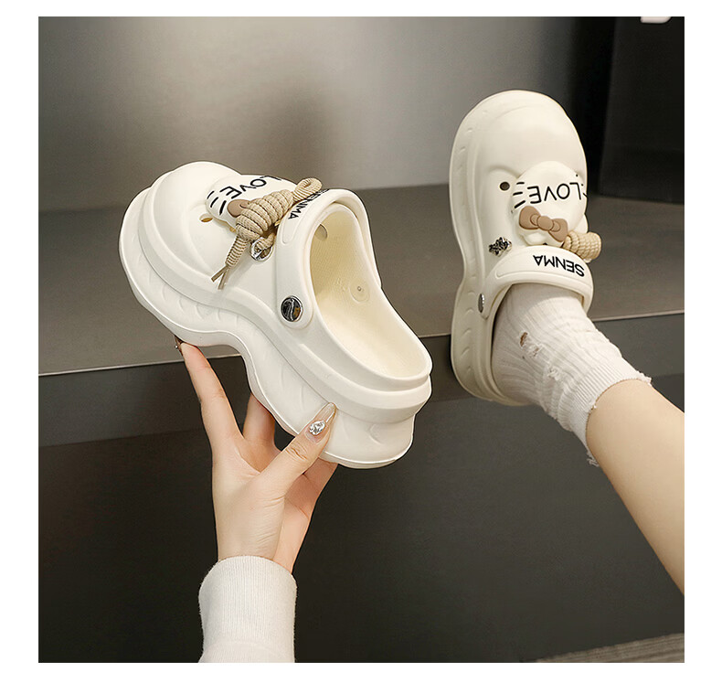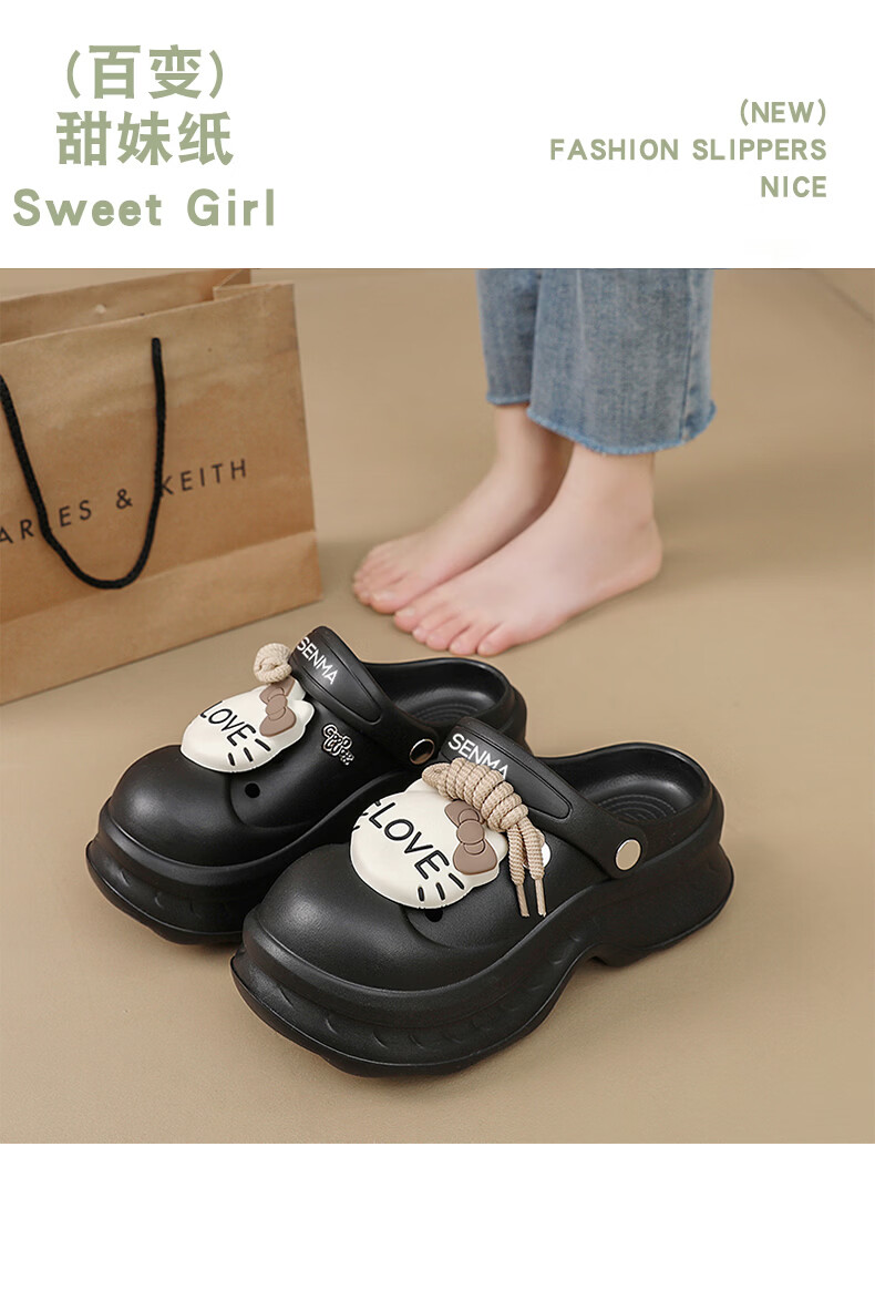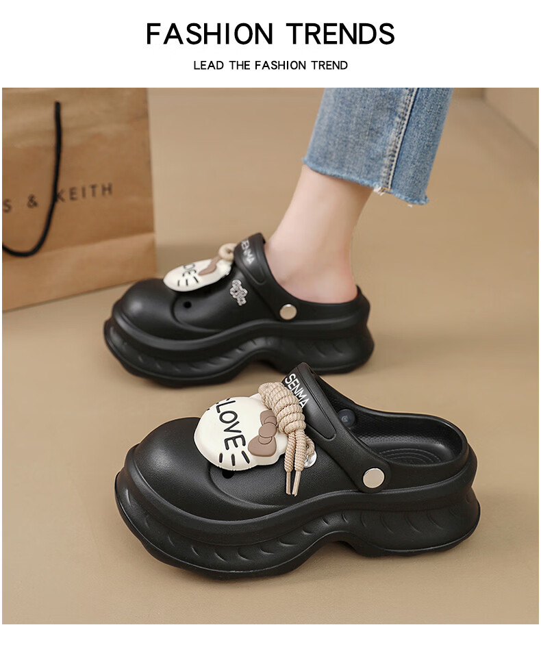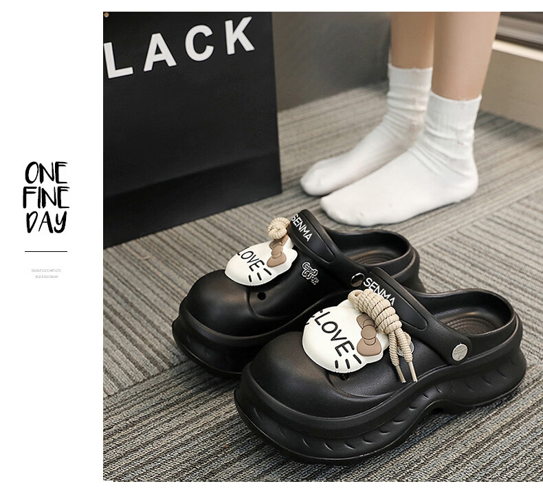 森馬洞洞鞋女2026新款夏季超火外穿厚底增高凉拖户外旅游防滑沙滩凉鞋 黑色【基础款】 36-37 【现货秒发】