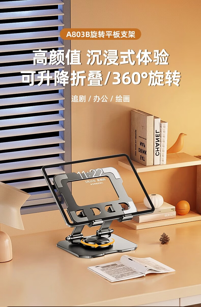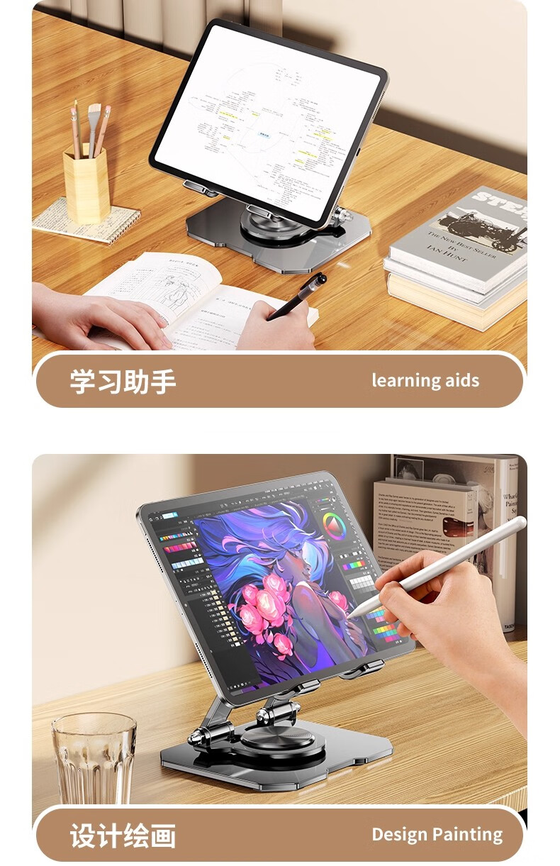 平板支架桌面懒人平板电脑支架可升降调节折叠旋转支撑架子 耀石黑