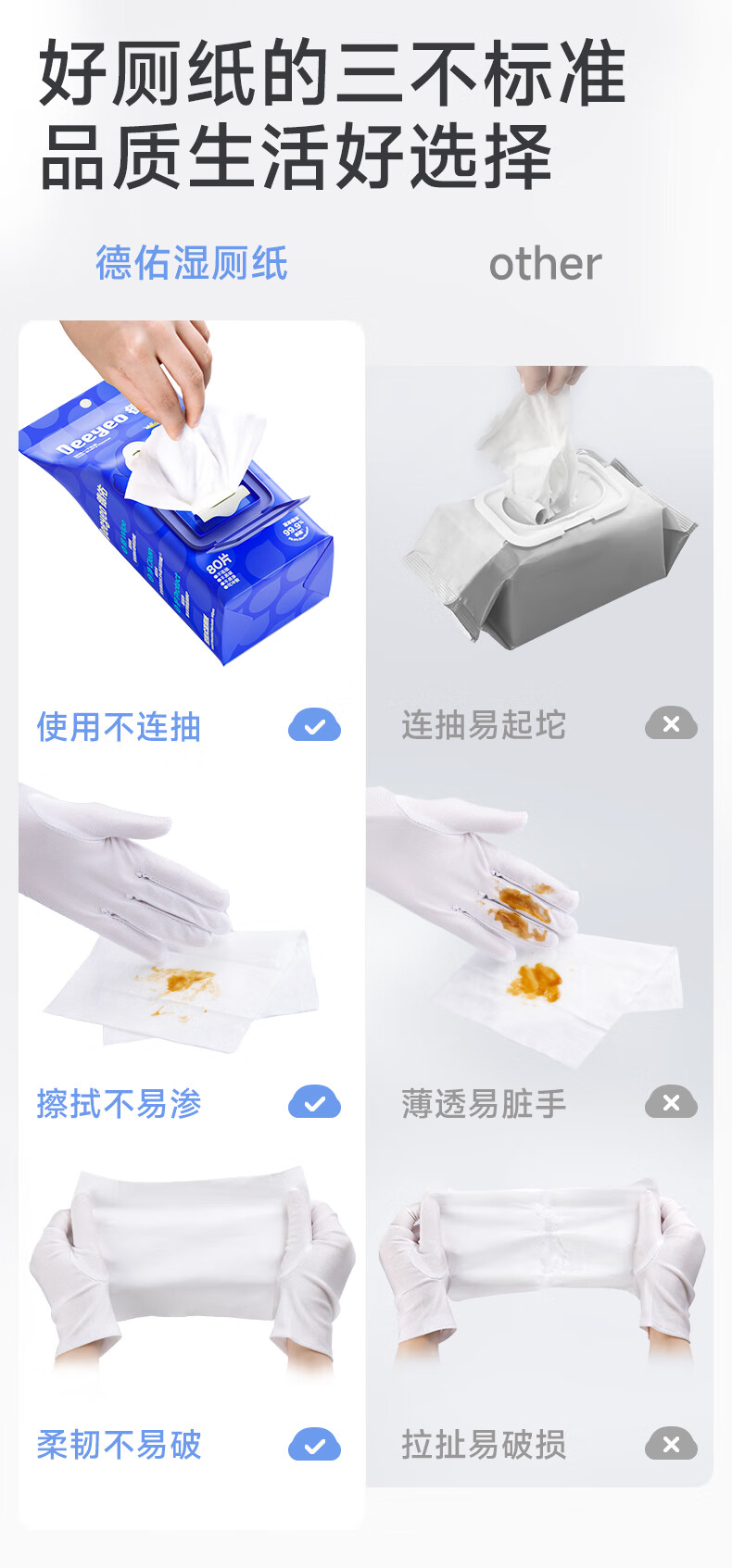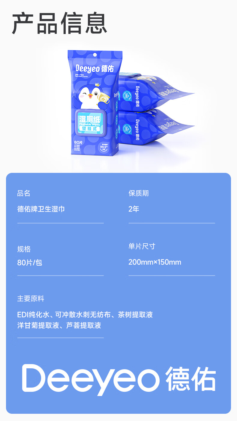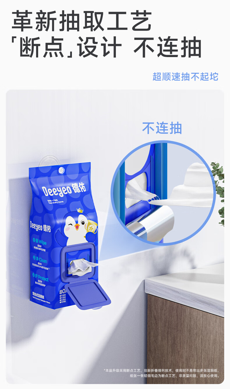 德佑湿厕纸壁挂式80抽*6包厕所悬挂湿纸巾擦屁股厕纸挂墙易抽取省空间
