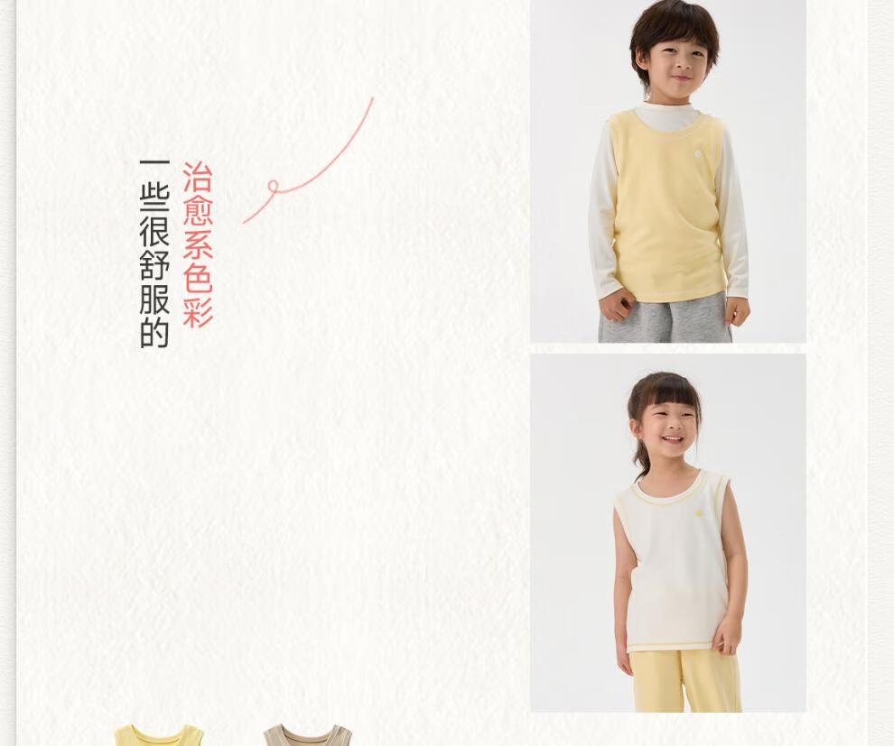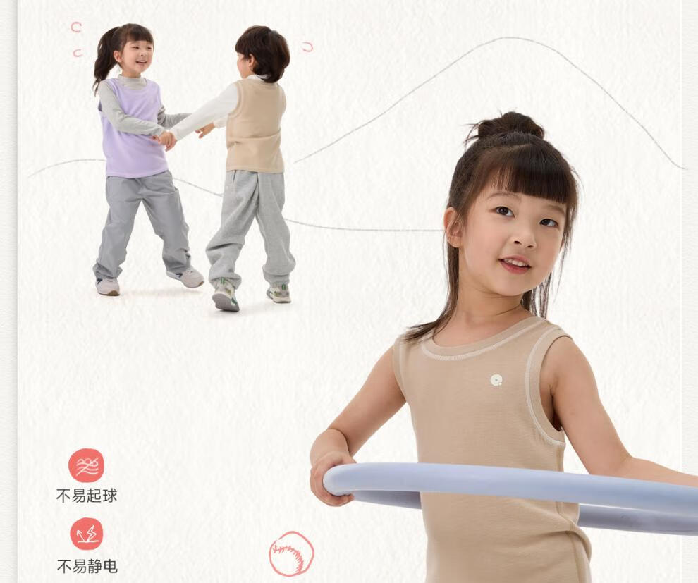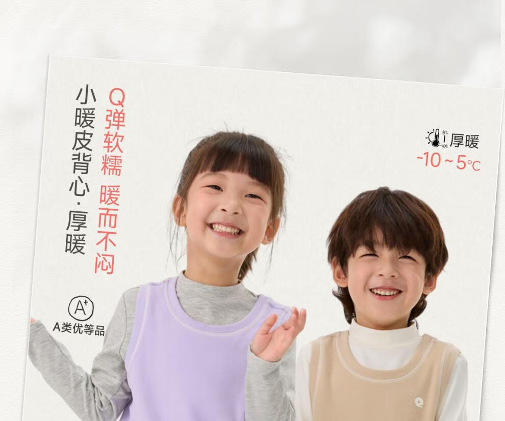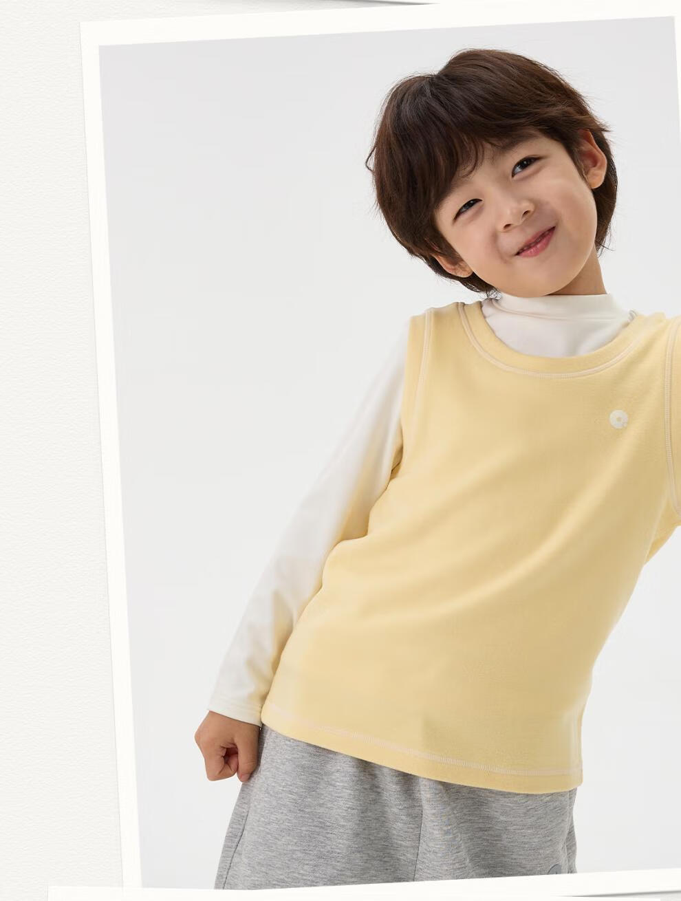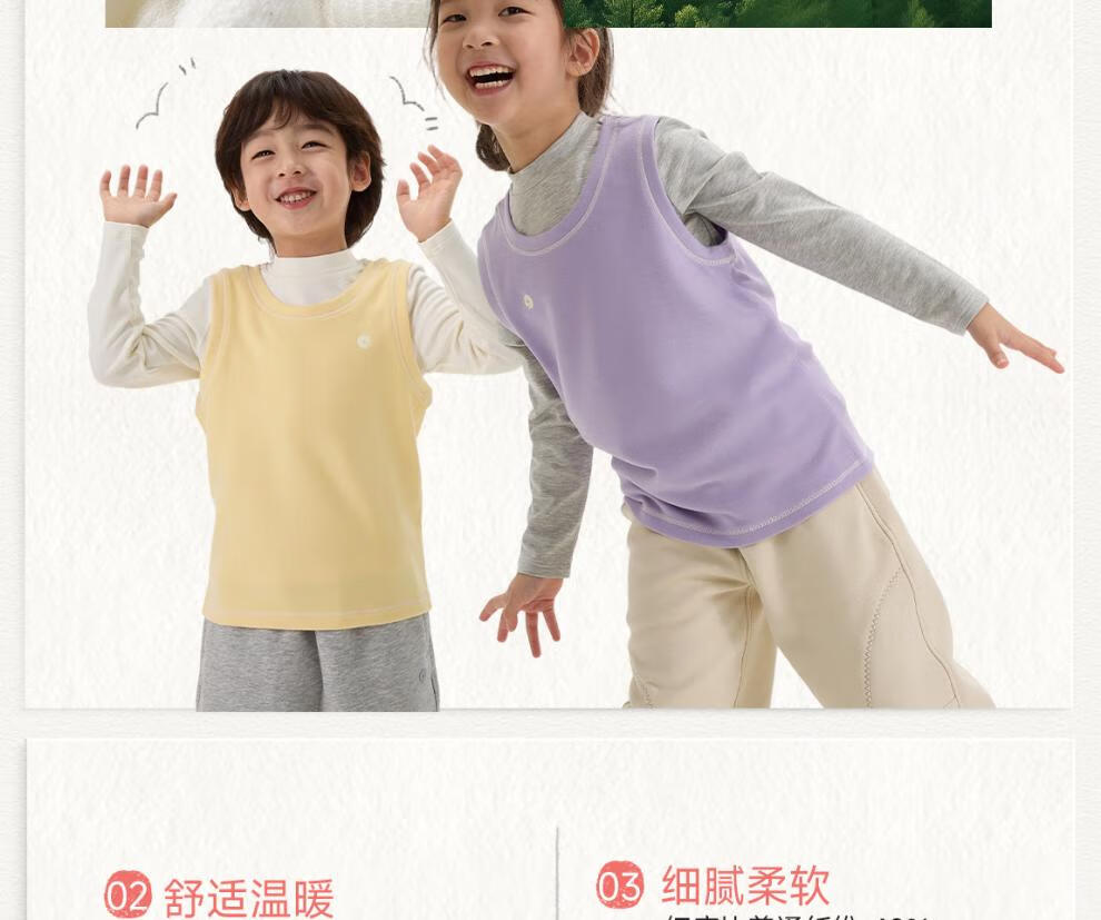 Q21直播【厚暖】Q21小暖皮儿童背心男女外穿A类吸湿发热保暖圆领上衣 杏茶棕 120 cm