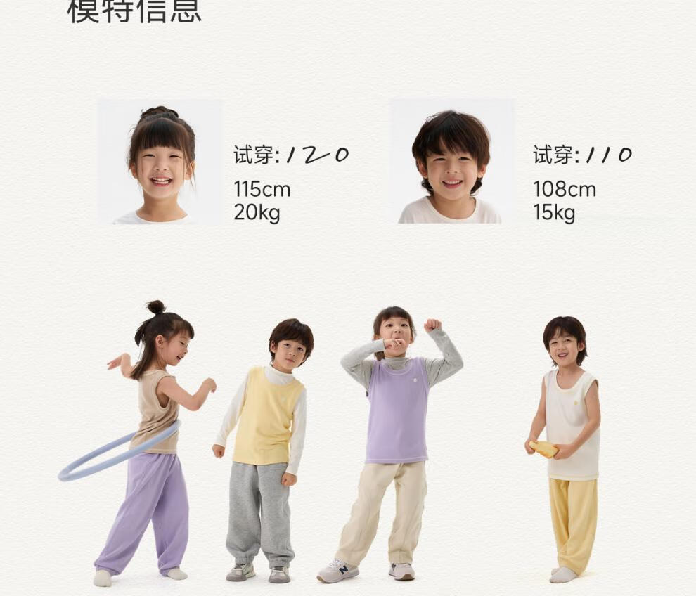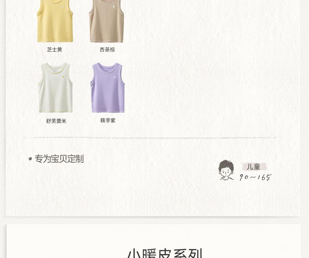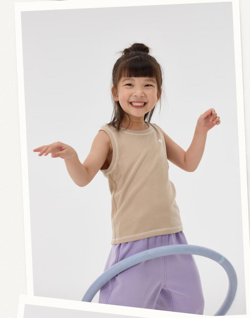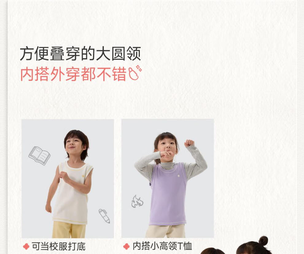 Q21直播【厚暖】Q21小暖皮儿童背心男女外穿A类吸湿发热保暖圆领上衣 杏茶棕 120 cm