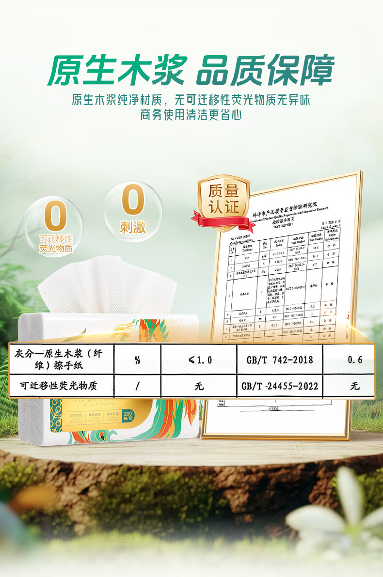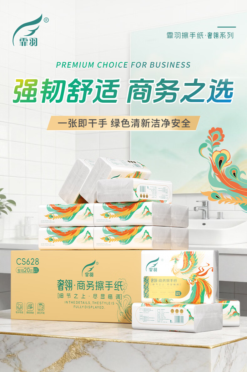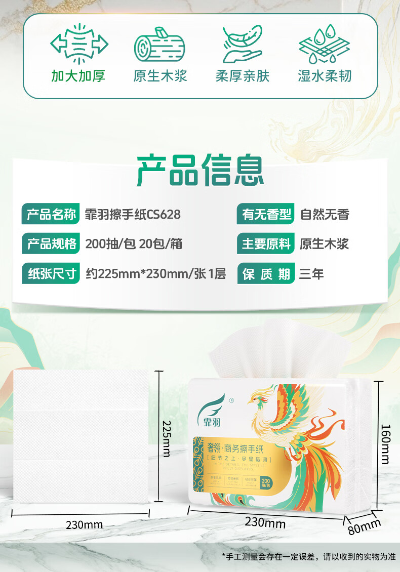 霏羽奢翎商务加厚大尺寸擦手纸1层200抽*20包整箱 商用办公商场纸巾