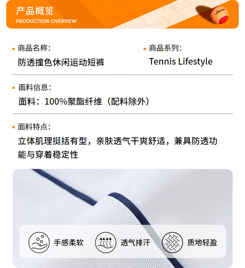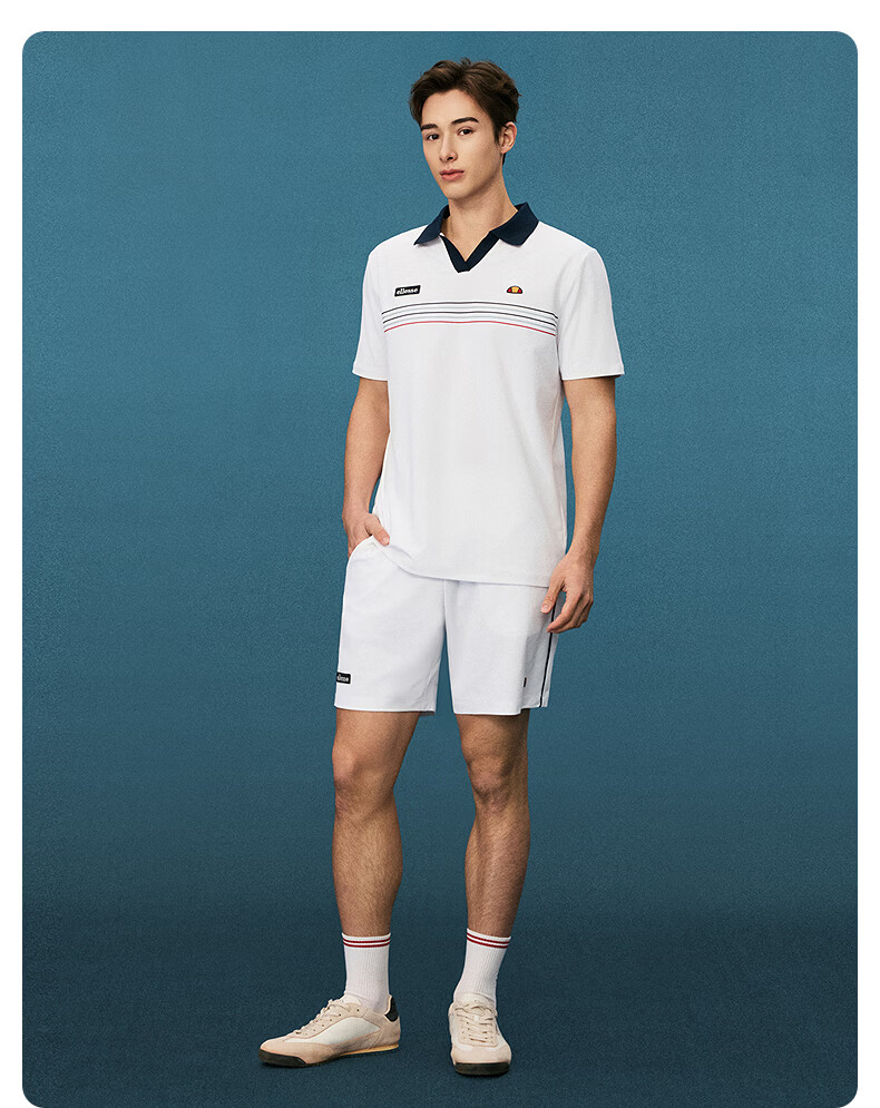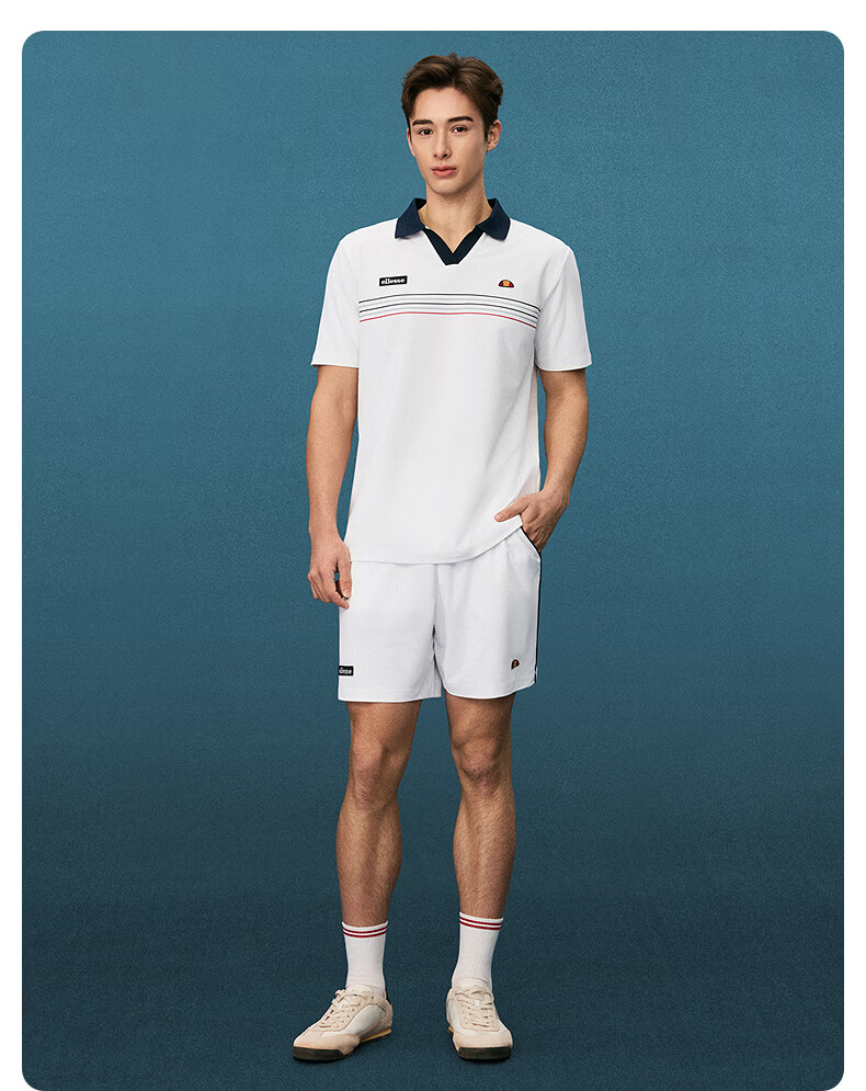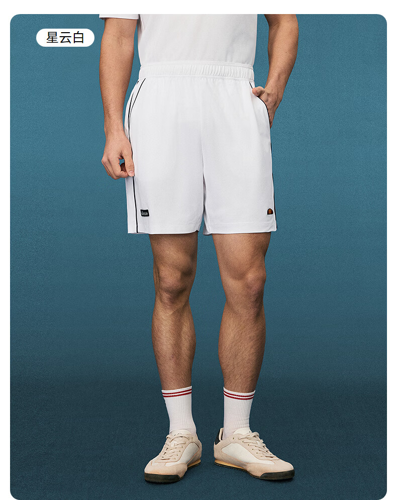 ellesse小贝壳26春夏新品网球裤撞色条纹防透休闲运动短裤男 星云白 M