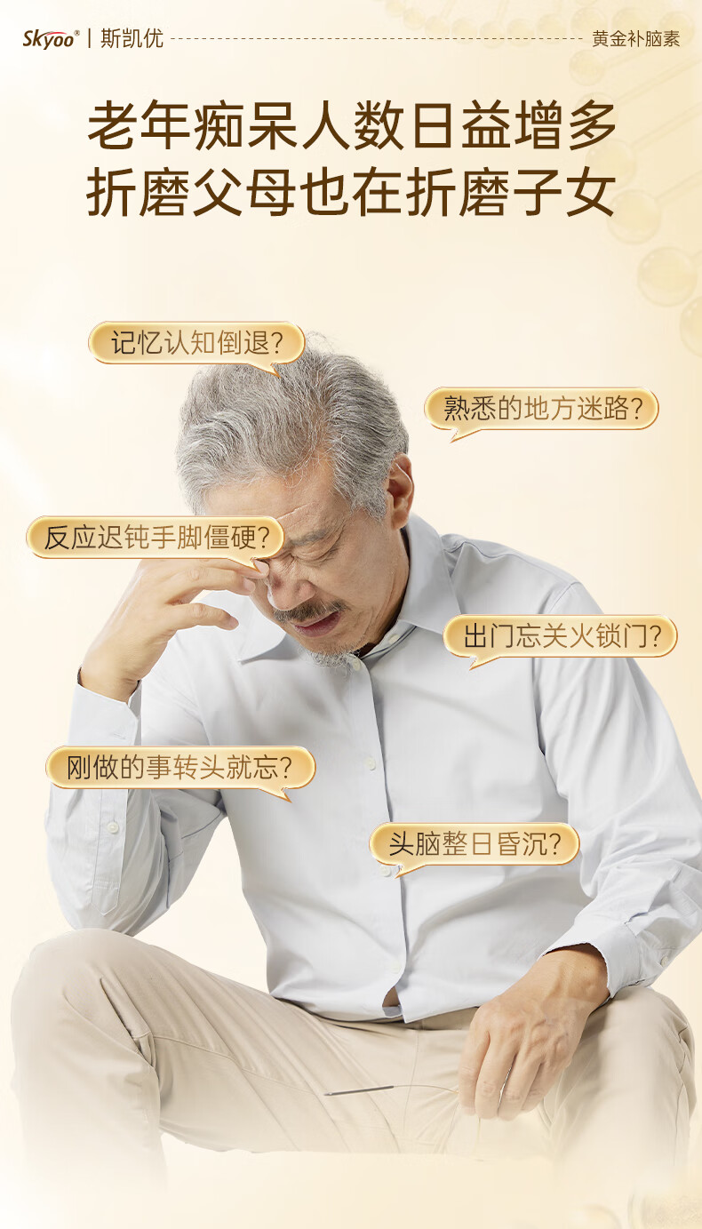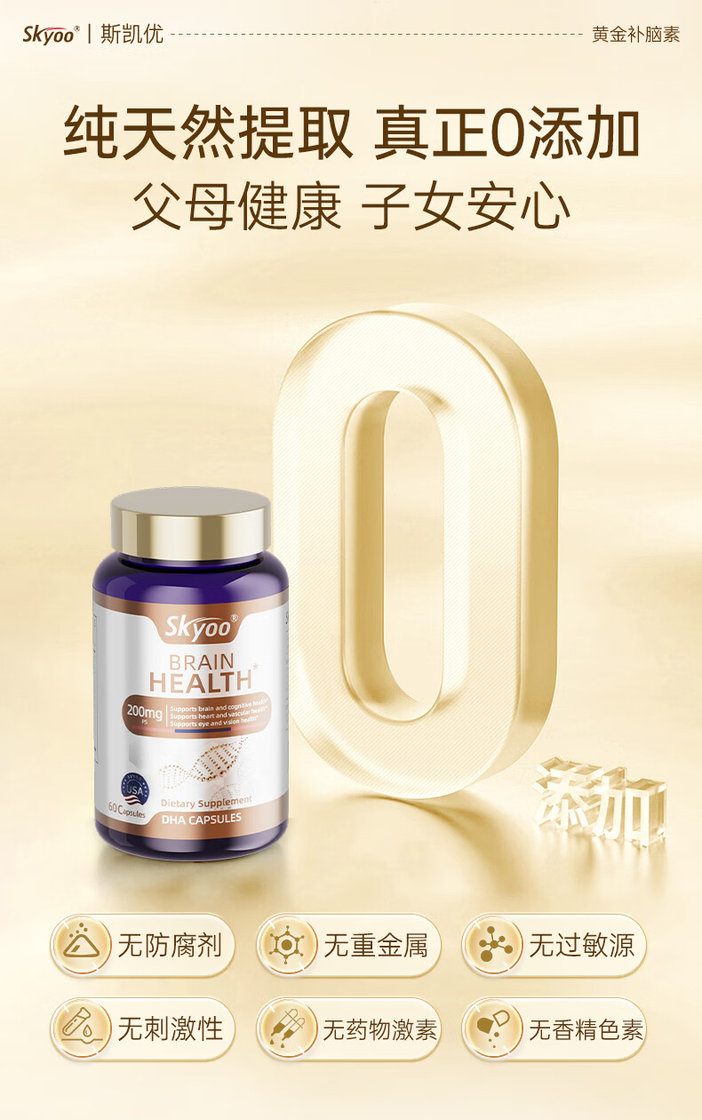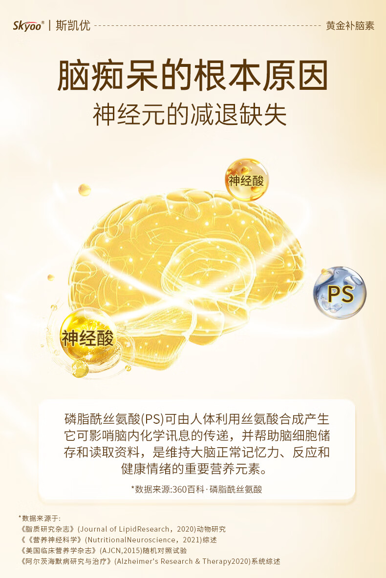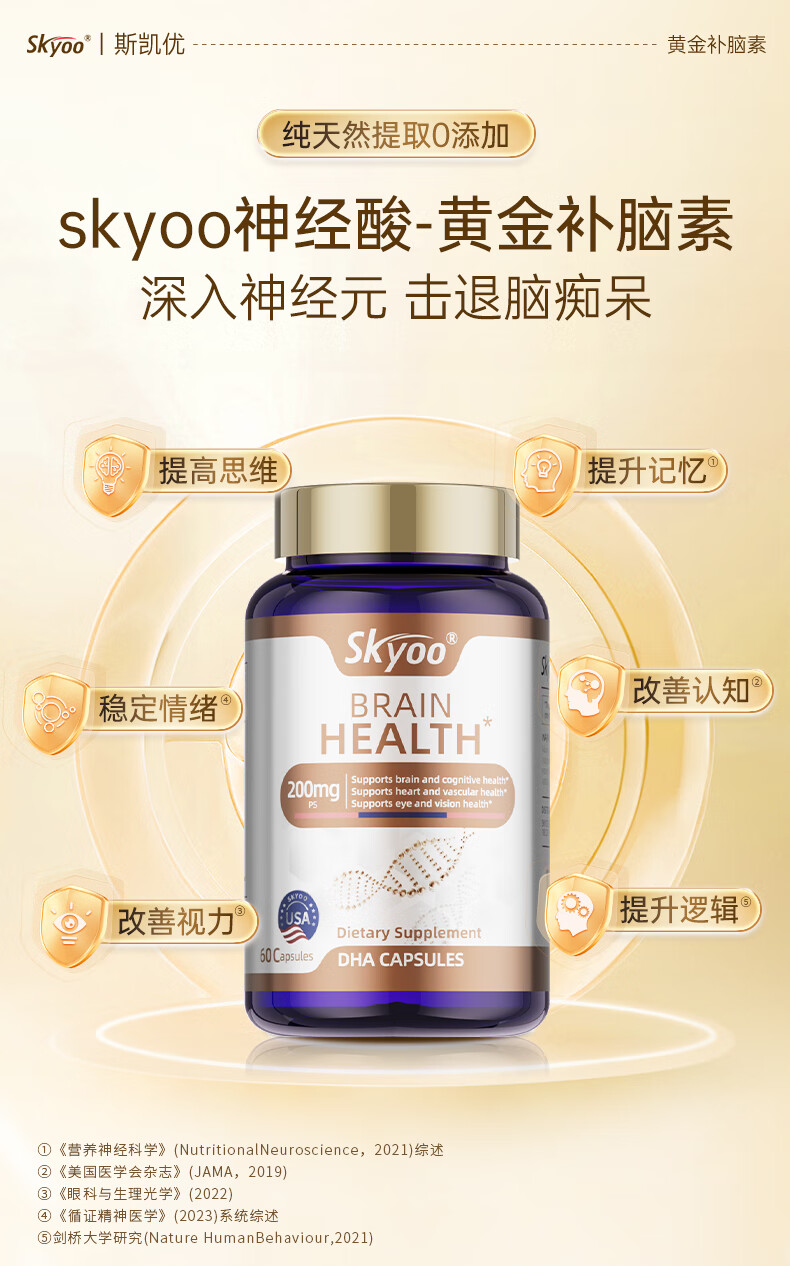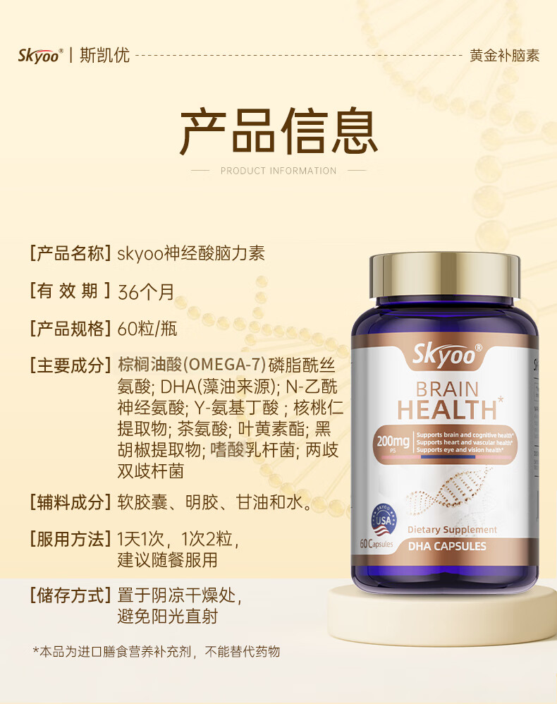 Skyoo美国品牌神经酸中老年补脑健忘增强提高记忆力认知力 60粒/瓶