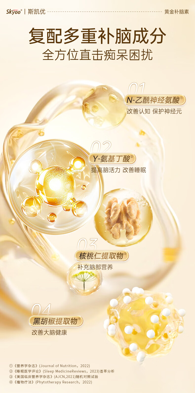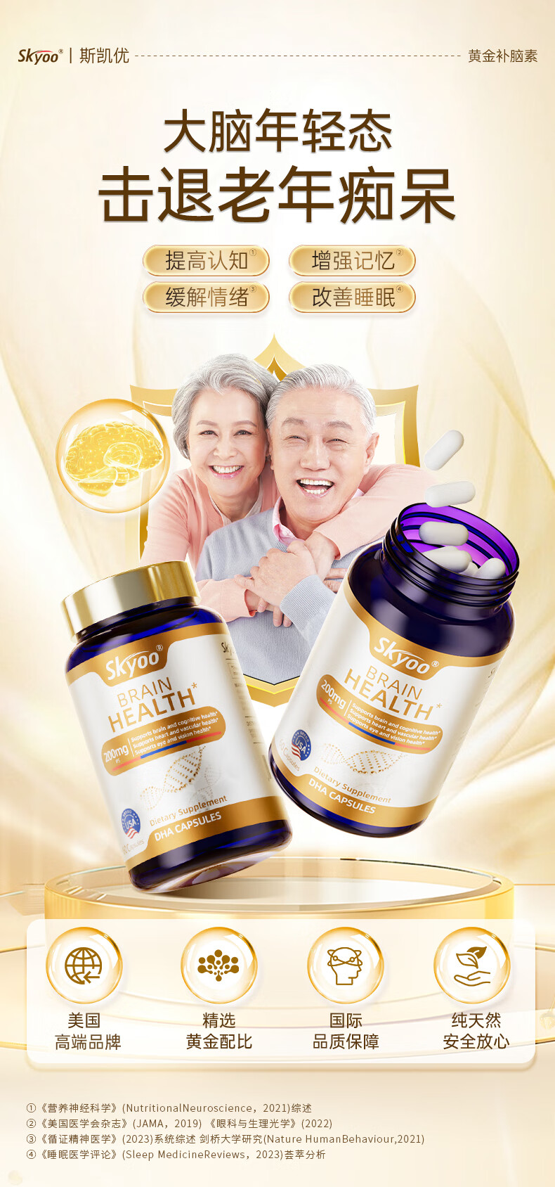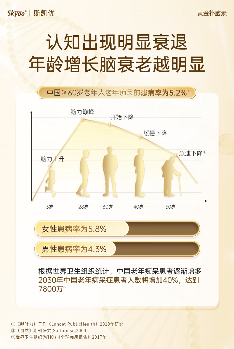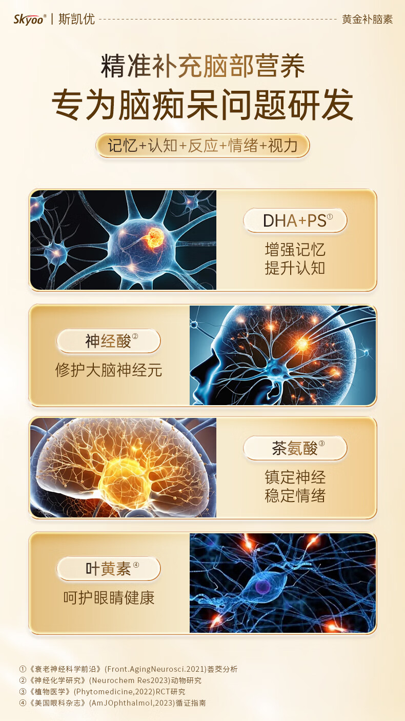 Skyoo美国品牌神经酸中老年补脑健忘增强提高记忆力认知力 60粒/瓶