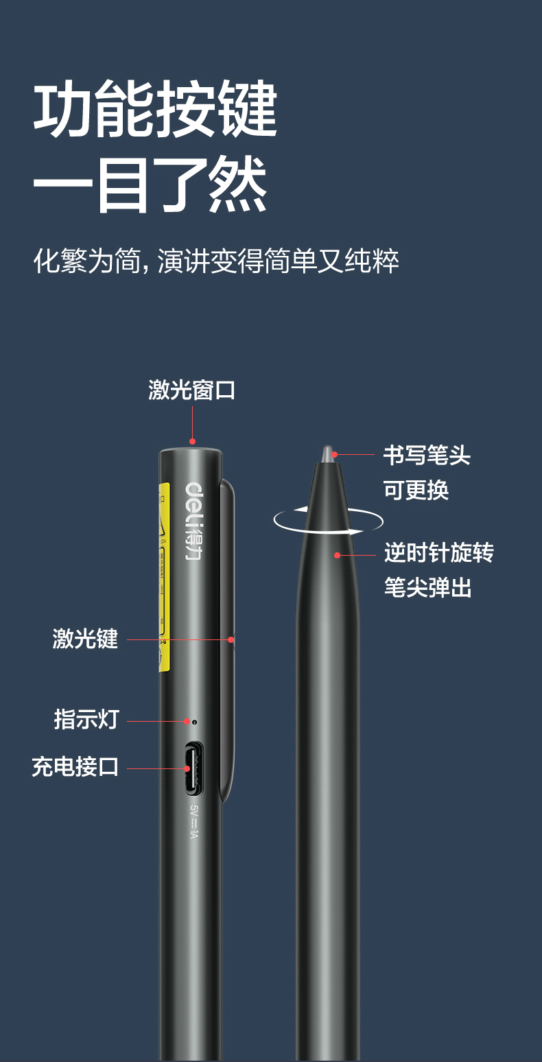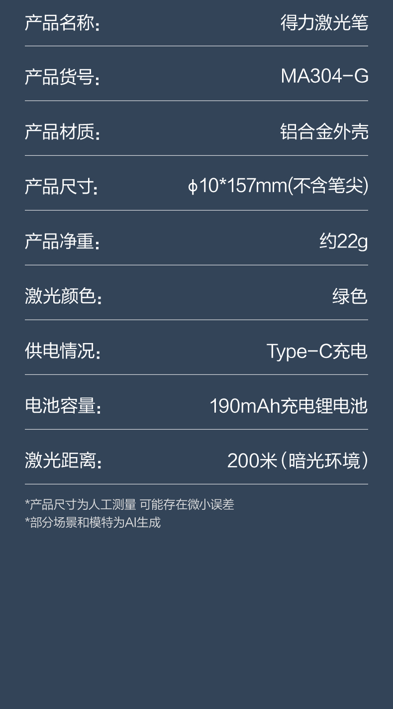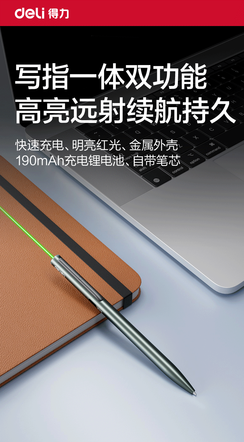 得力(deli)带书写笔头户外绿光激光笔铝合金笔身 售楼处沙盘激光指示笔电子笔逗猫笔 赠替换笔芯MA304-G
