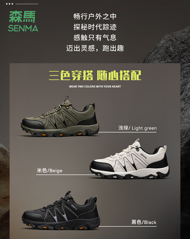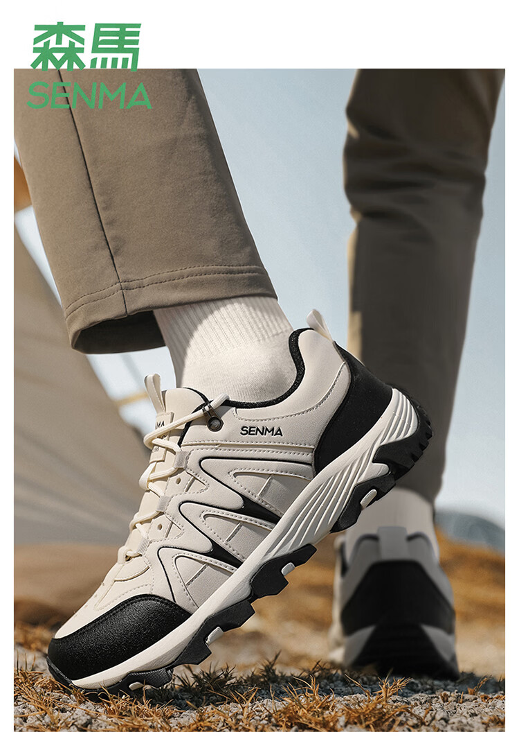 森馬男鞋2026新款春季休闲运动跑步鞋男士户外旅游徒步厚底耐磨登山鞋 米色【基础款】 39 标准码数/现货秒发