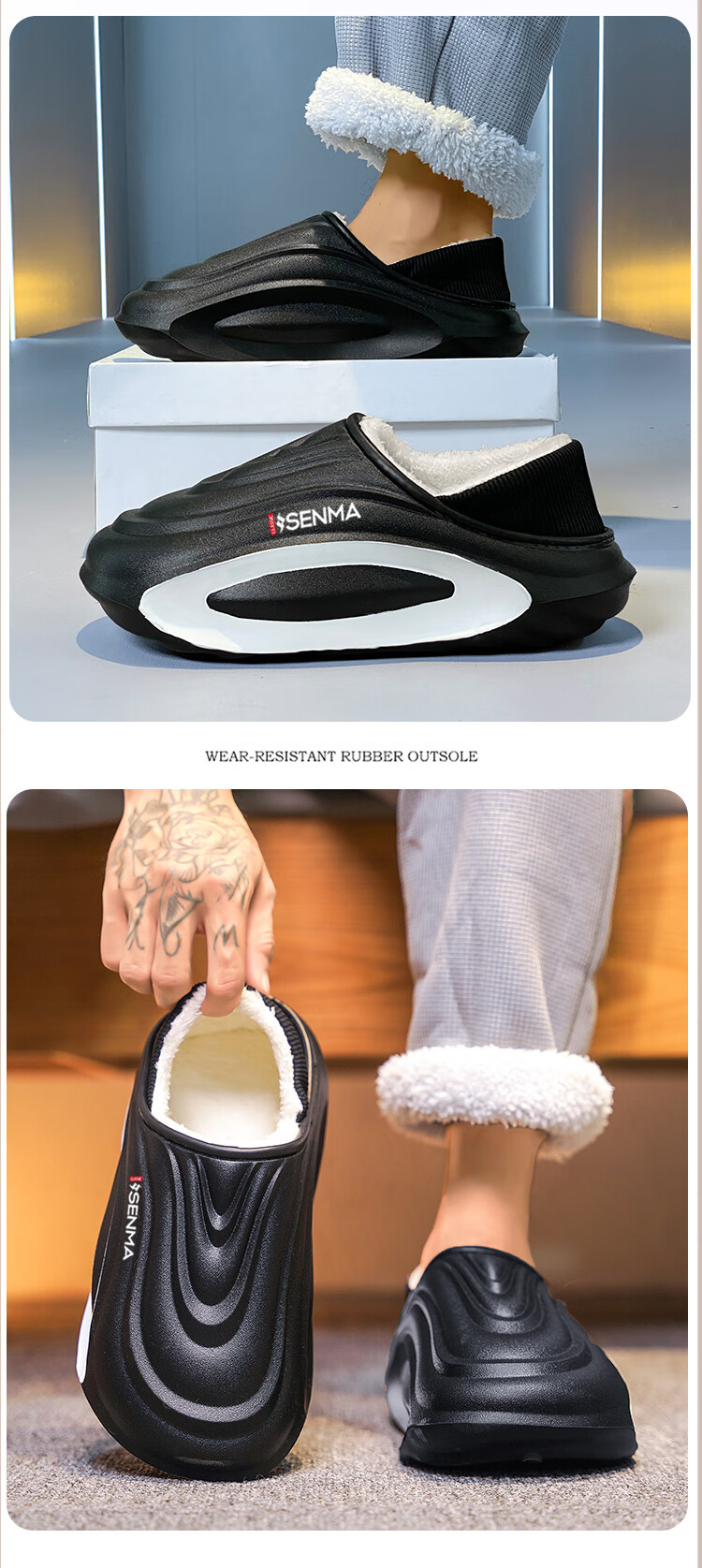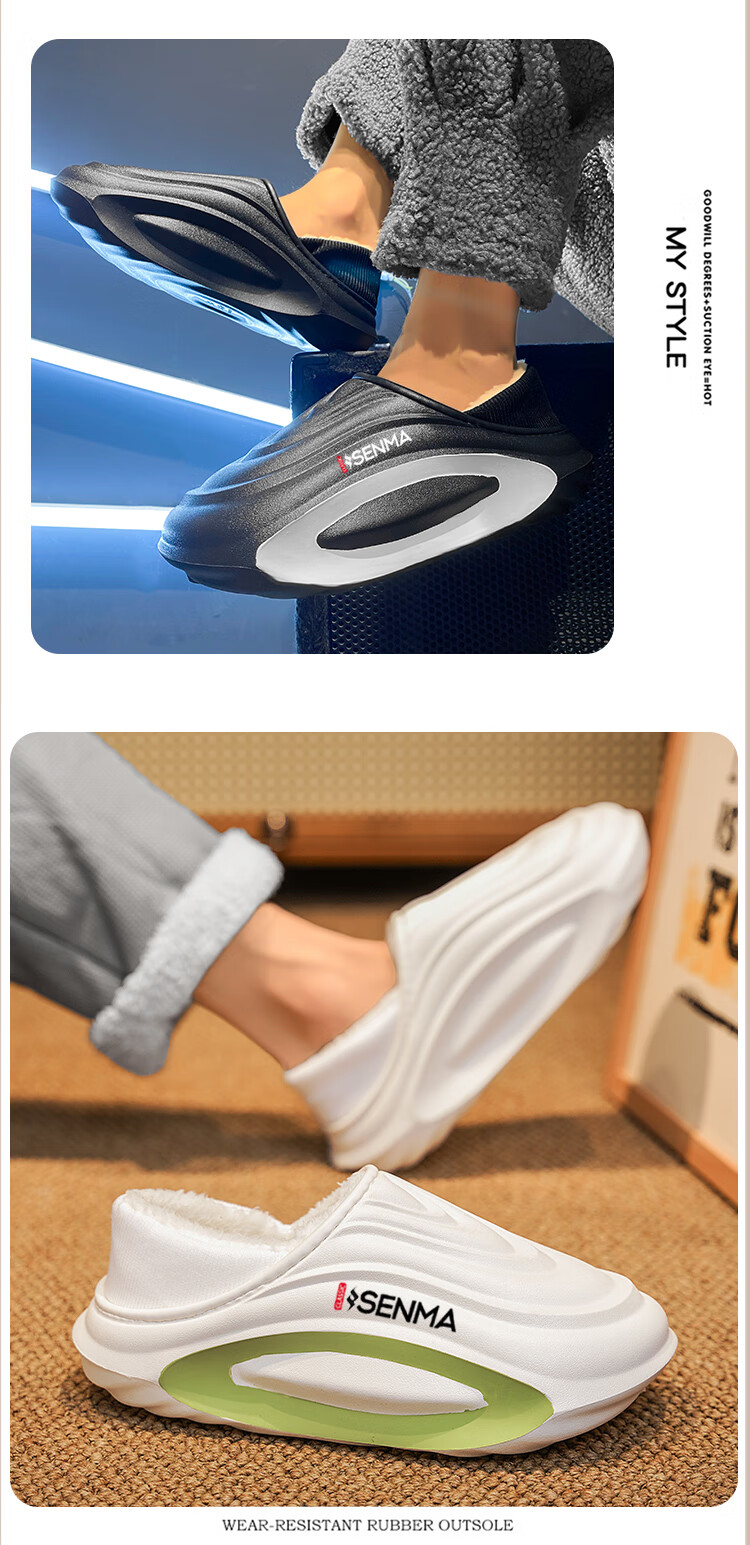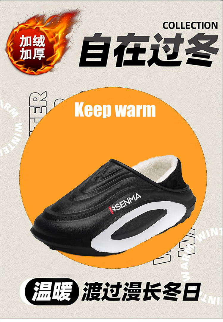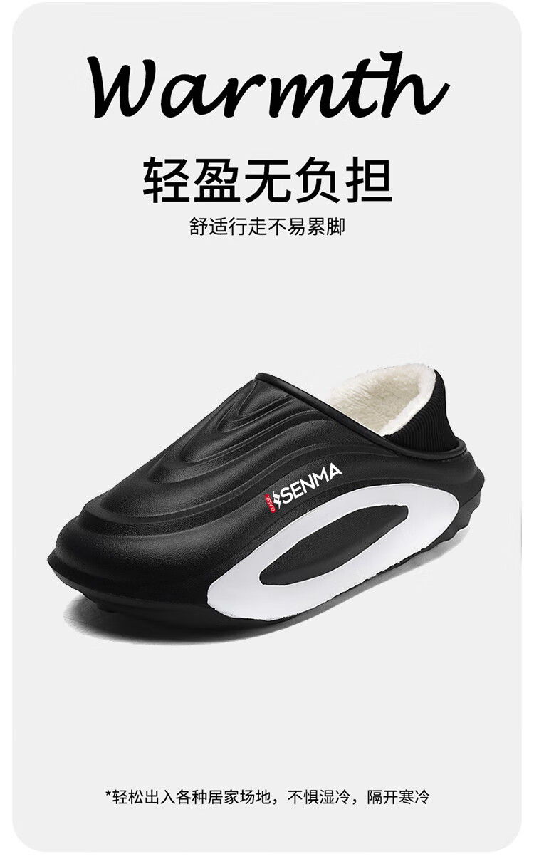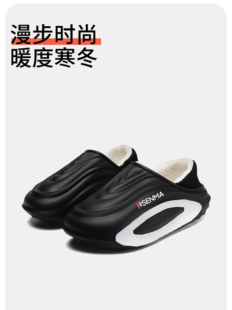 森馬棉拖鞋男冬季2026新款居家室内加绒加厚保暖外穿包跟防水防滑棉鞋 黑色【升级款】 30-31 【现货秒发】