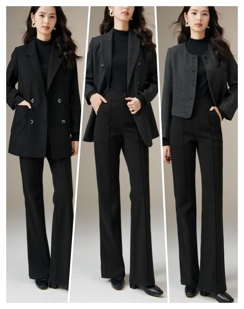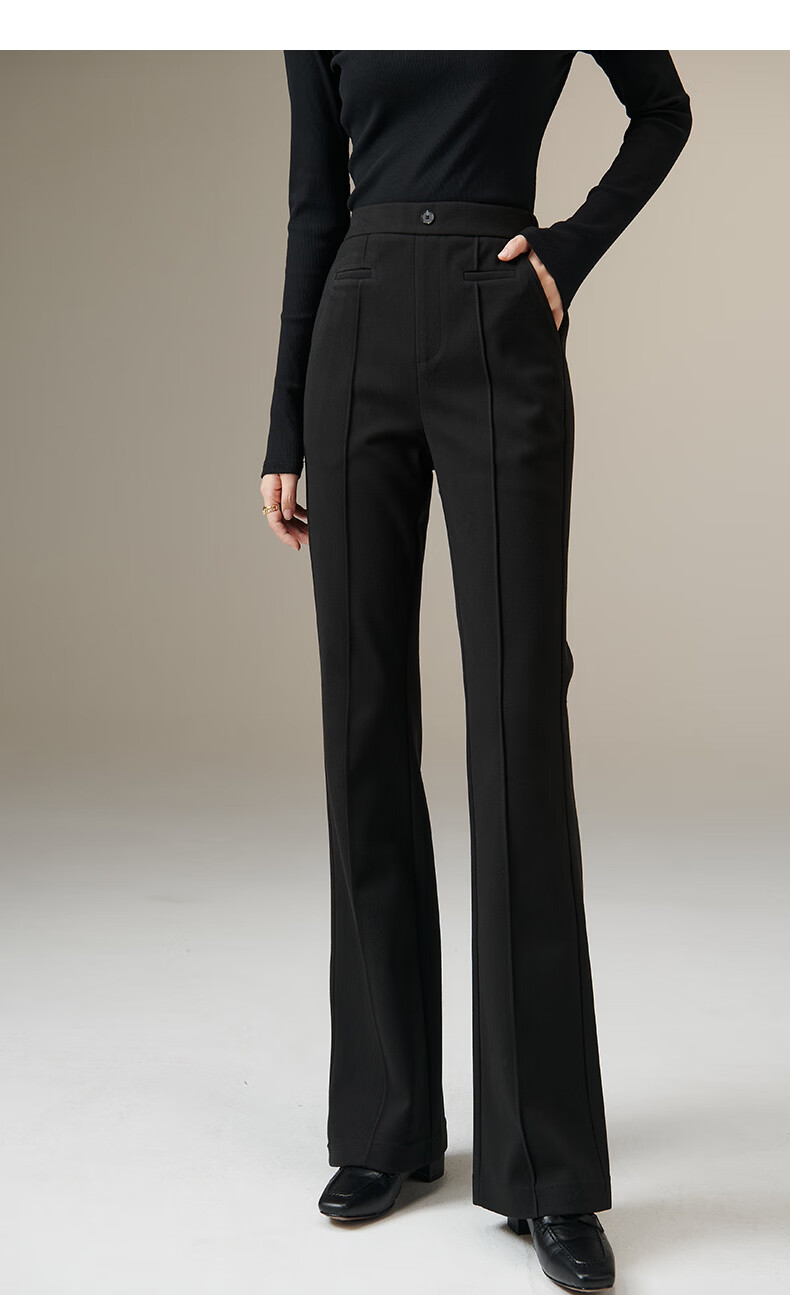 晚白【断码清仓】冬款经典高腰裤子修身显瘦职场通勤微喇裤女 黑色 27