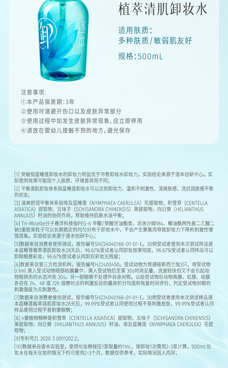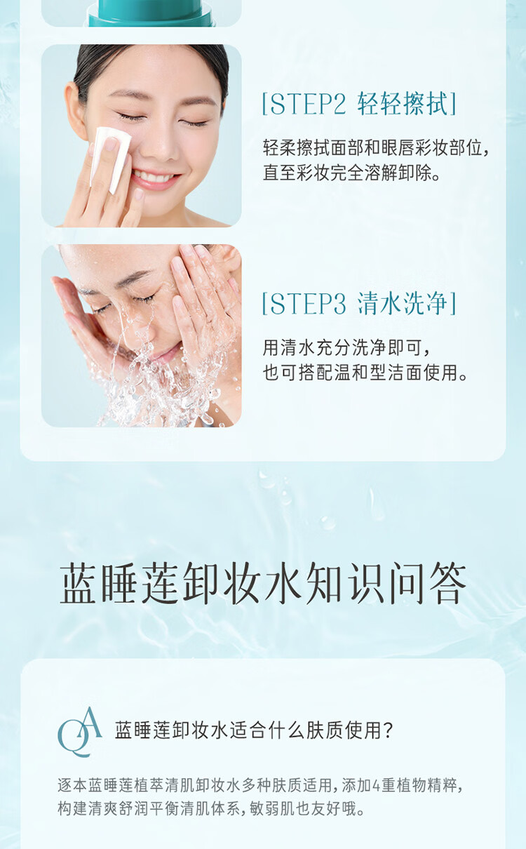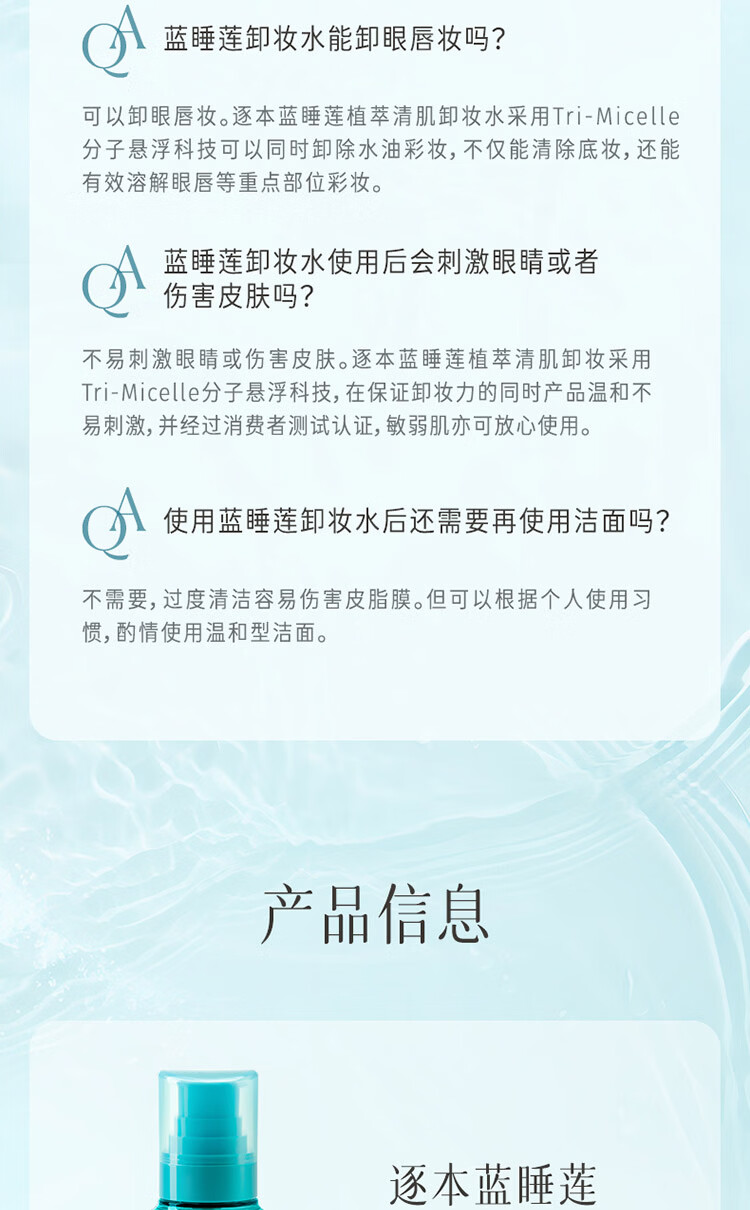 屈臣氏逐本蓝睡莲植萃清肌卸妆水 100ml