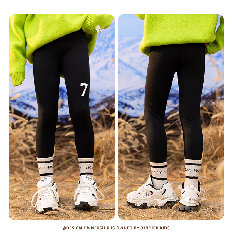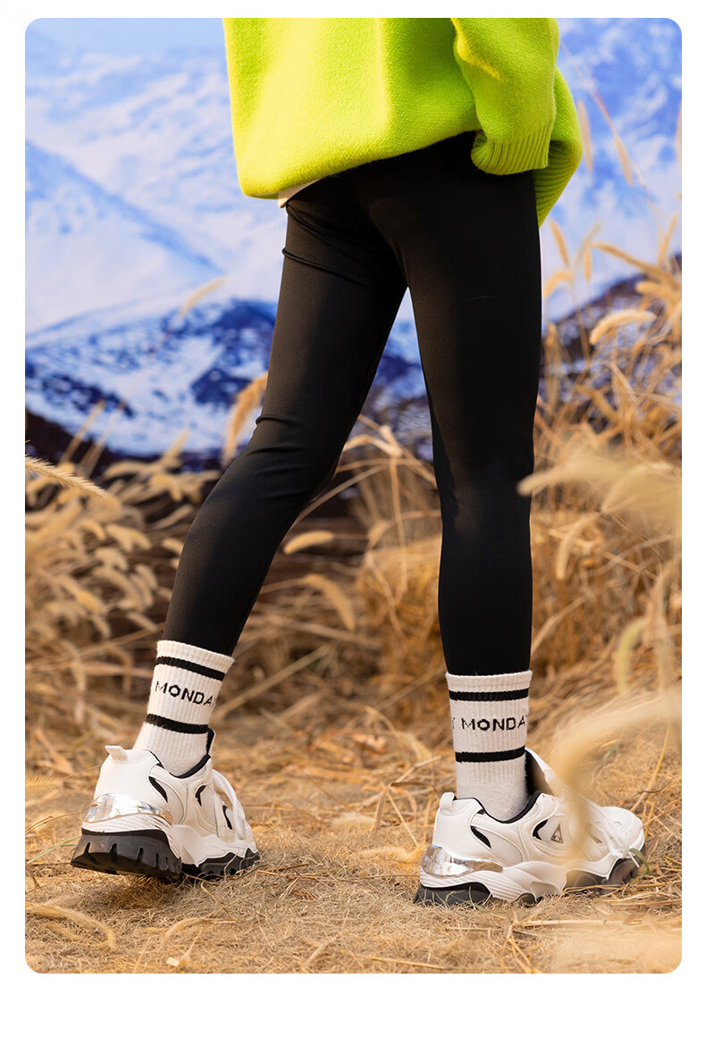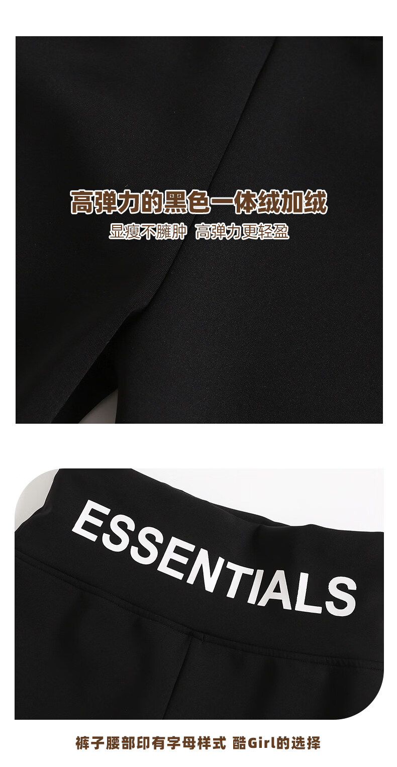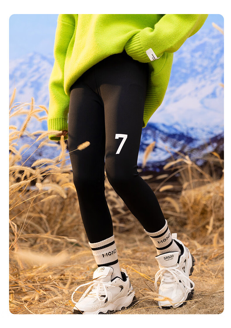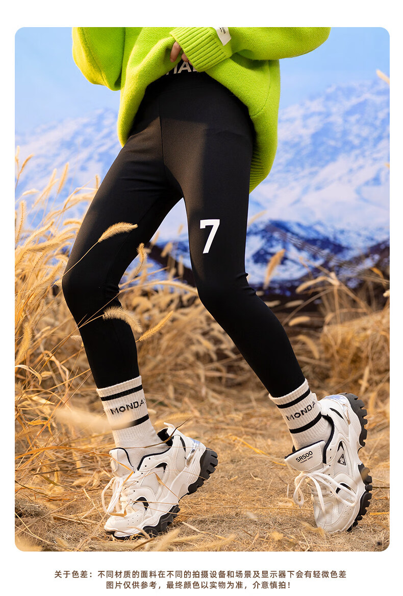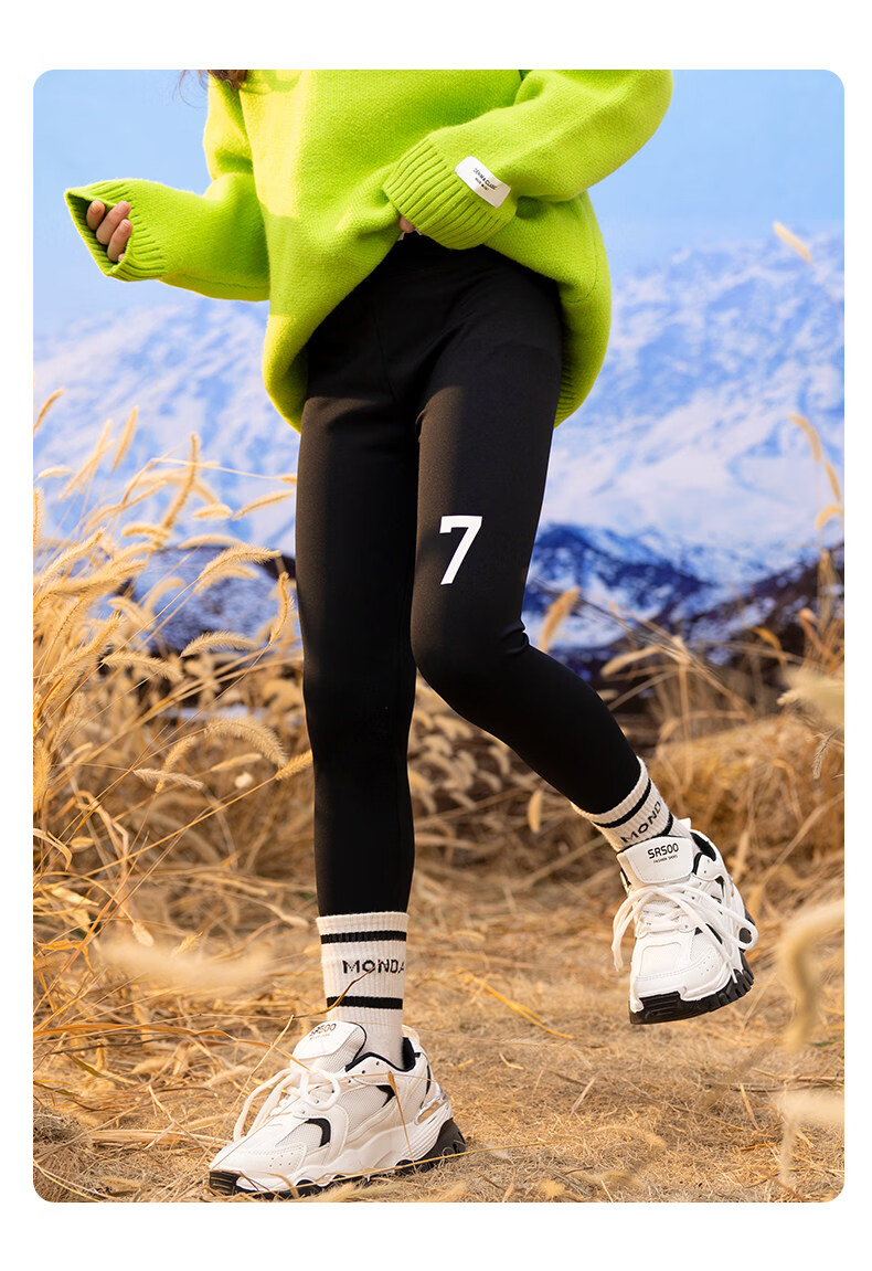 淘町女童打底裤秋冬装新款洋气鲨鱼裤中大童弹力一体绒印花瑜伽裤 黑色薄绒 【适合十度左右穿着】 130