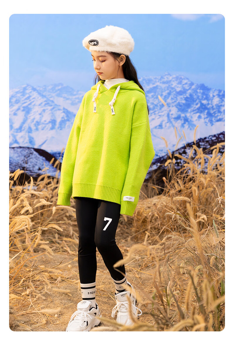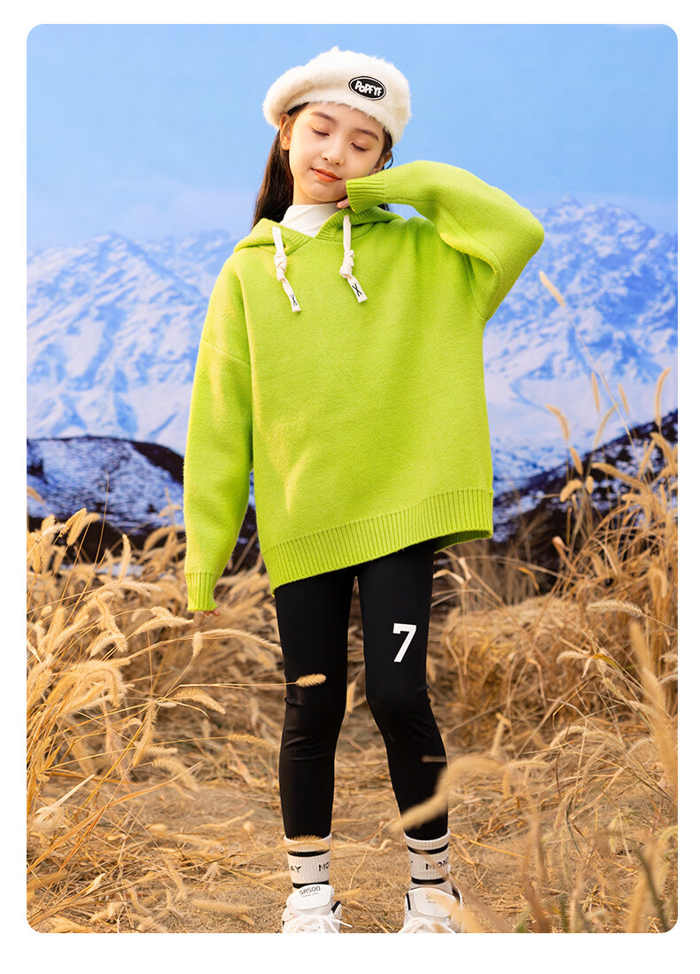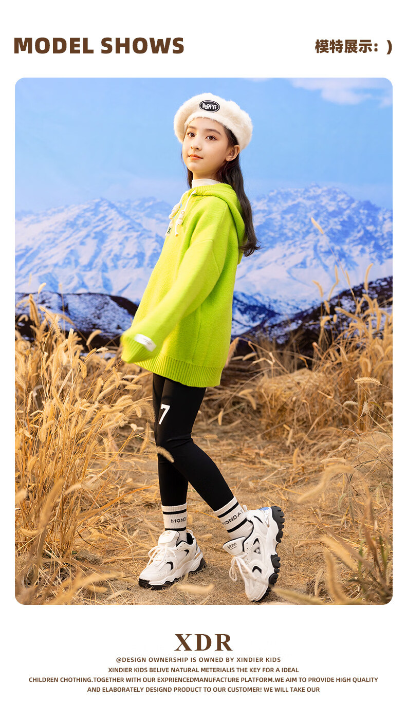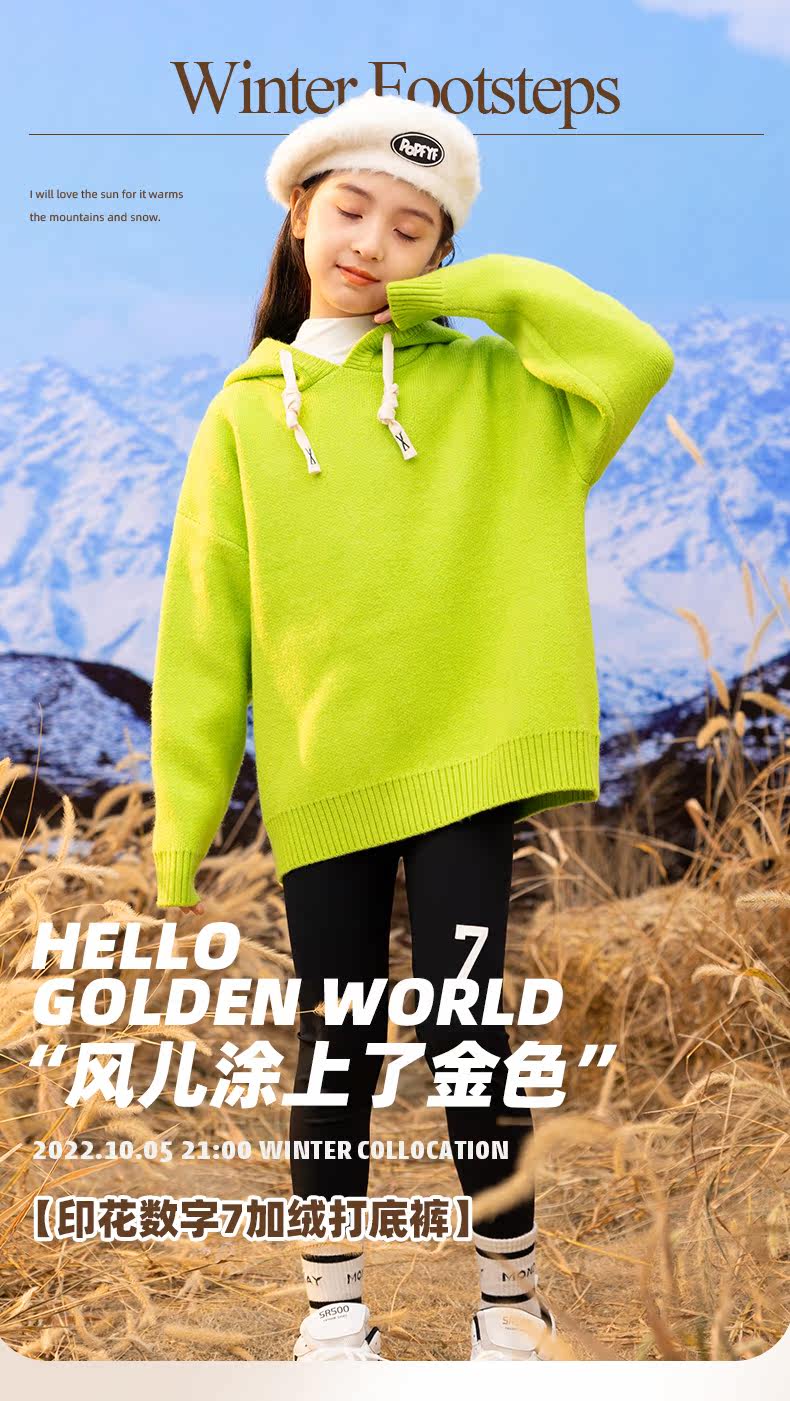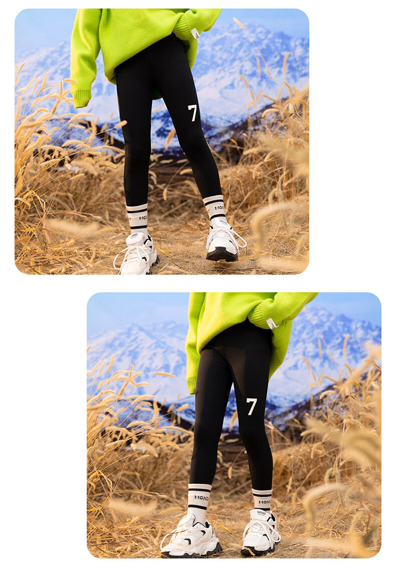 淘町女童打底裤秋冬装新款洋气鲨鱼裤中大童弹力一体绒印花瑜伽裤 黑色薄绒 【适合十度左右穿着】 130