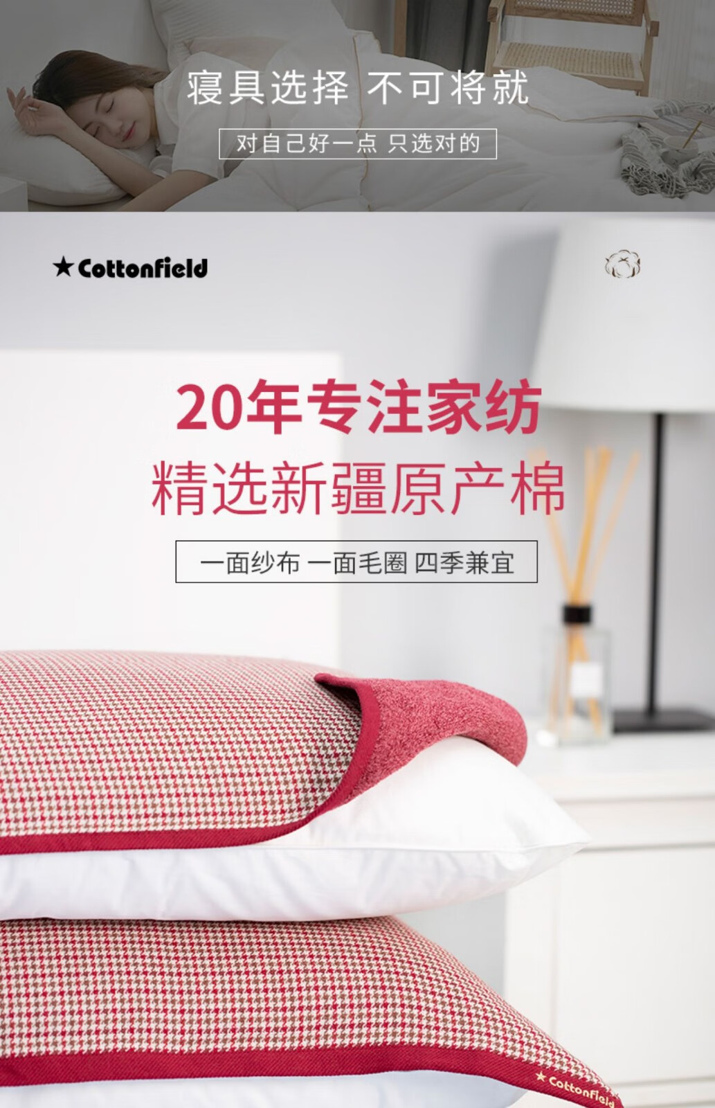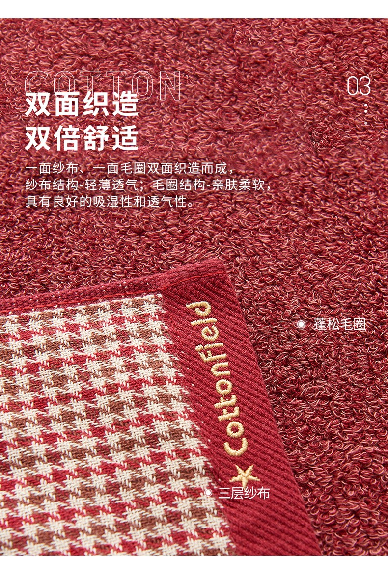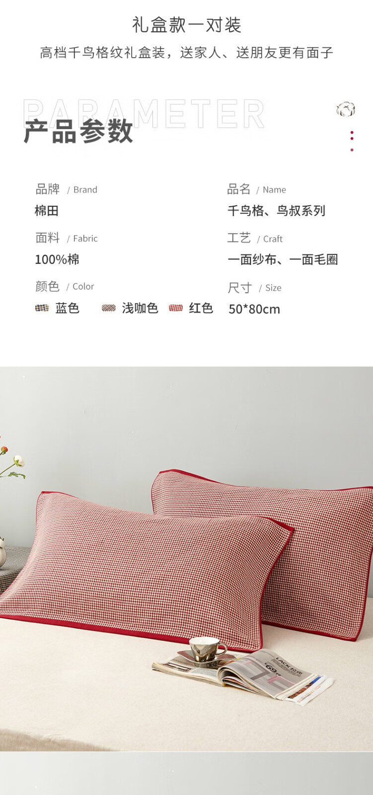 棉田纯棉枕巾一对装全棉成人纱布枕巾 鸟叔 枕巾 红色一对装