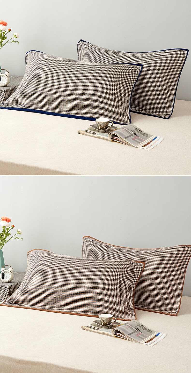 一默枕套100%纯棉枕套单双人床上枕头套宿舍学生水洗棉全棉枕套一对装 雾粉 48*74cm一对装