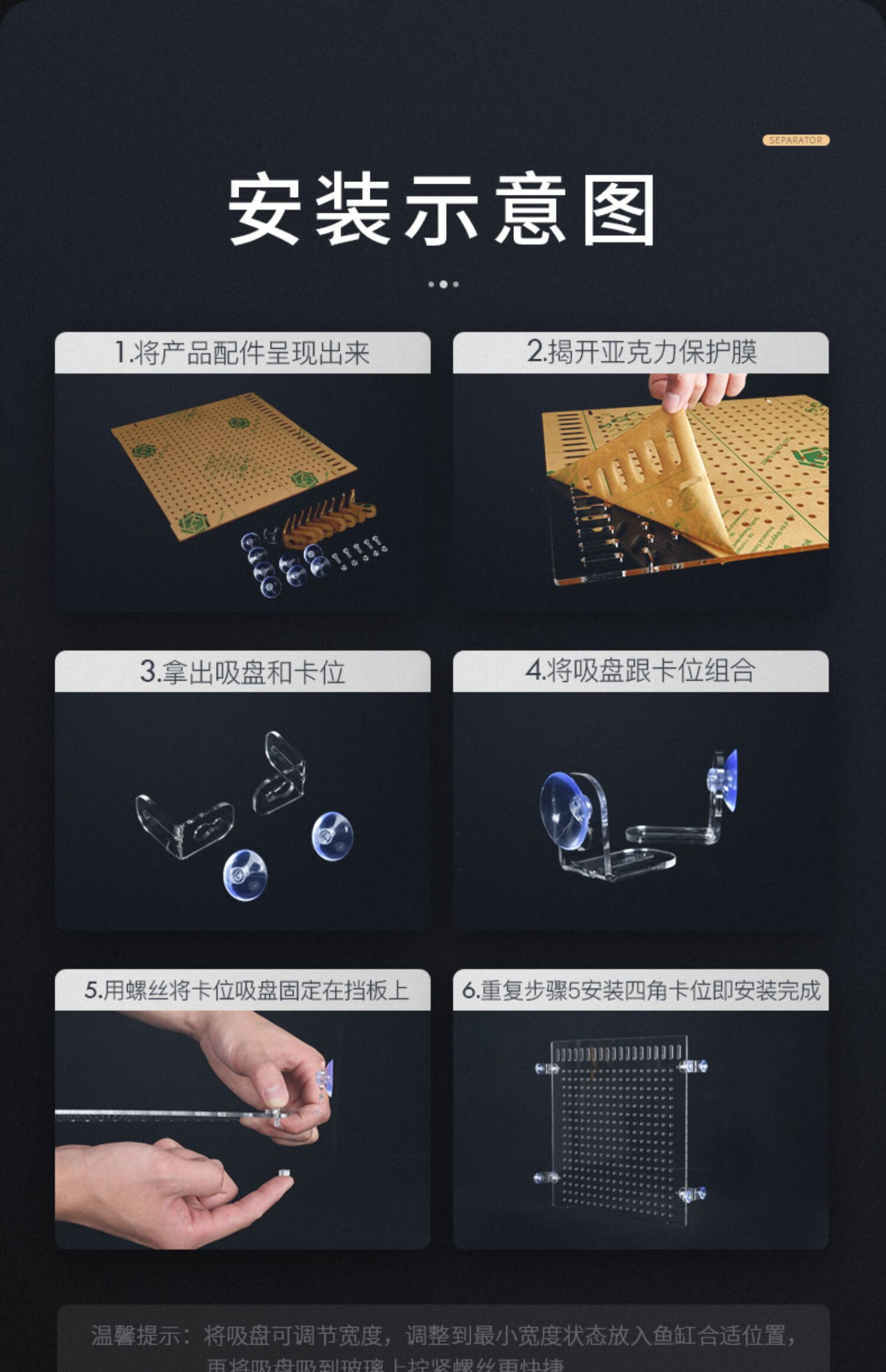 边胜鱼缸隔离板透明亚克力隔离网隔板孔雀鱼孵化盒水族箱隔离板 【高透明】宽28x高45x厚2mm+8个吸盘