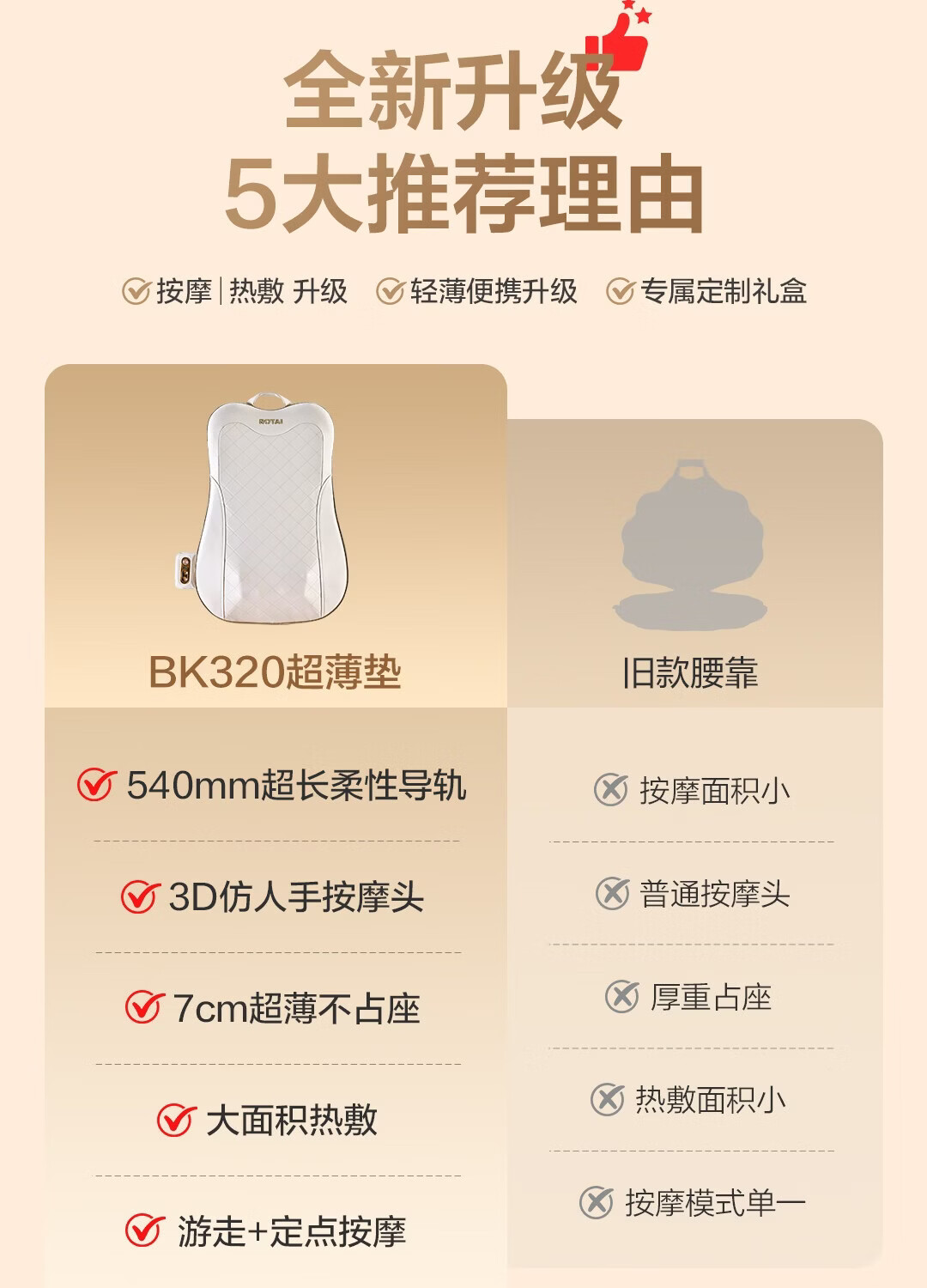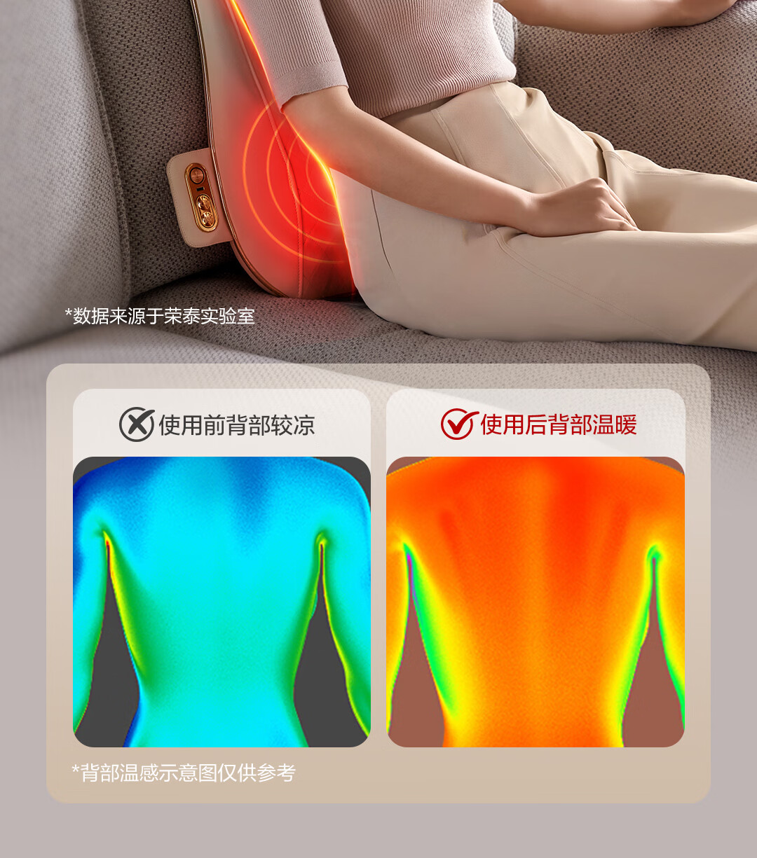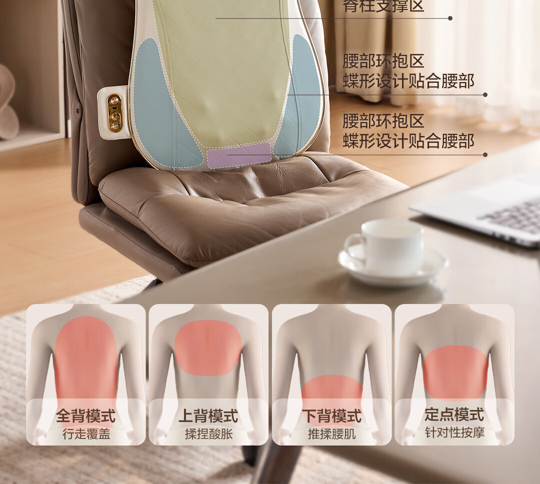 荣泰按摩靠垫BK320腰部背部肩颈按摩器热敷家用按摩仪多功能自动揉捏送男女友三八节女神礼物送父母