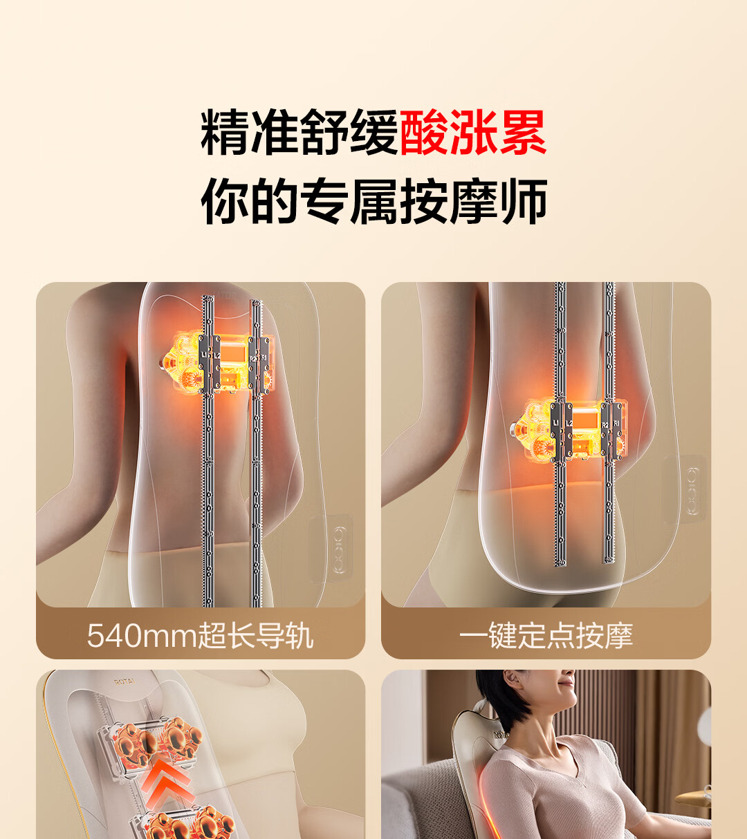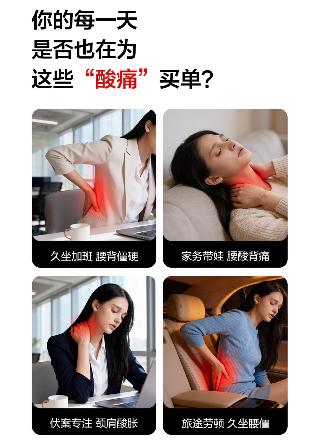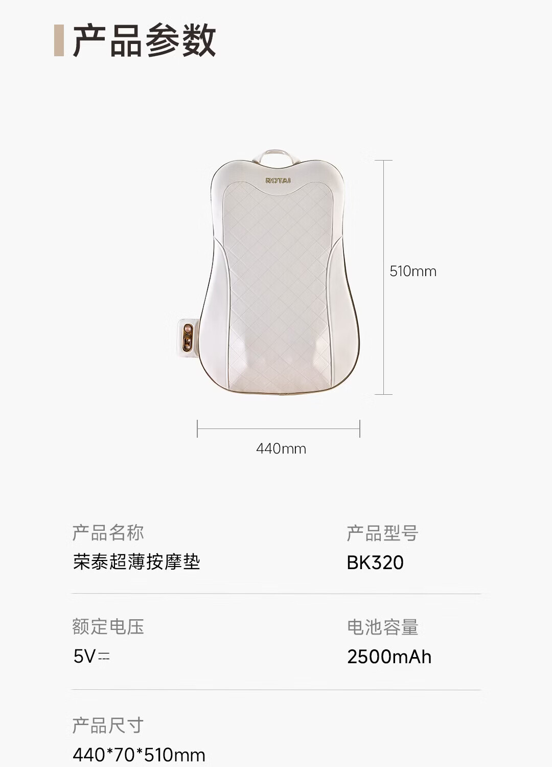 荣泰按摩靠垫BK320腰部背部肩颈按摩器热敷家用按摩仪多功能自动揉捏送男女友三八节女神礼物送父母