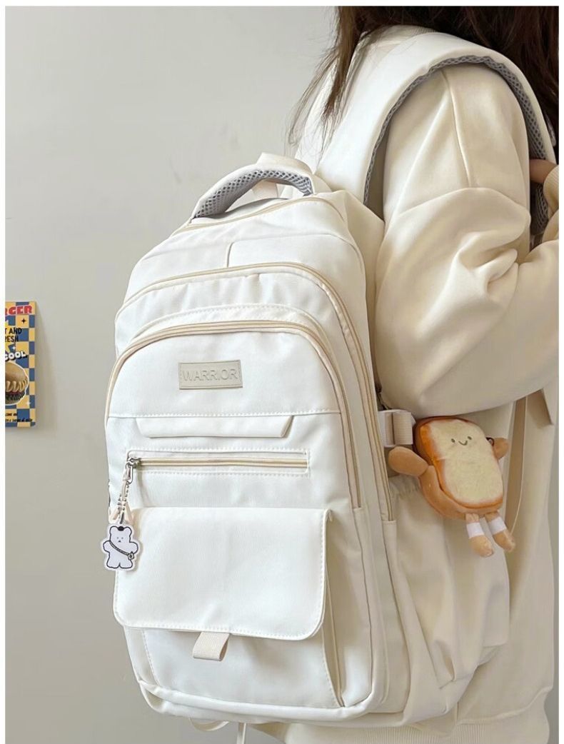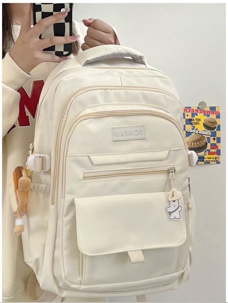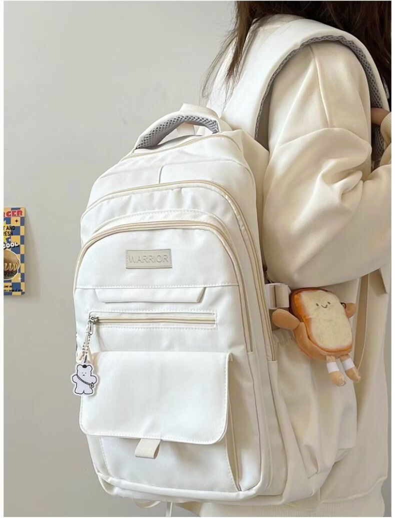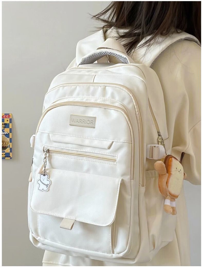 回力(Warrior)双肩包女生大容量书包百搭ins初高中生双肩包简约大学生电脑背包 米白色 【七大隔层】