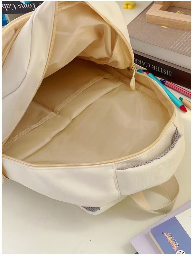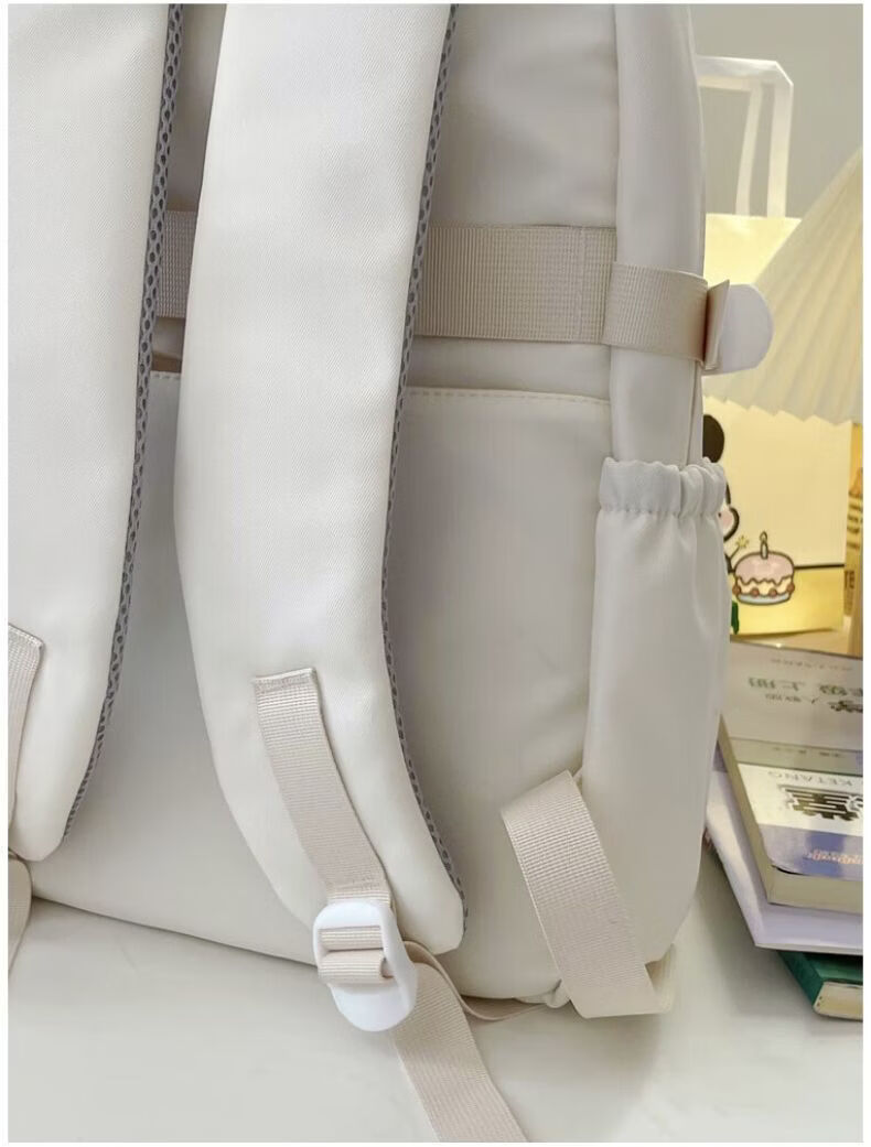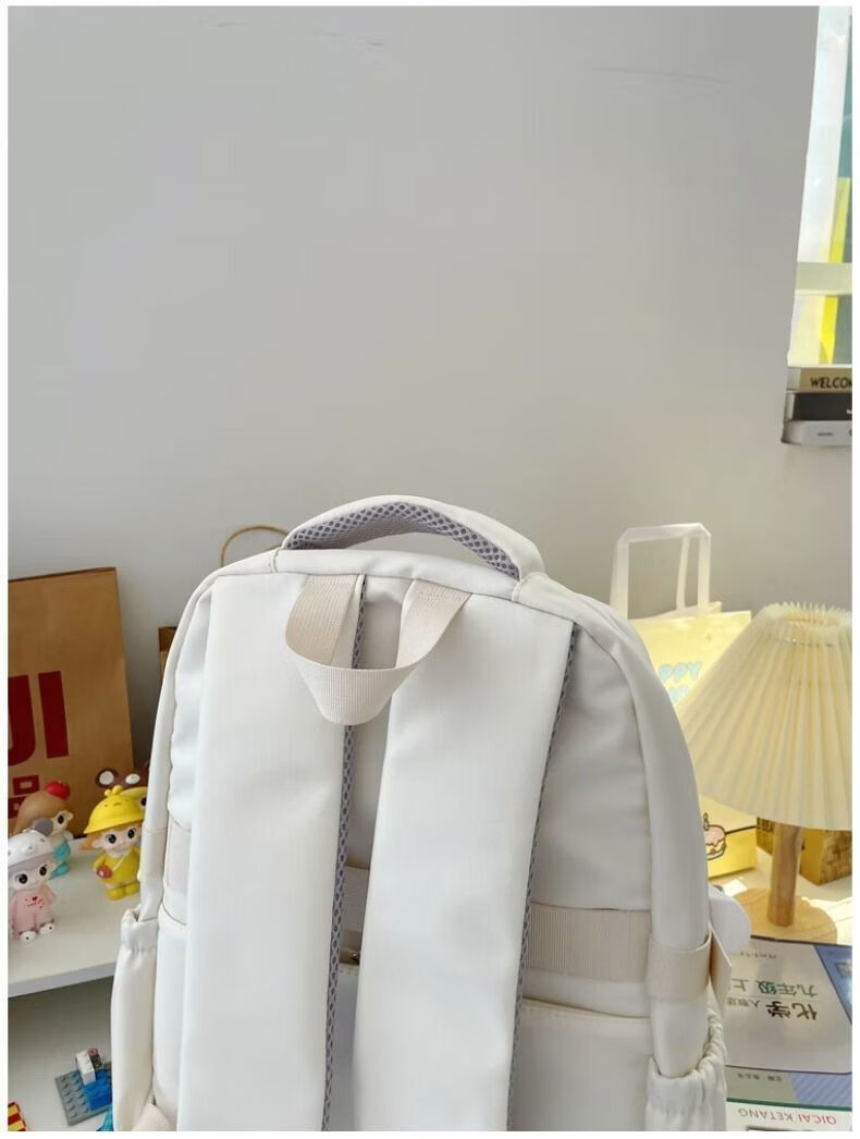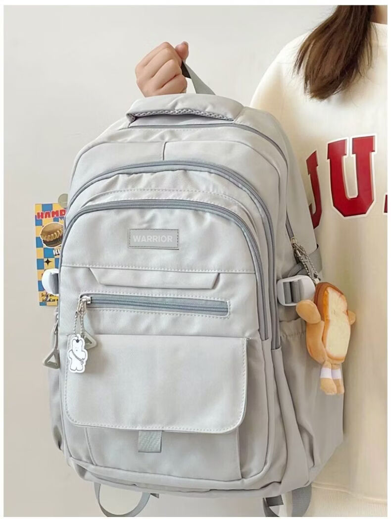 回力(Warrior)双肩包女生大容量书包百搭ins初高中生双肩包简约大学生电脑背包 米白色 【七大隔层】