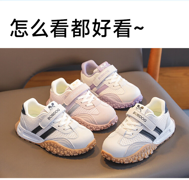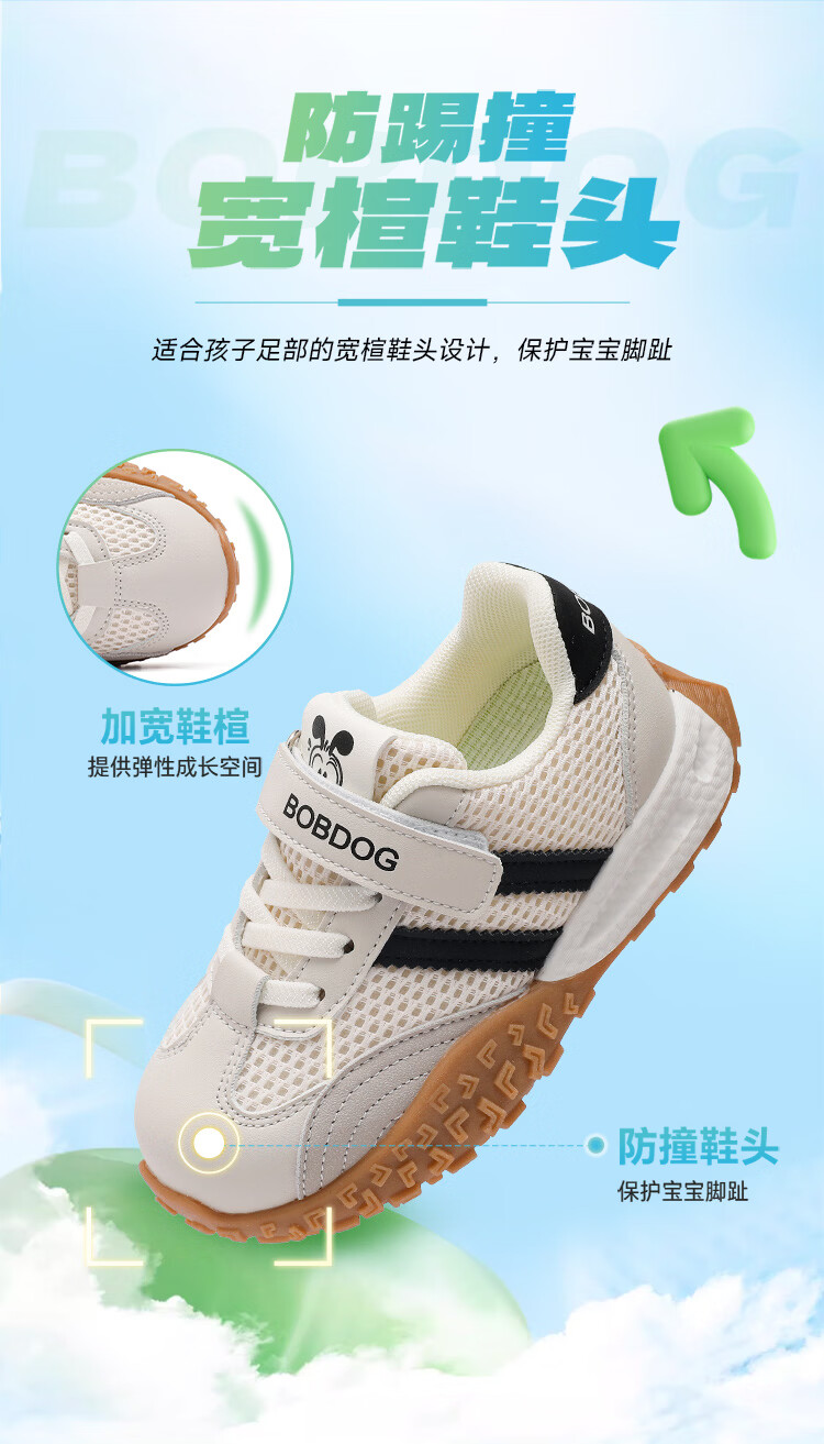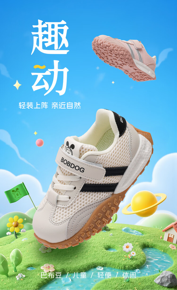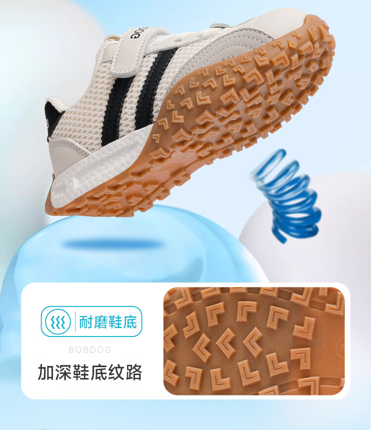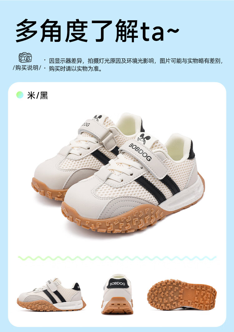 巴布豆(BOBDOG)童鞋男童春季休闲鞋2026女宝跑步鞋中大童网面德训鞋儿童运动鞋 米/黑 29 适合脚长17.6cm