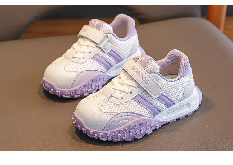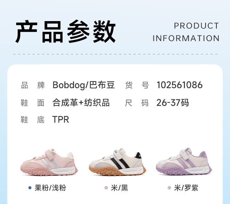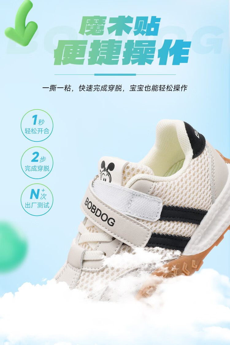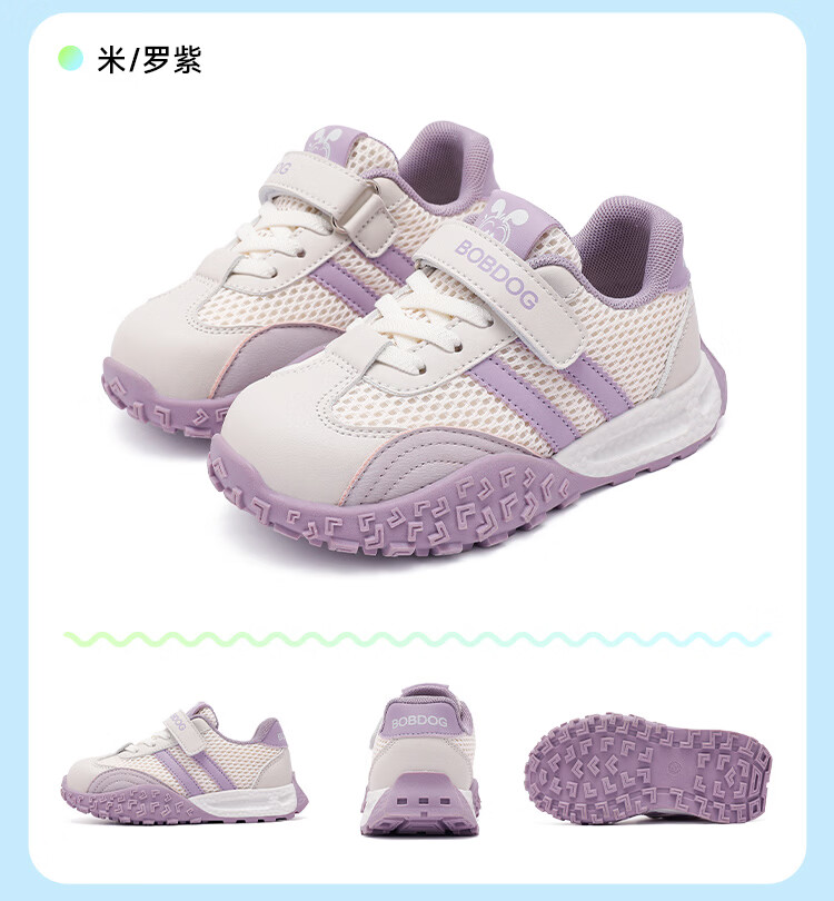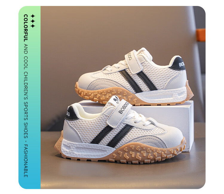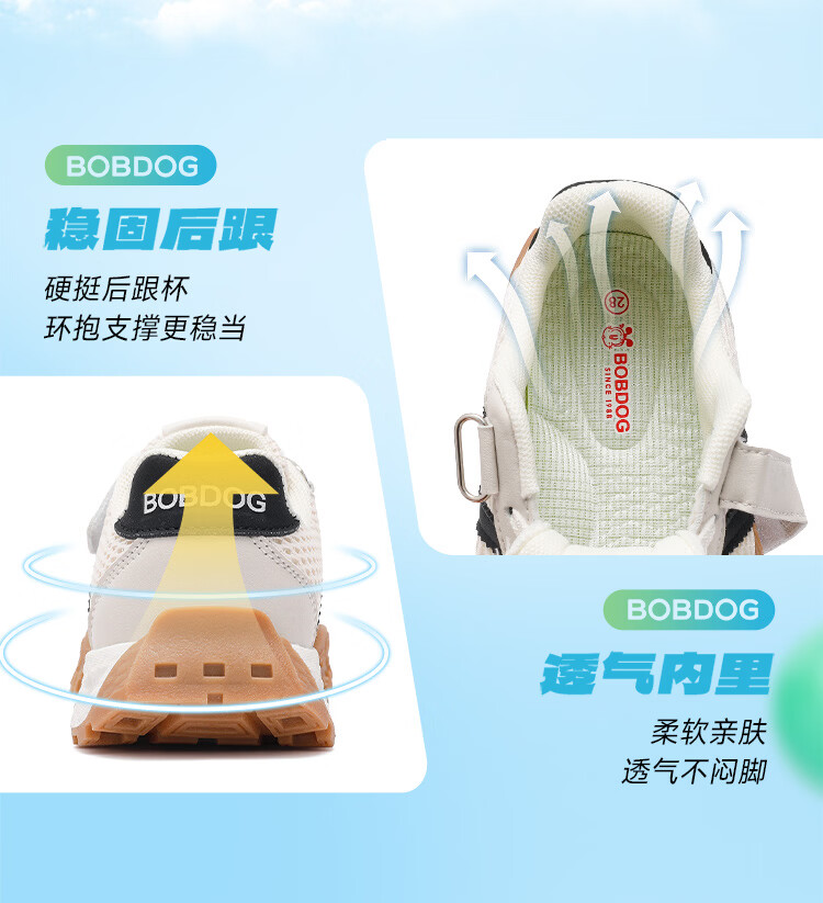 巴布豆(BOBDOG)童鞋男童春季休闲鞋2026女宝跑步鞋中大童网面德训鞋儿童运动鞋 米/黑 29 适合脚长17.6cm