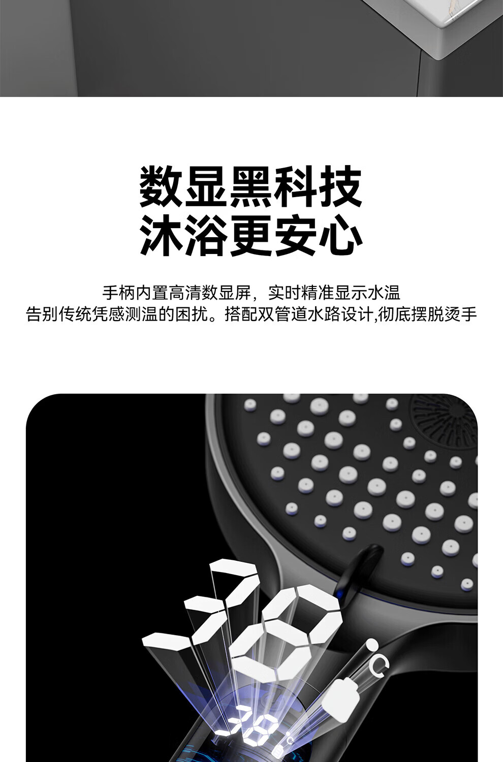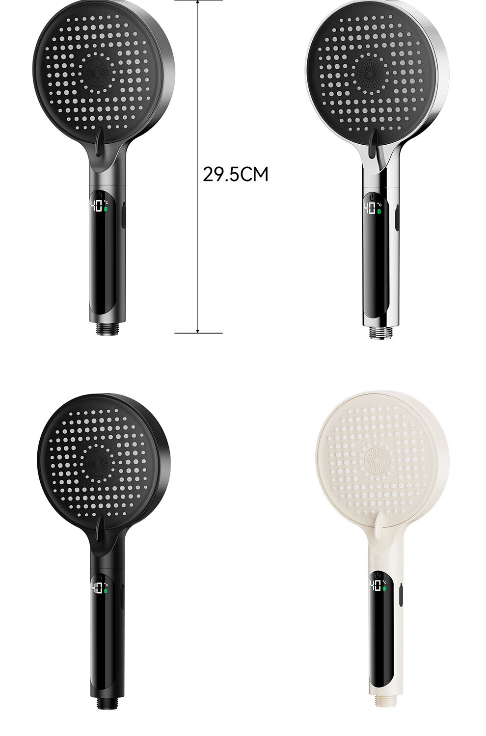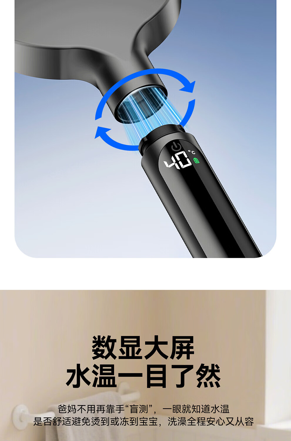 JOMOW增压花洒喷头数显家用多功能显示水温度数大面板淋浴手持喷头 【枪灰数显款】1.5米防爆管+免安装墙座