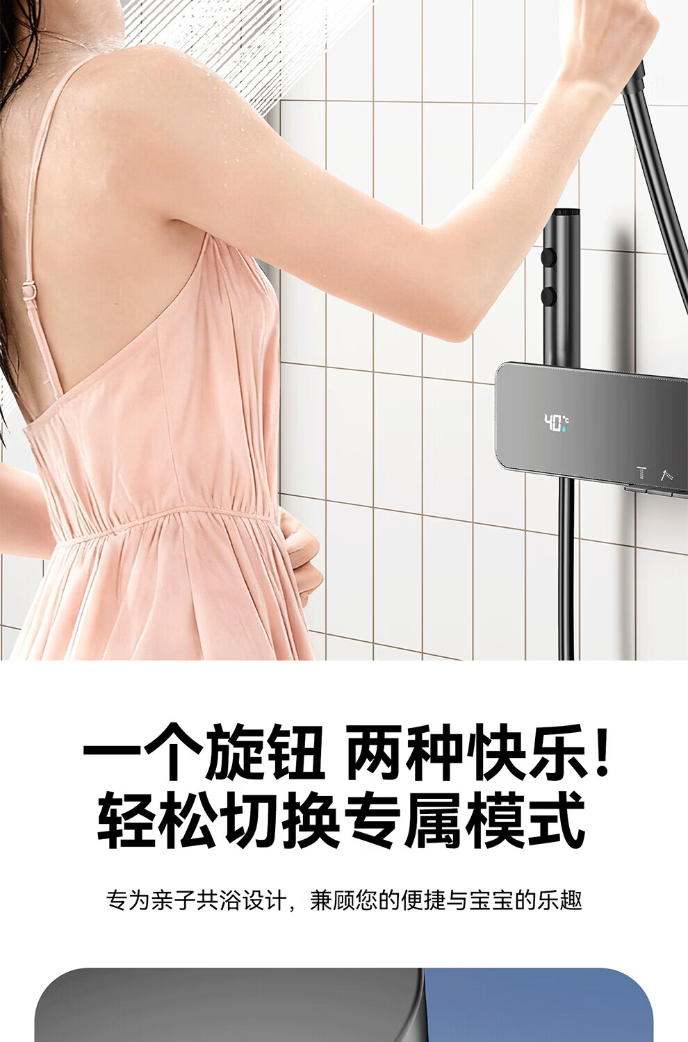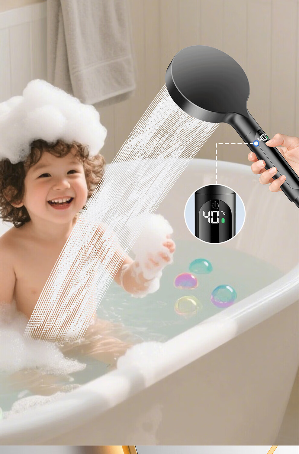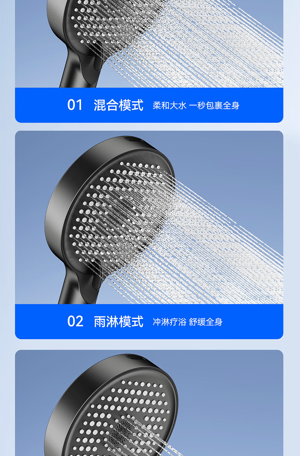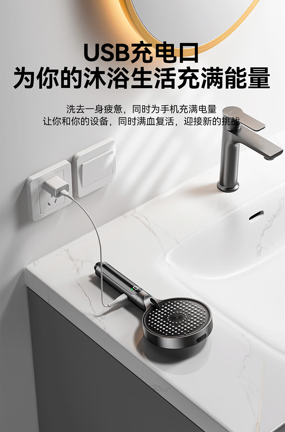 JOMOW增压花洒喷头数显家用多功能显示水温度数大面板淋浴手持喷头 【枪灰数显款】1.5米防爆管+免安装墙座