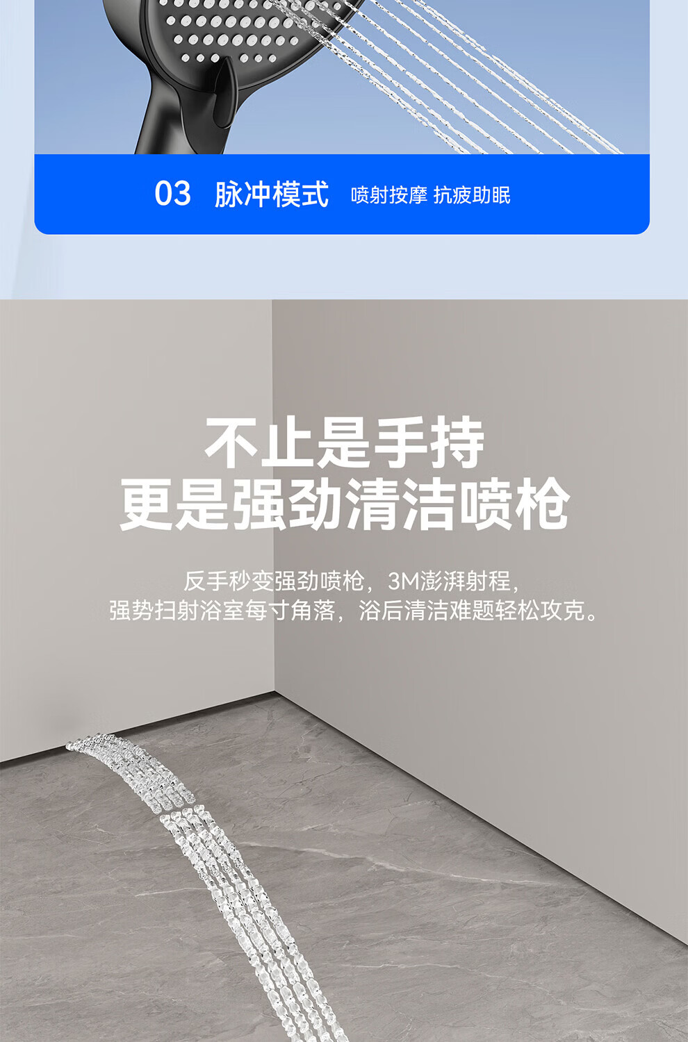 九牧(JOMOO)亮银集成升降硅胶除垢三功能分体淋浴器喷枪款35324-592/1B-1