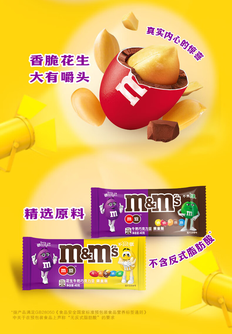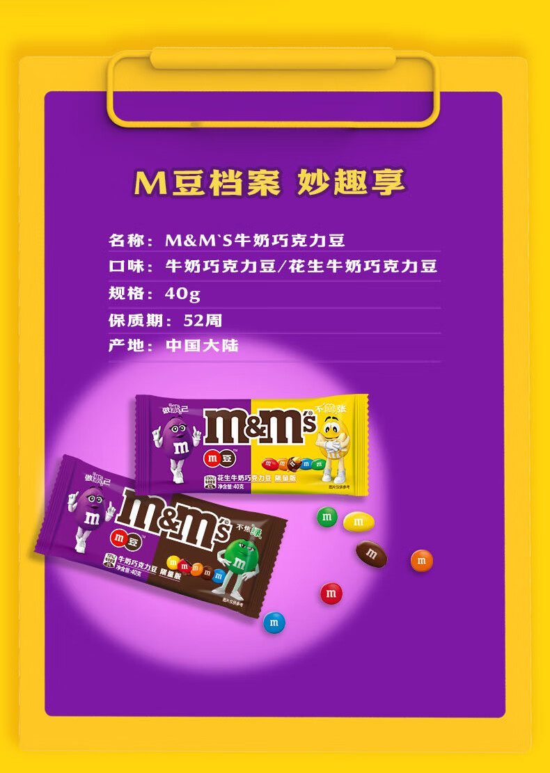 M&M'S 牛奶 巧克力豆 袋装40g 休闲儿童零食 糖果 生日礼物 送礼