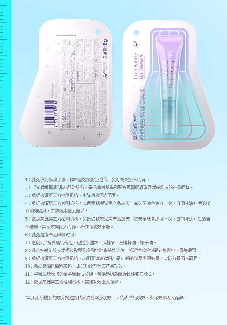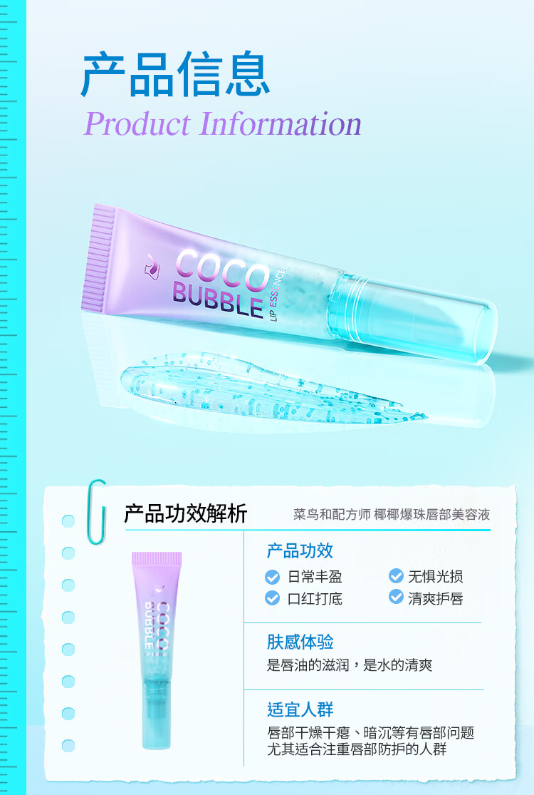 菜鸟和配方师椰椰爆珠唇部美容液 清爽滋润不油腻紧致抗皱保湿去死皮清爽 8ml【送定制吊坠】