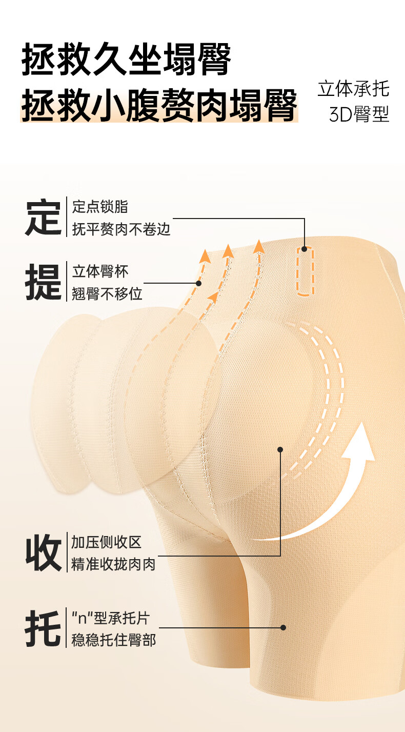 润微提臀收腹裤强力收小肚子无痕翘臀 裸感肤 3XL (适合158-178斤)