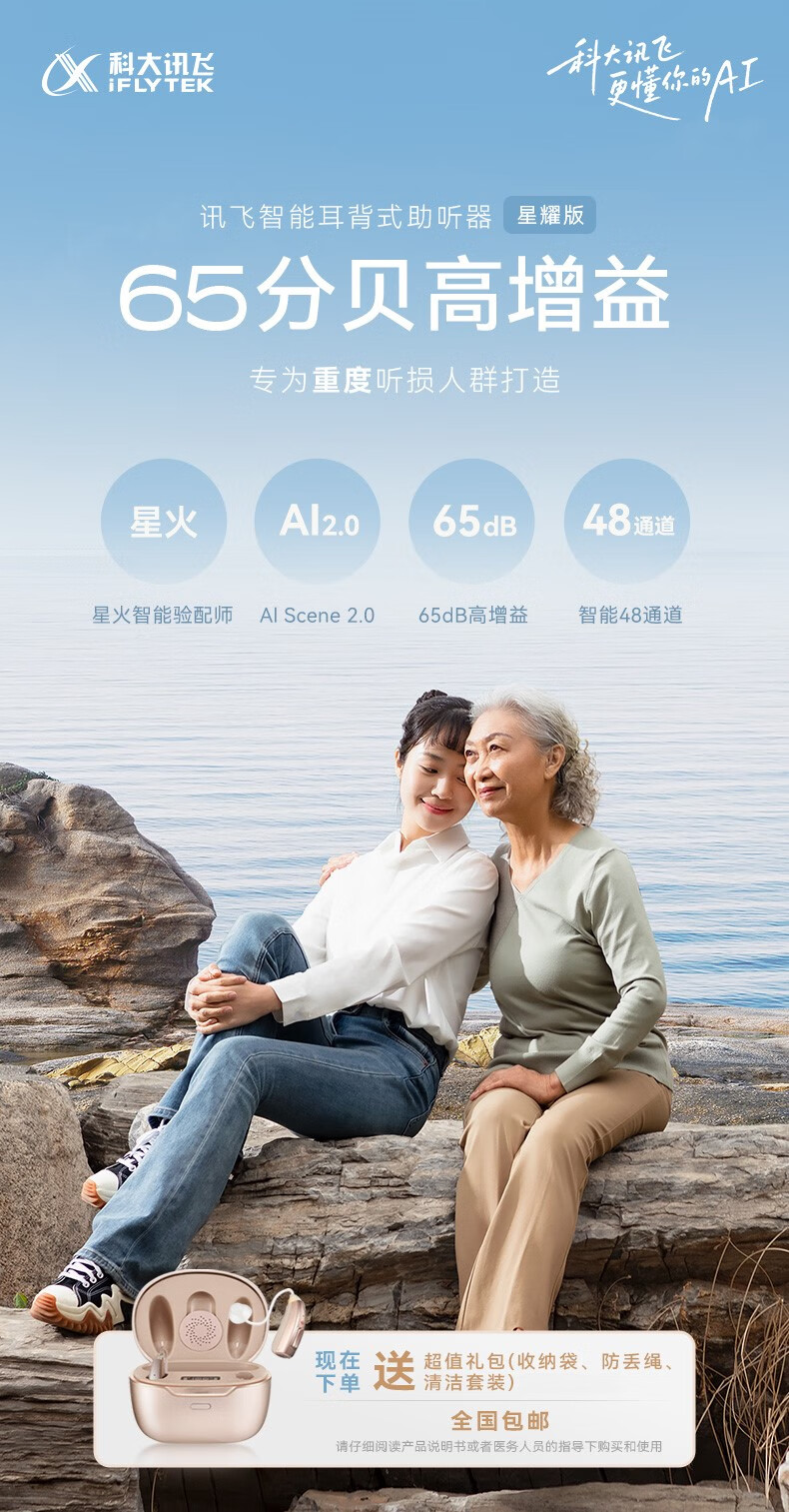 科大讯飞耳背式助听器老年人耳聋耳背专用隐形年轻人重度星耀礼盒VAN 610