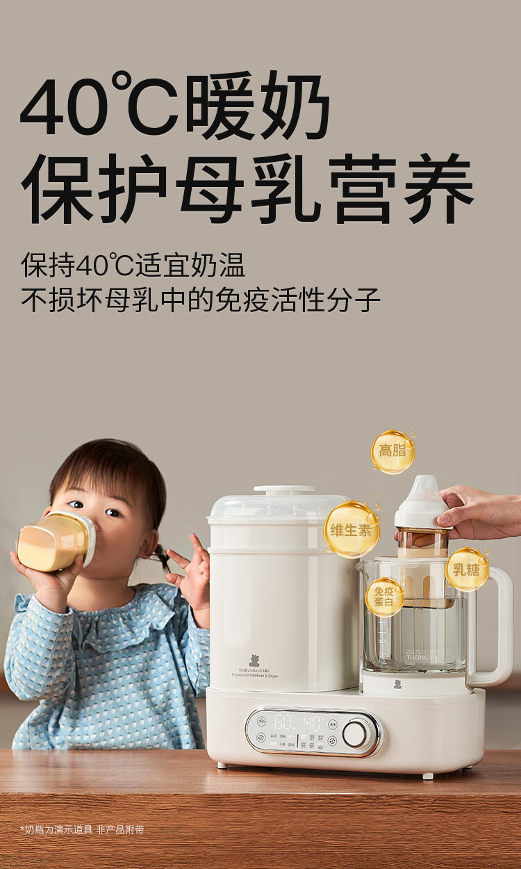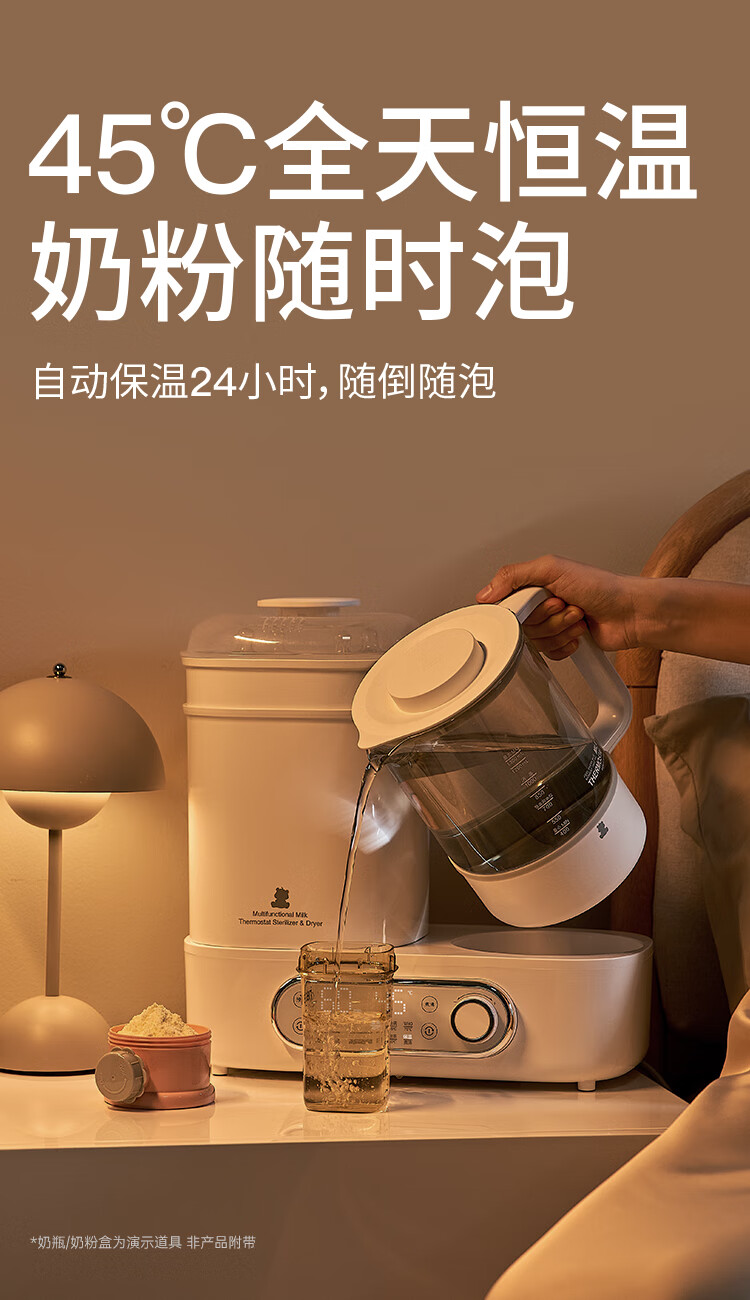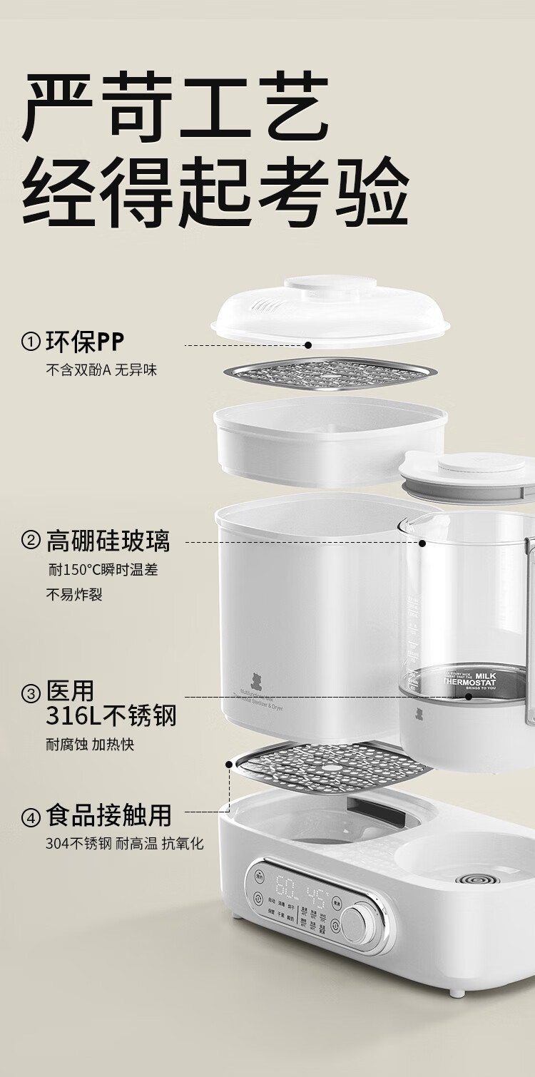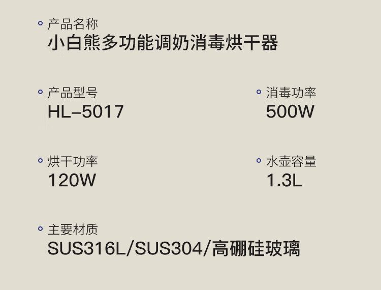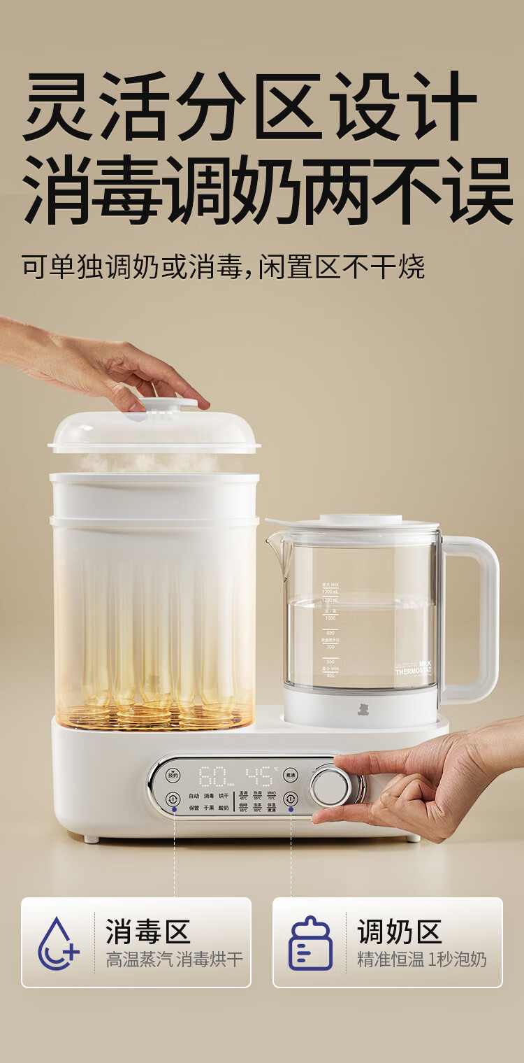小白熊恒温壶消毒二合一 奶瓶消毒柜烘干一体机 恒温水壶婴儿冲奶-5017