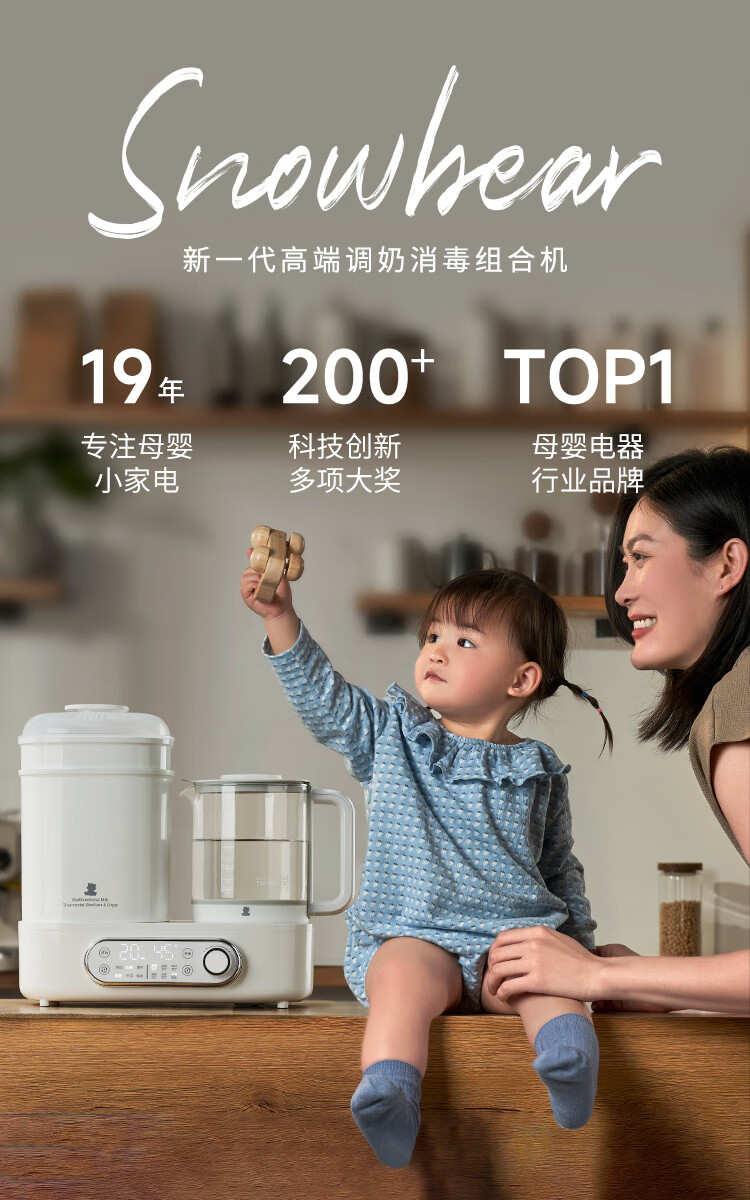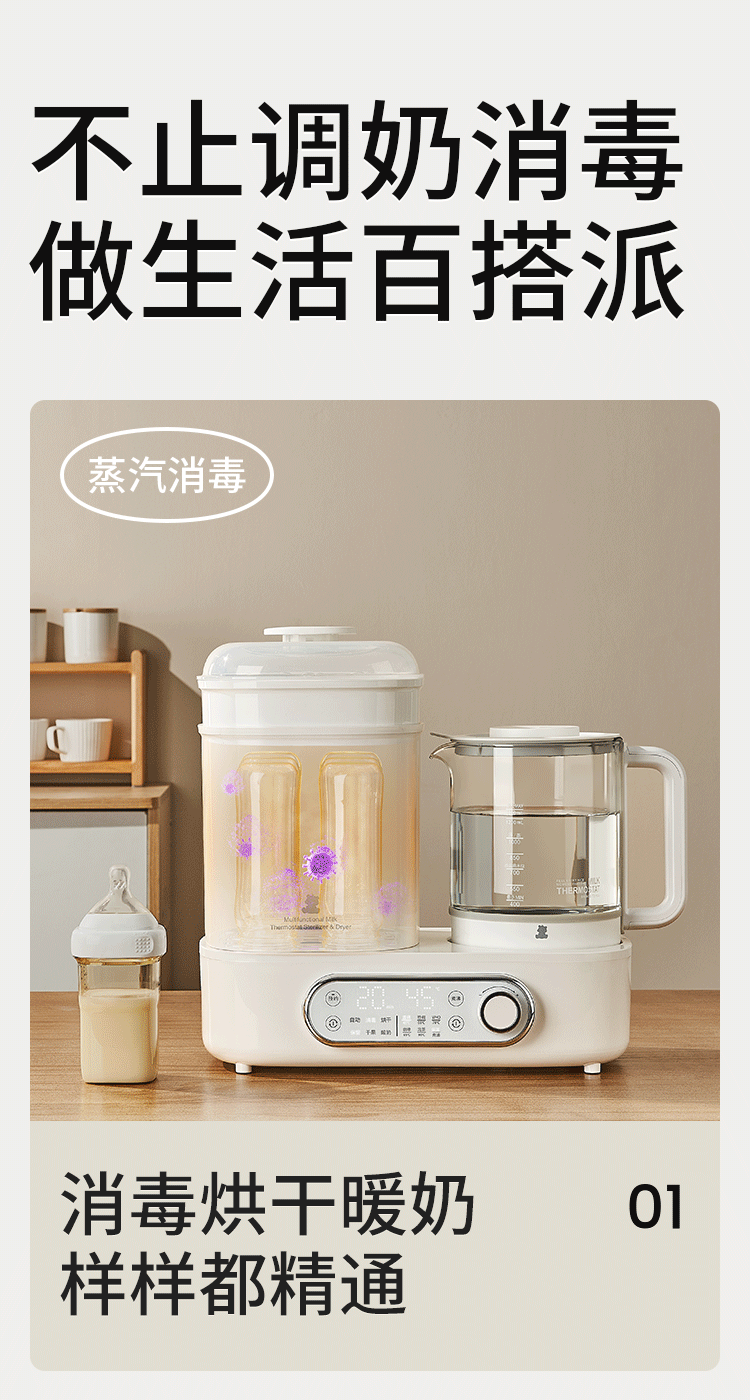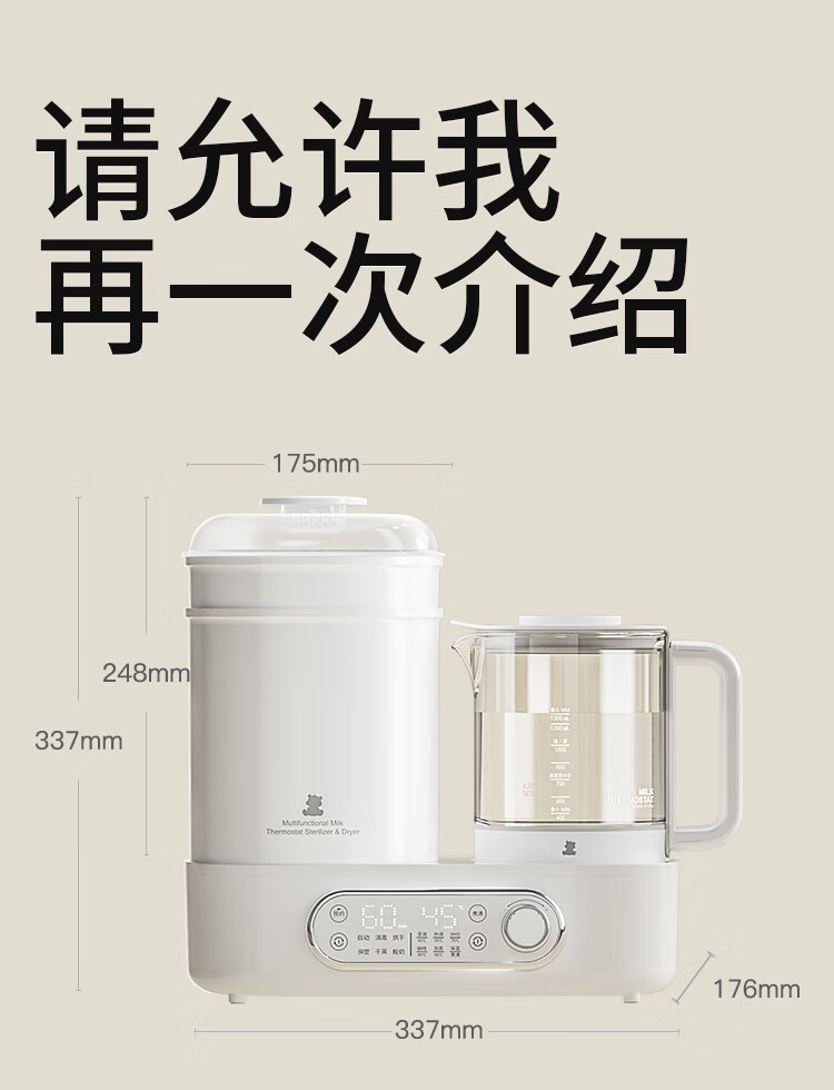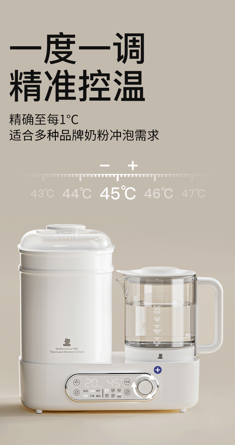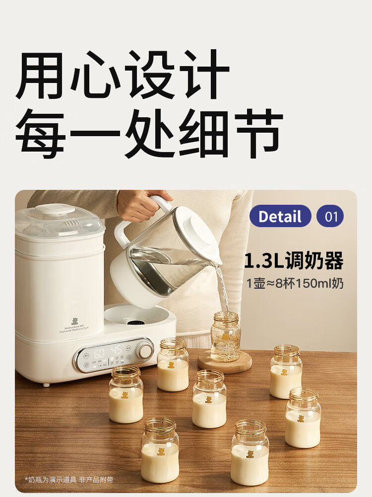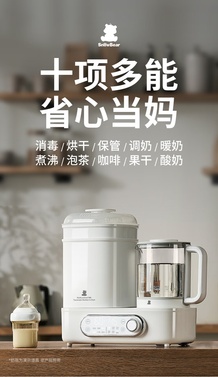 小白熊恒温壶消毒二合一 奶瓶消毒柜烘干一体机 恒温水壶婴儿冲奶-5017