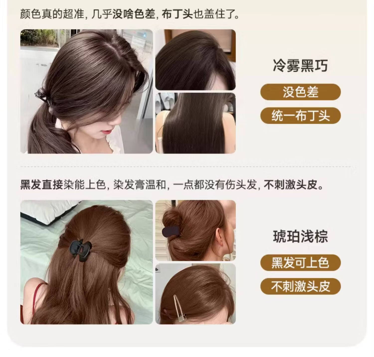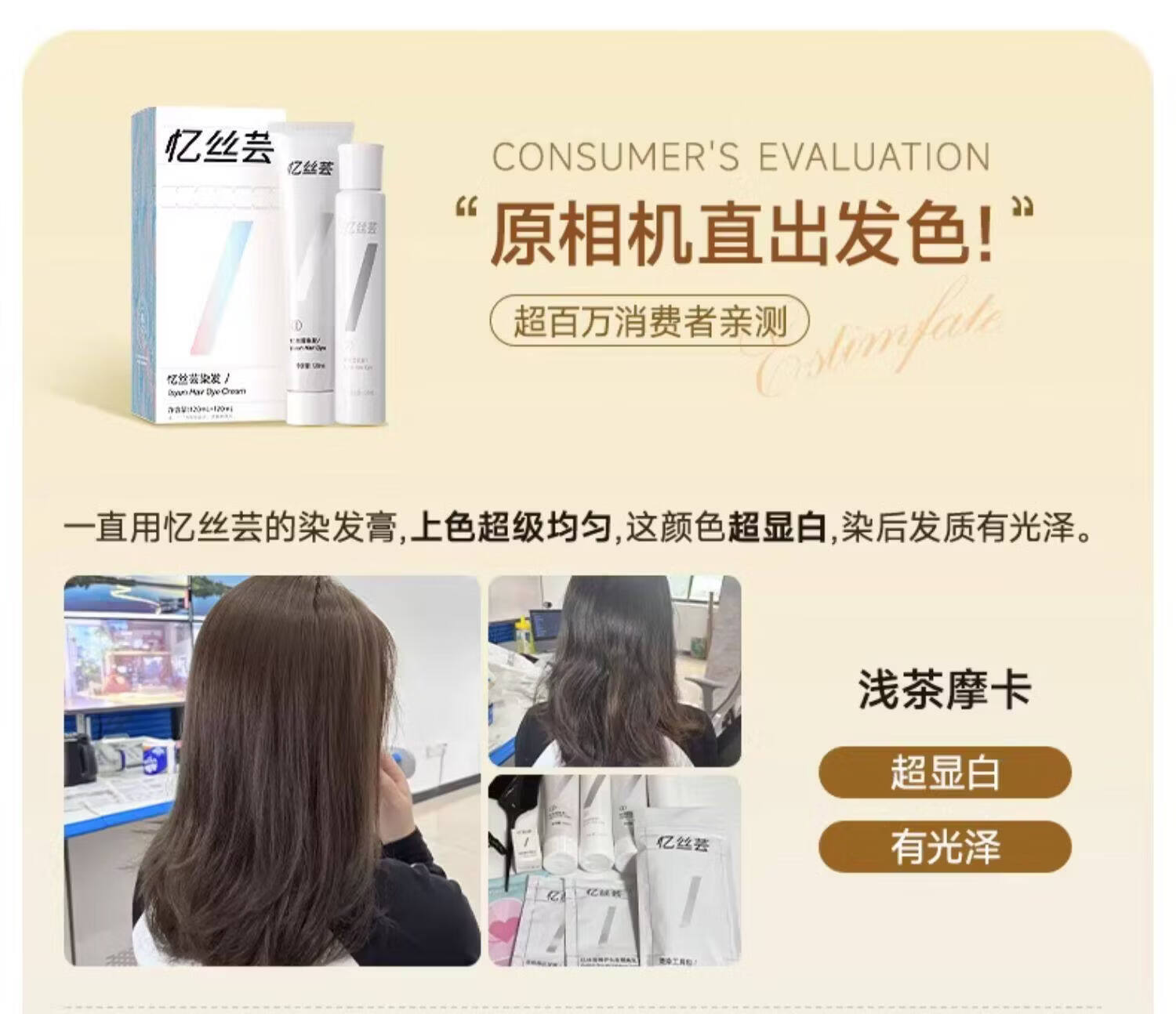忆丝芸染发膏浅茶摩卡明星推荐精油染发剂植物纯免漂显白发色男女士专用 浅茶摩卡(A-4/12/F-9) 一盒装(240ml)齐肩发