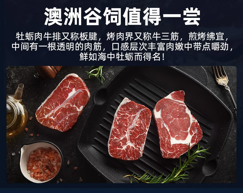 西捷 澳洲谷饲厚切板腱牛排原切牡蛎肉牛扒进口雪花鲜牛肉生鲜1200g