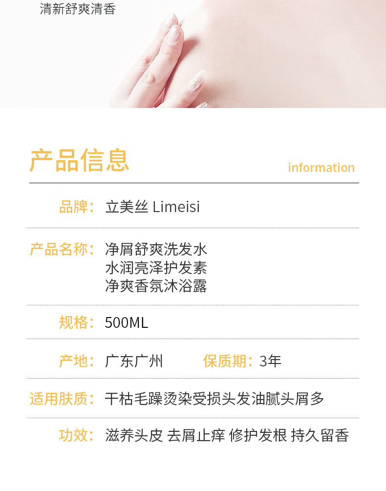 立美丝K系列香氛洗发水去屑香味持久清爽蓬松滋润洗发男女通用 K系列水润亮泽护发素500ml 500ml