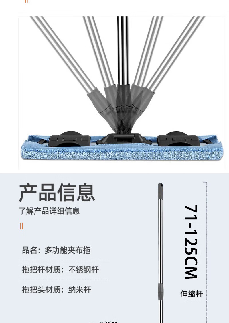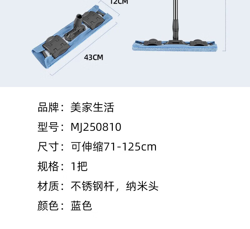 美家生活MJ250810可伸缩71-125cm 多功能夹布平板拖把(计价单位:把)蓝色