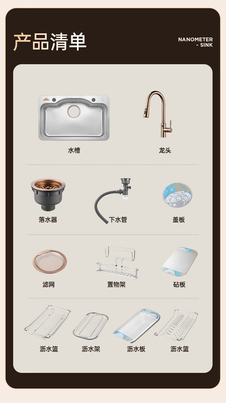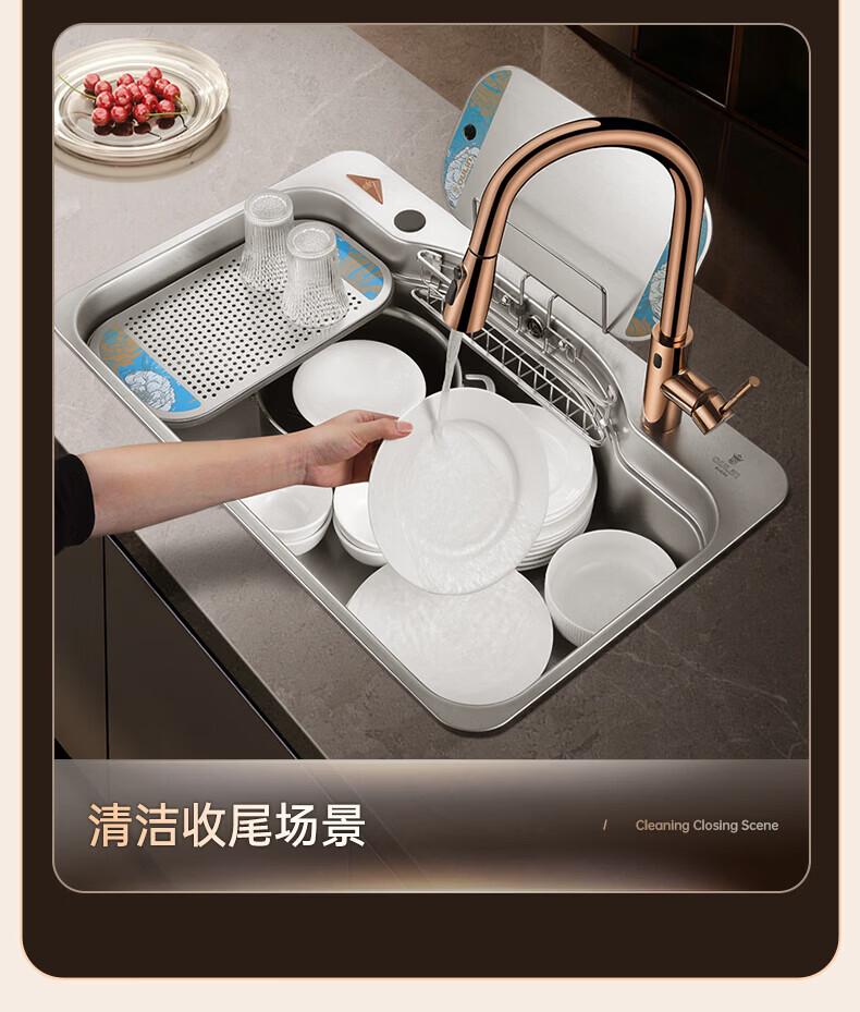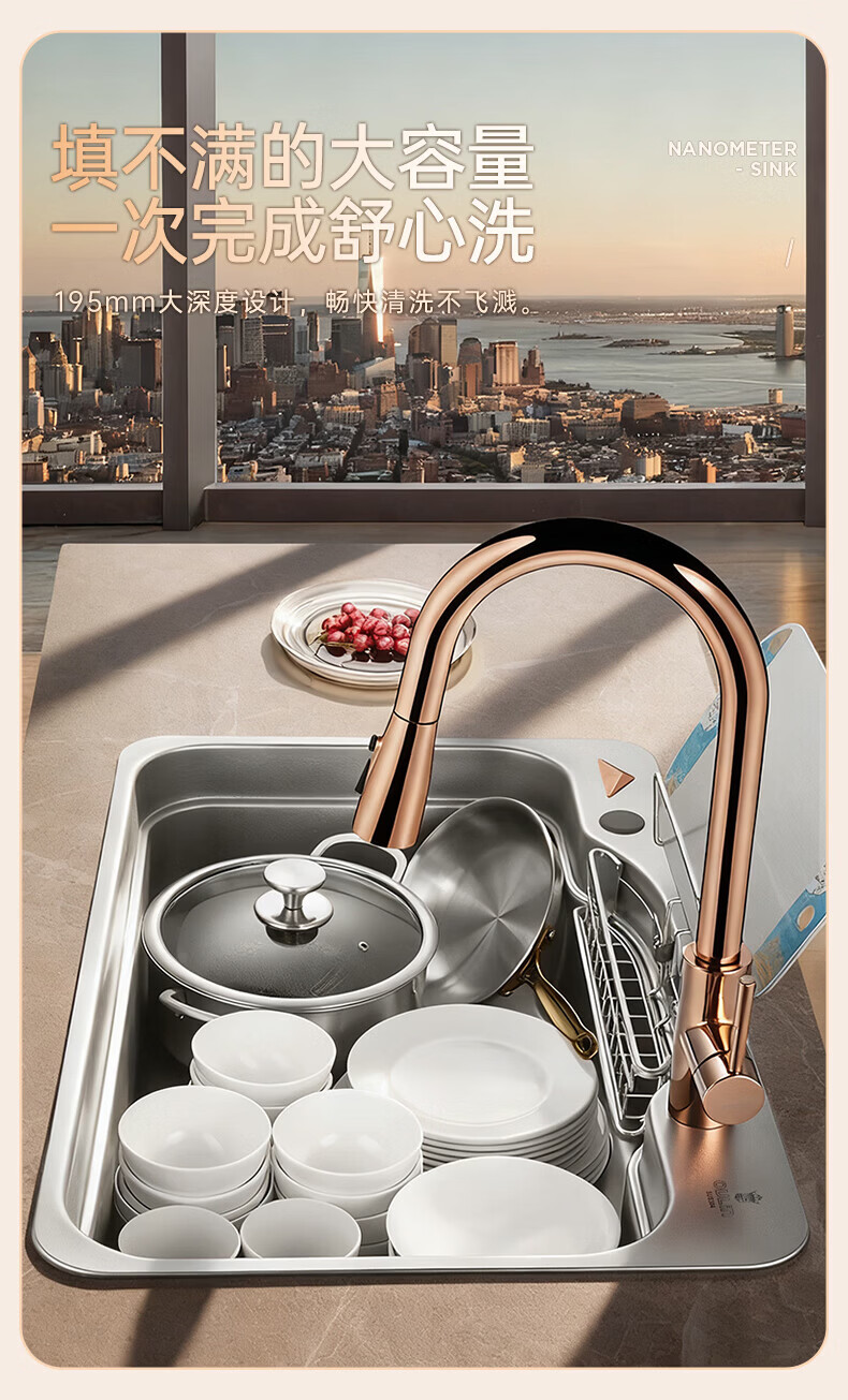NOEO洗碗机改大单槽 厨房304不锈钢洗菜盆一体盆加宽洗碗水池台上下盆 90x50 | 尊享套餐:五档飞雨抽拉龙头套餐全套
