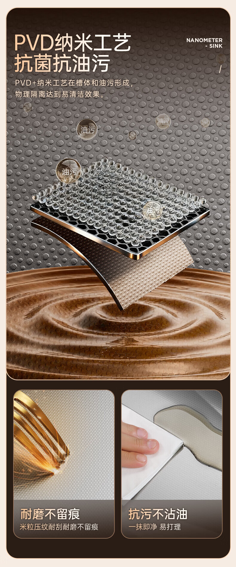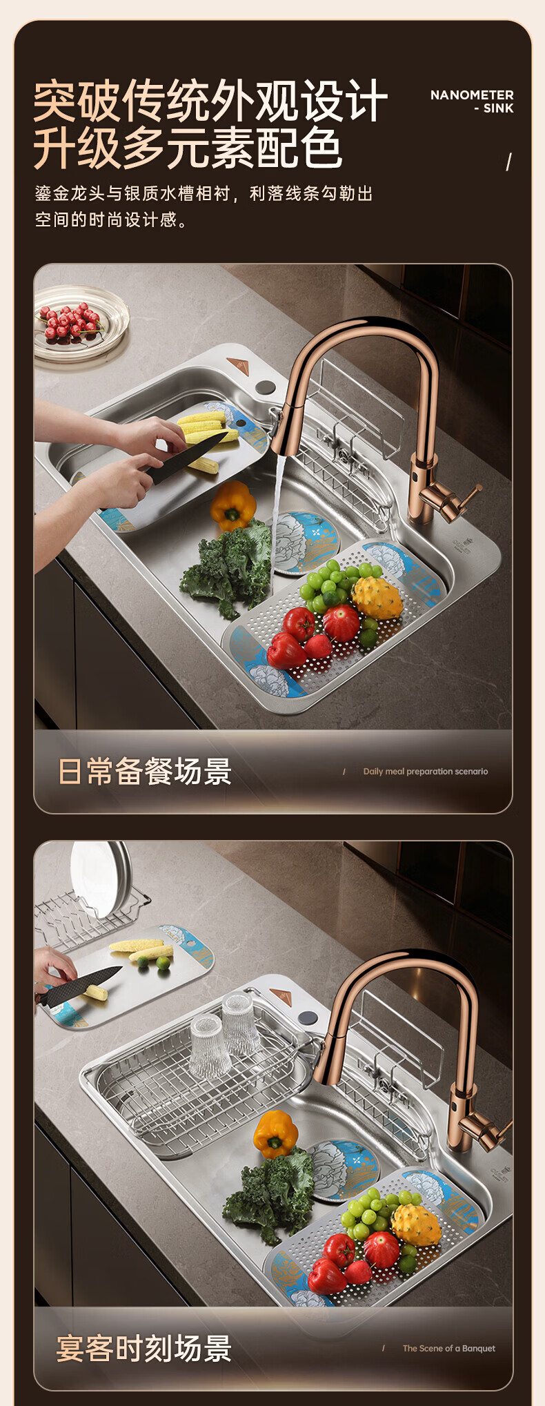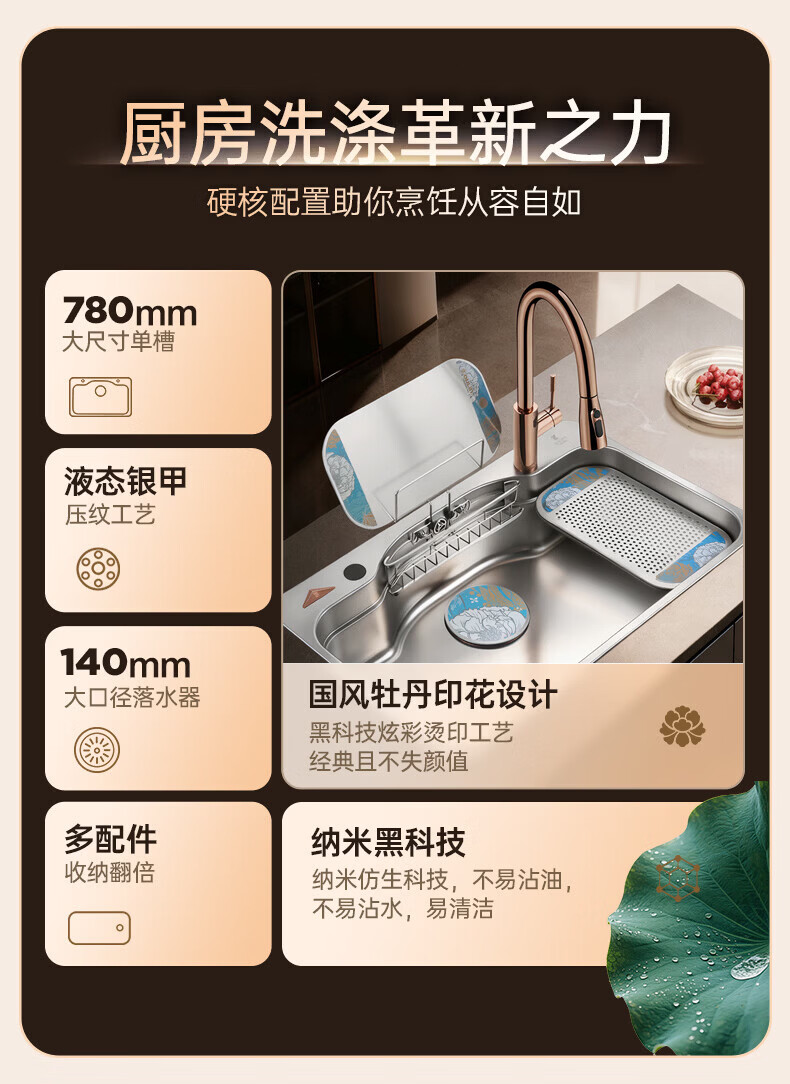 欧琳(OULIN)白金汉宫水槽304不锈钢厨房大单槽压纹耐刮洗碗池家用轻奢洗菜盆 鎏金轻奢日式收纳槽 外观780mm*500mm