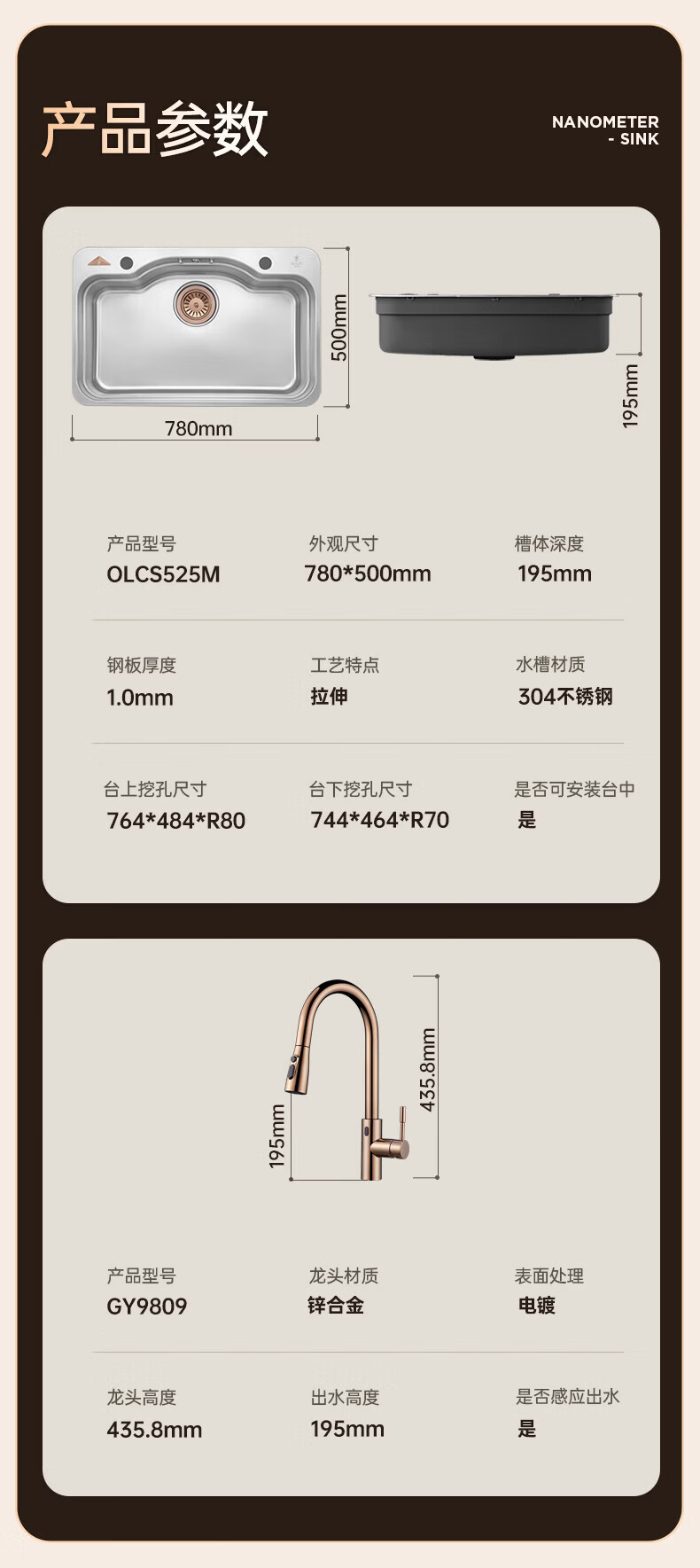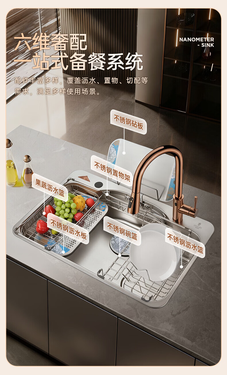 NOEO洗碗机改大单槽 厨房304不锈钢洗菜盆一体盆加宽洗碗水池台上下盆 88x48 | 尊享套餐:五档飞雨抽拉龙头套餐全套